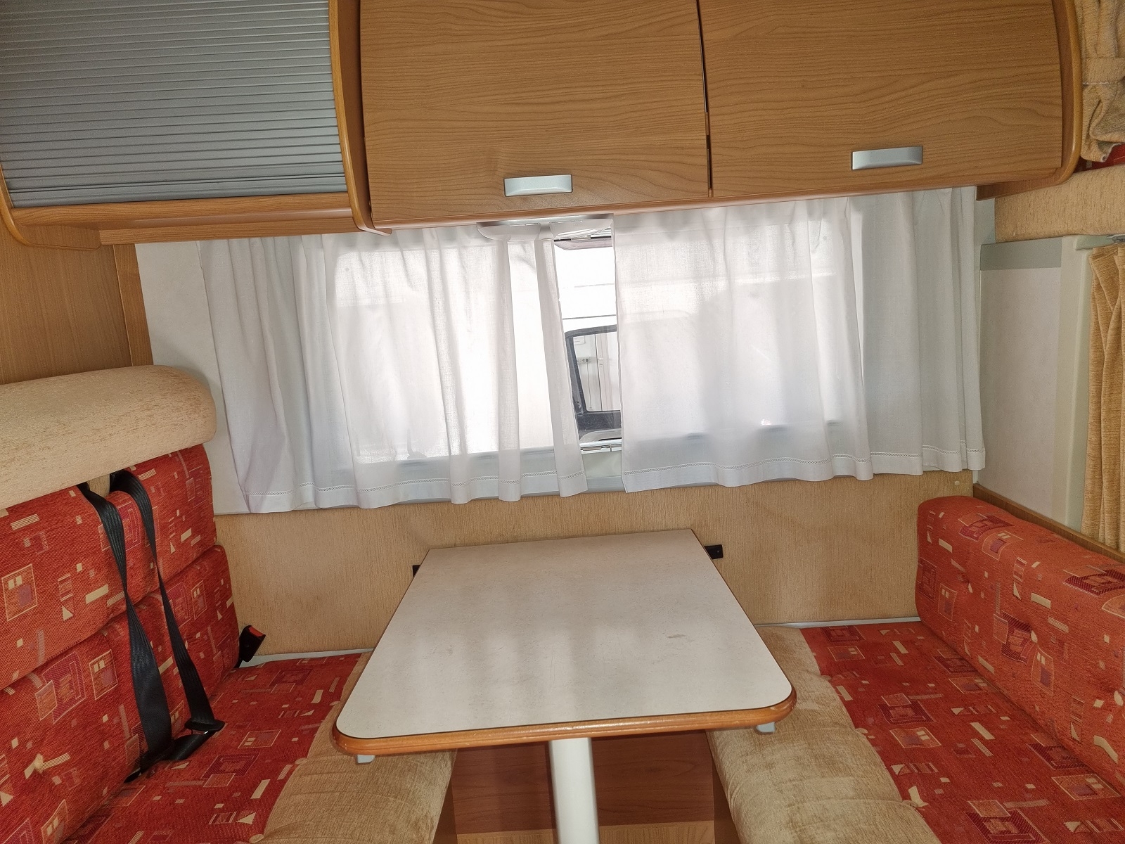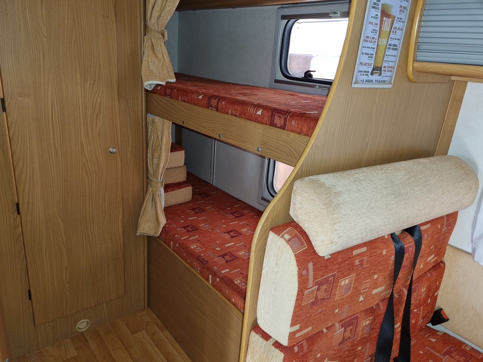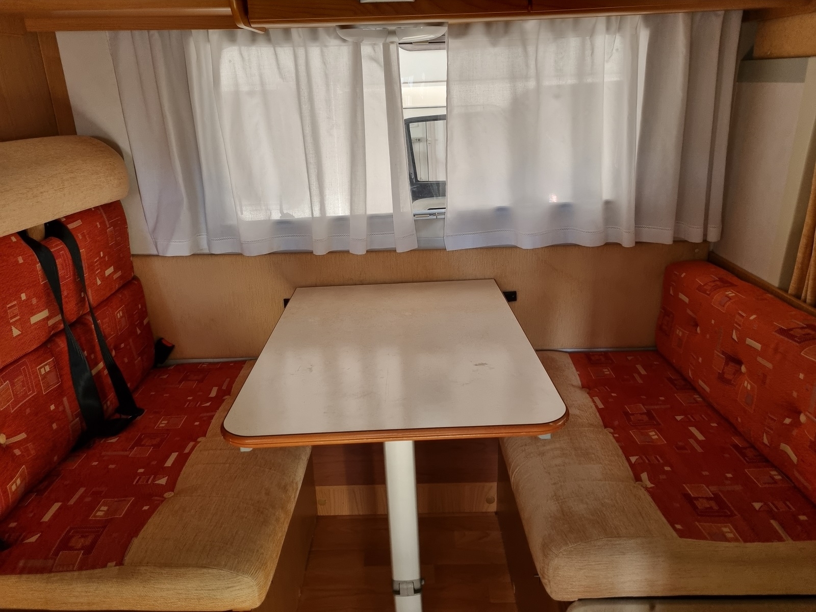 MANSARDATO USATO IN OTTIME CONDIZIONI, 6 POSTI LETTO E VIAGGIO , LETTO A CASTELLO LATERALE POSTERIORE CON GAVONE VARIABILE SOTTOSTANTE ED ACCESSO DA PORTELLONE ESTERNO , BAGNO IN CODA E DOCCIA SEPARATA DOTATA DI OBLO’ ED ANCHE FINESTRA , ARMADIO ALTO PER VESTIARIO , CUCINA LINEARE SERVITA DI BANCO LAVORO, PIANO COTTURA A 3 FUOCHI , PENSILI PER COMODO STIVAGGIO , FRIGORIFERO 90 L TRIVALENTE , LA DINETTE E’ CLASSICA A SEDILI CONTRAPPOSTI E TRASFORMABILE IN UN ULTERIORE LETTO MATRIMONIALE , CONDIZIONATORE IN CELLULA (DOMETIC) ED ANCHE IN CABINA , RADIO DOPPIO DIN , RISCALDAMENTO CON COMBI 6 TRUMA GAS