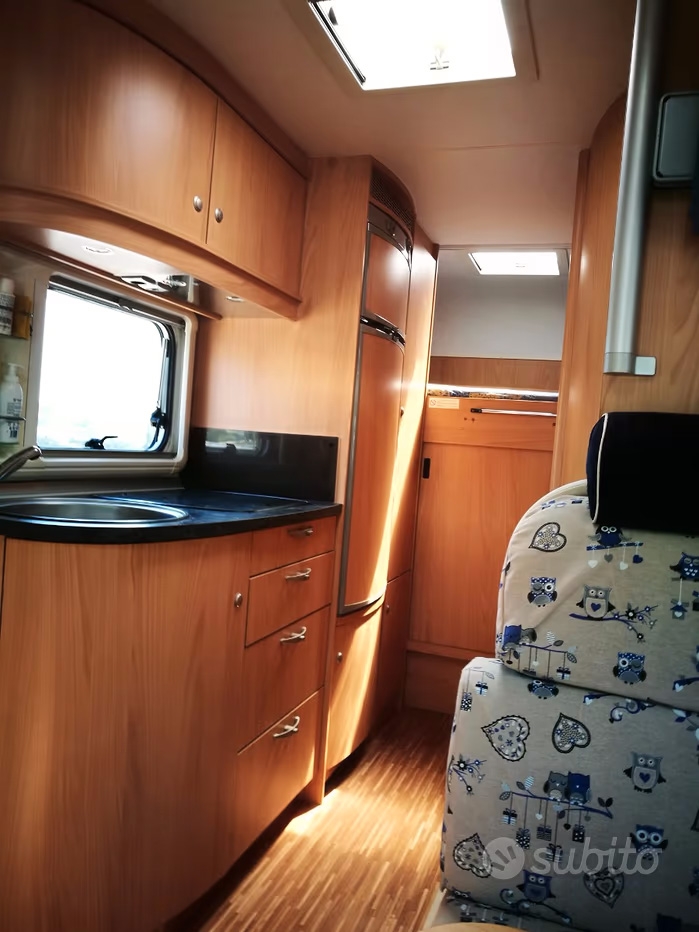 etto a castello in coda; garage; doccia separata; doppia bombola gas; rilevatore fughe di gas; maxioblò panoramico; frigo150L+congelatore Dometic a tripla alimentazione; cruise control; stufa Truma