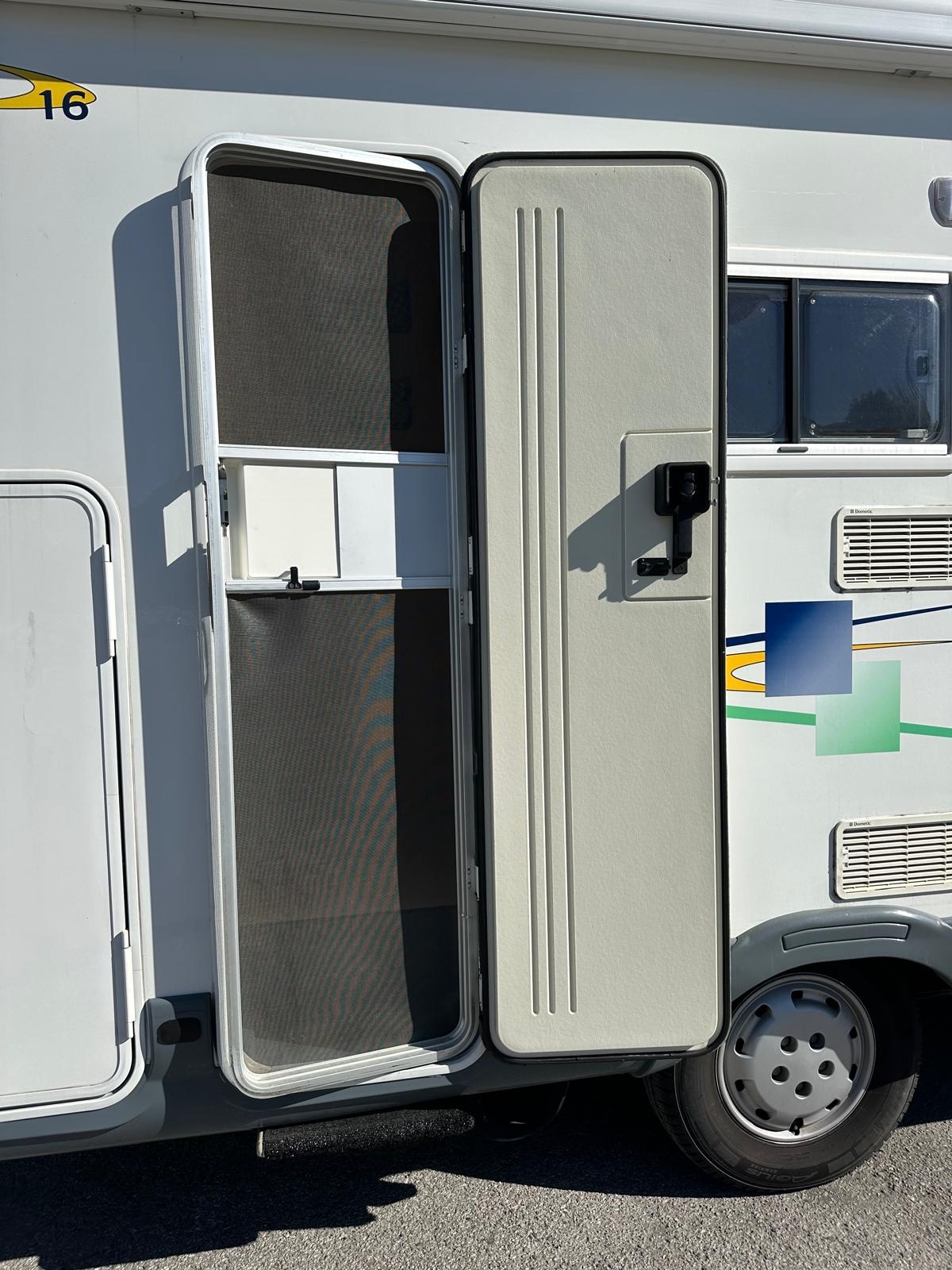 Veranda, Luce esterna, Bagagliera + scaletta, Portabici 4 posti, Turbovent, Radio + impianto stereo, Retrocamera, Controporta Zanzariera, Frigo Trivalente, Stufa canalizzata, Pannello Fotovoltaico, piedini stazionamento