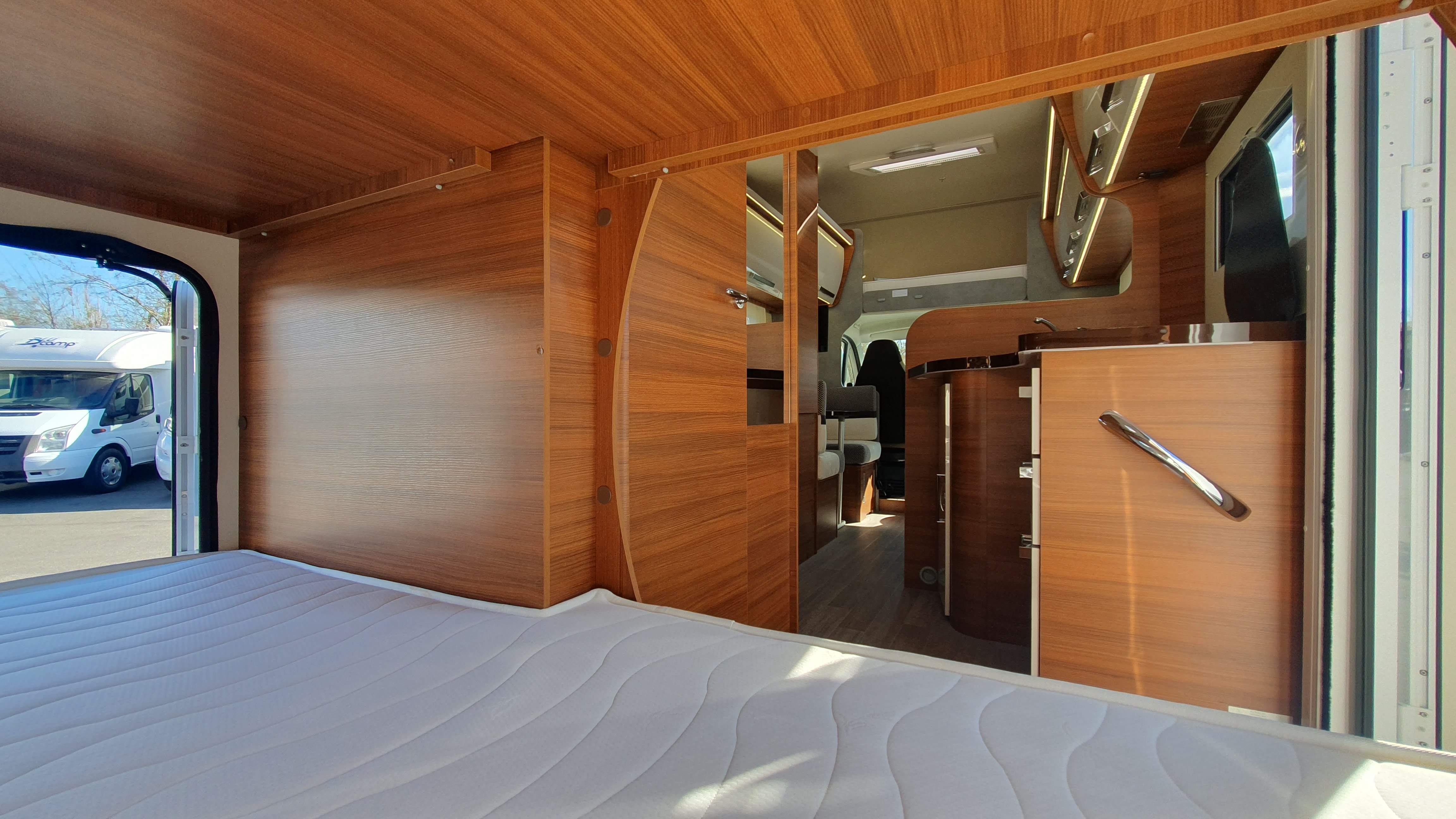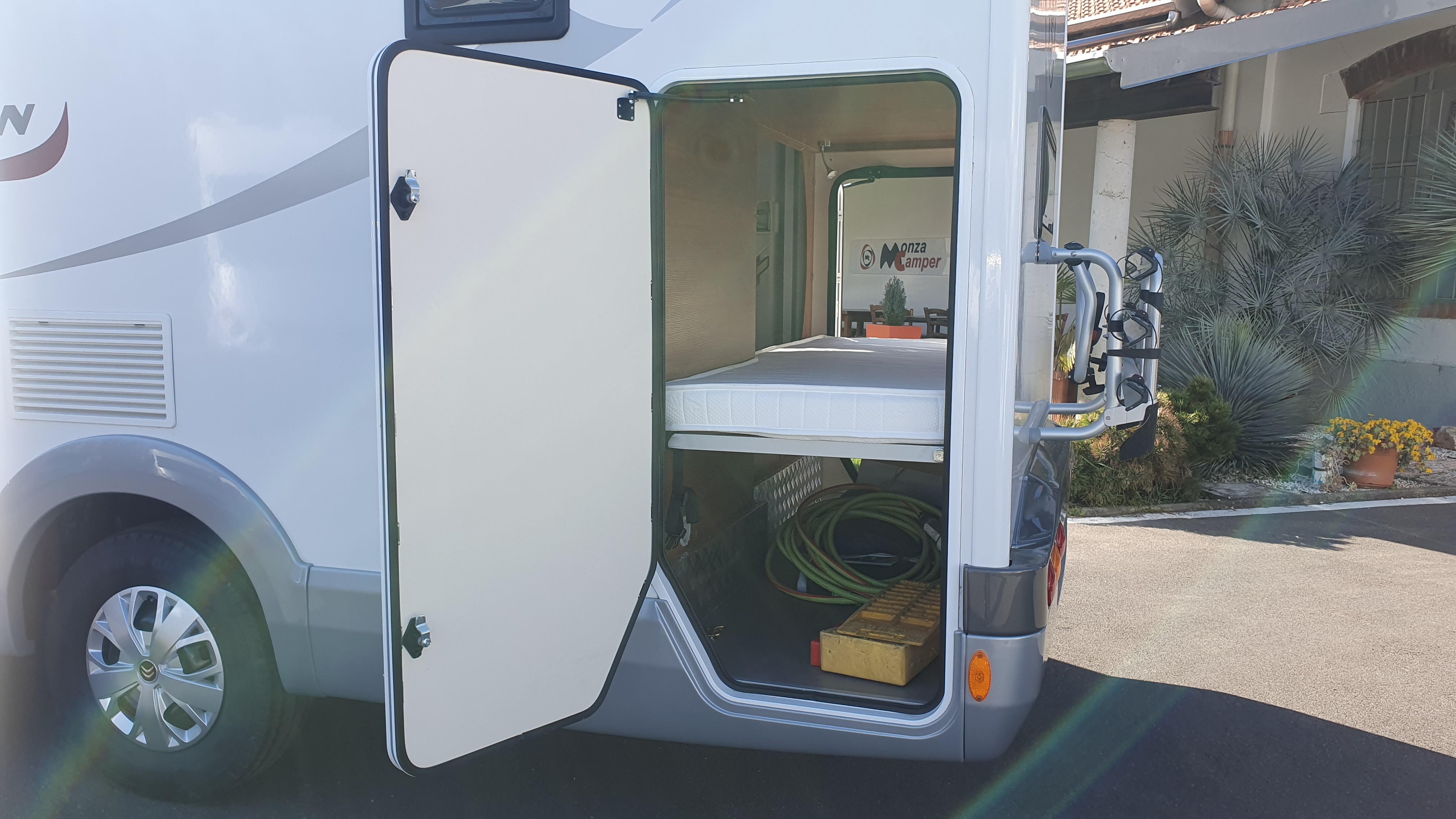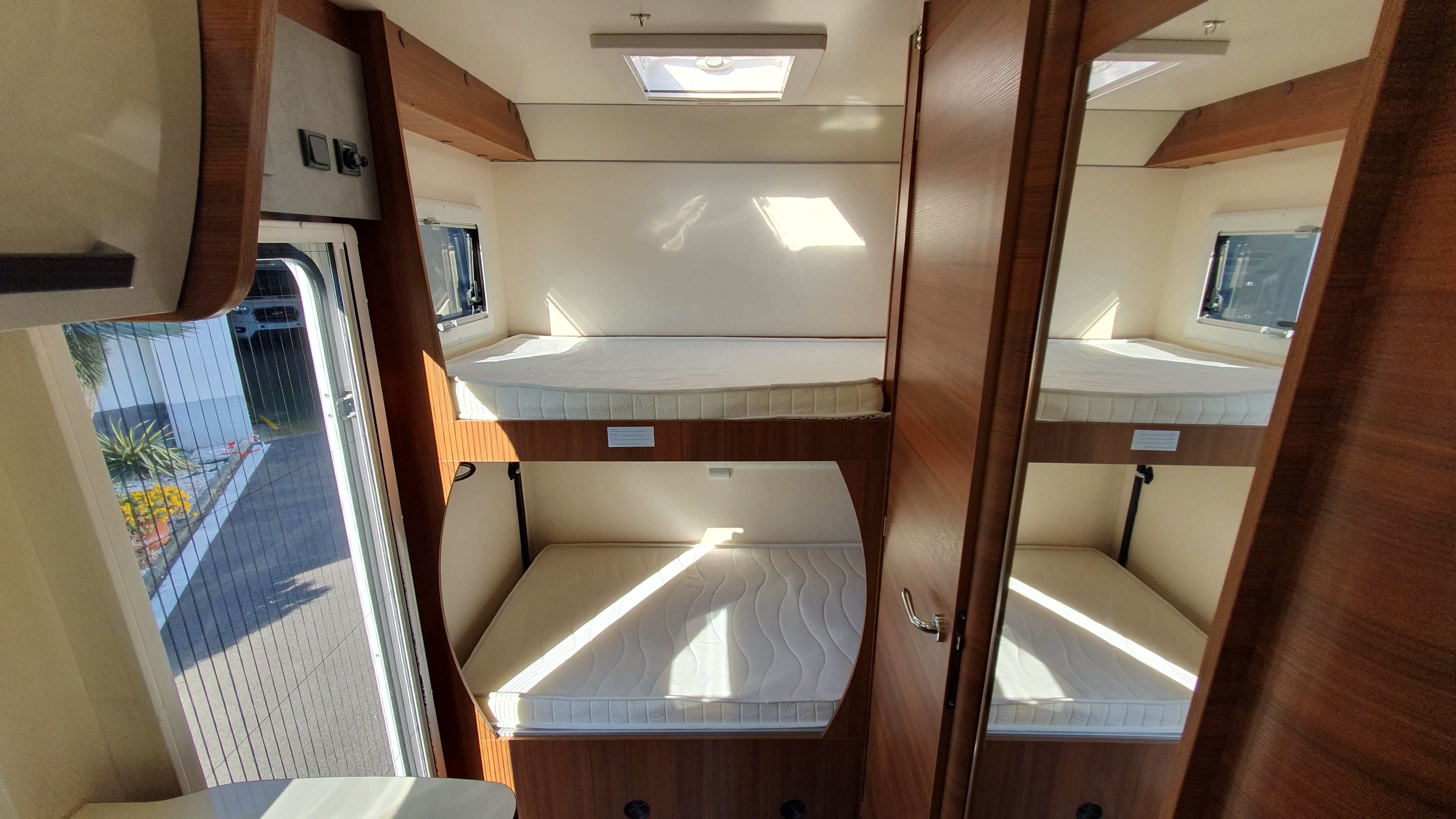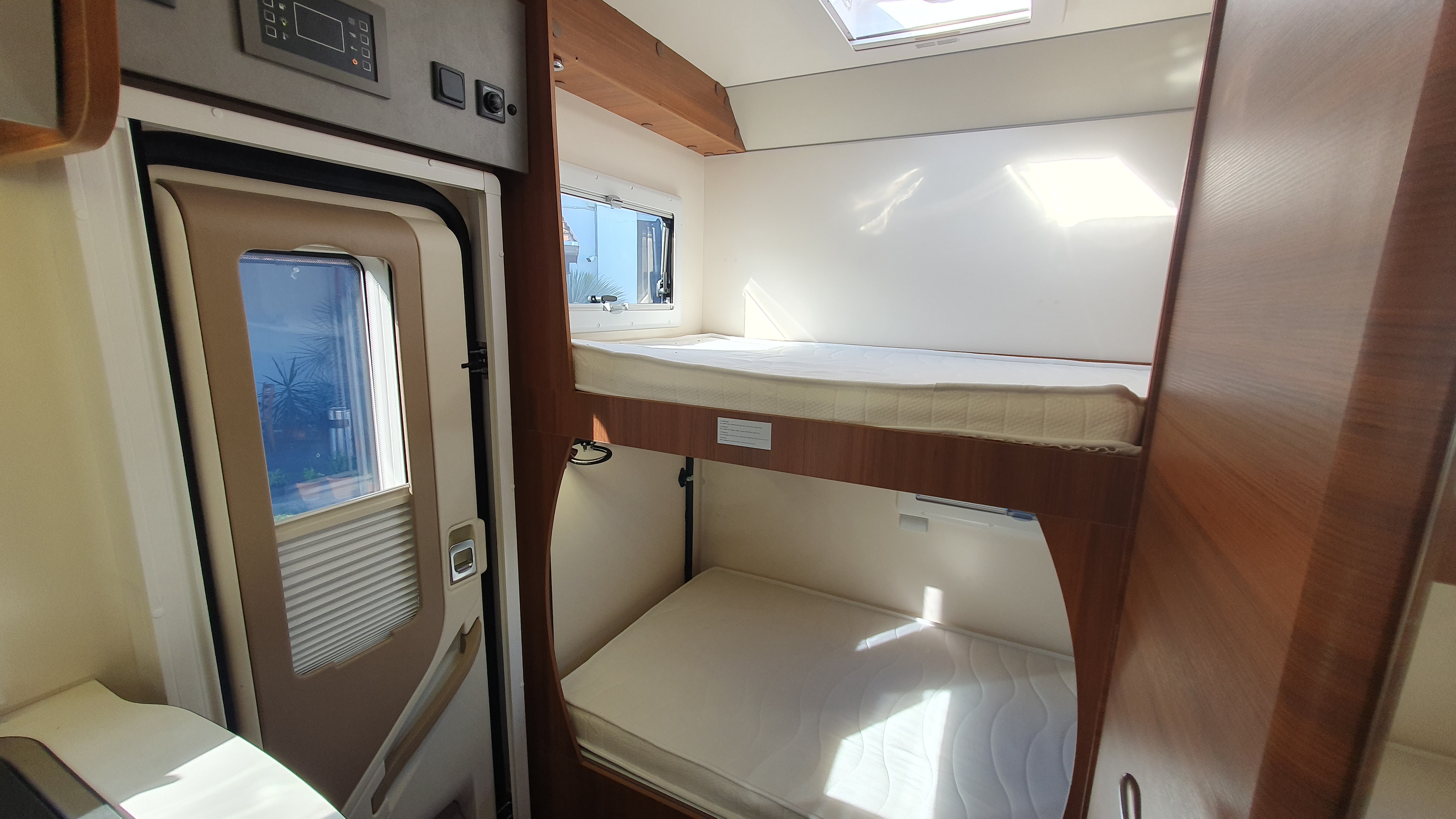 Nella parte posteriore si trovano due letti a castello trasversali. Il letto interiore è progettato per essere ribaltabile, offrendo così un maggiore spazio nel garage sottostante.