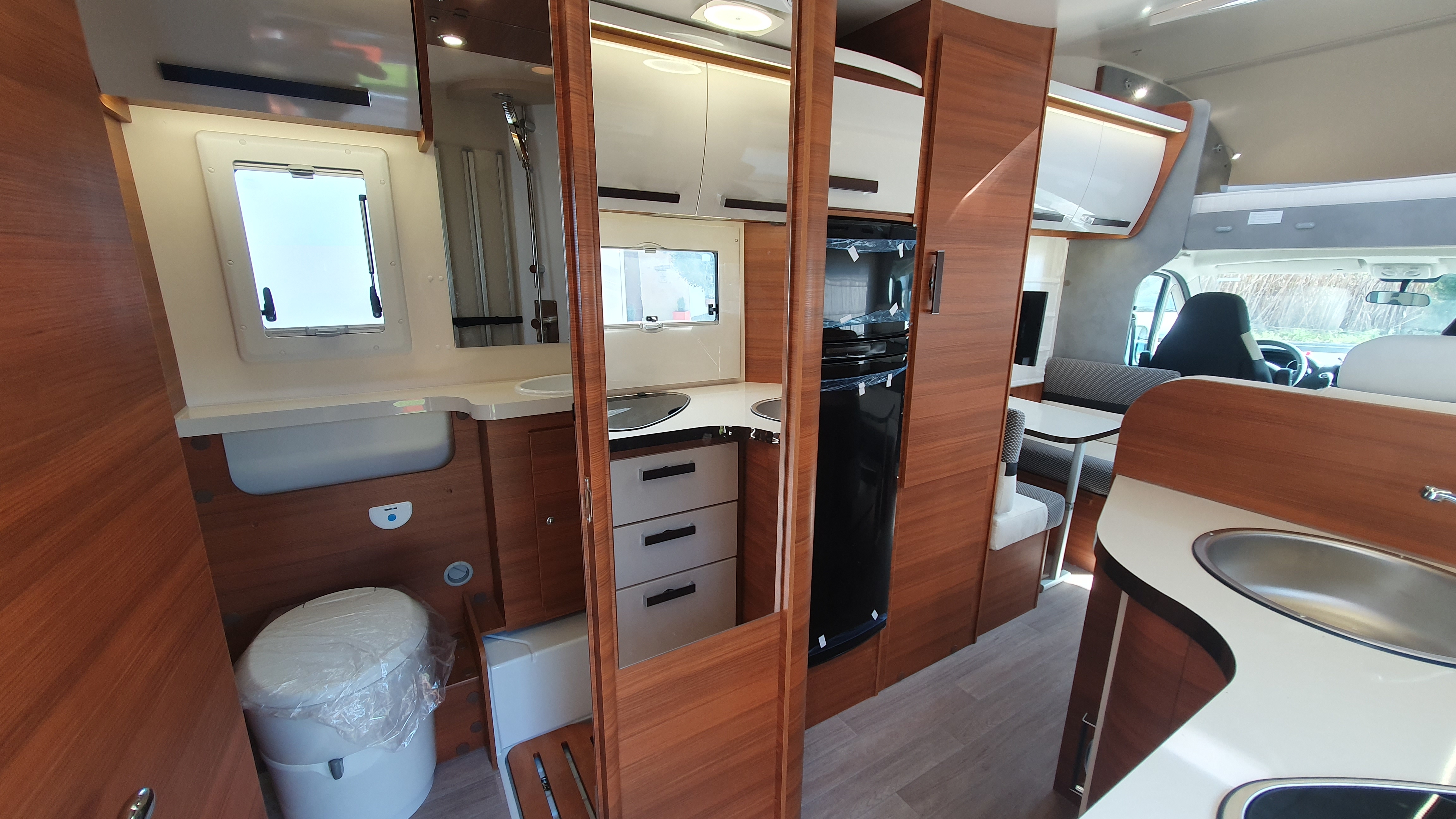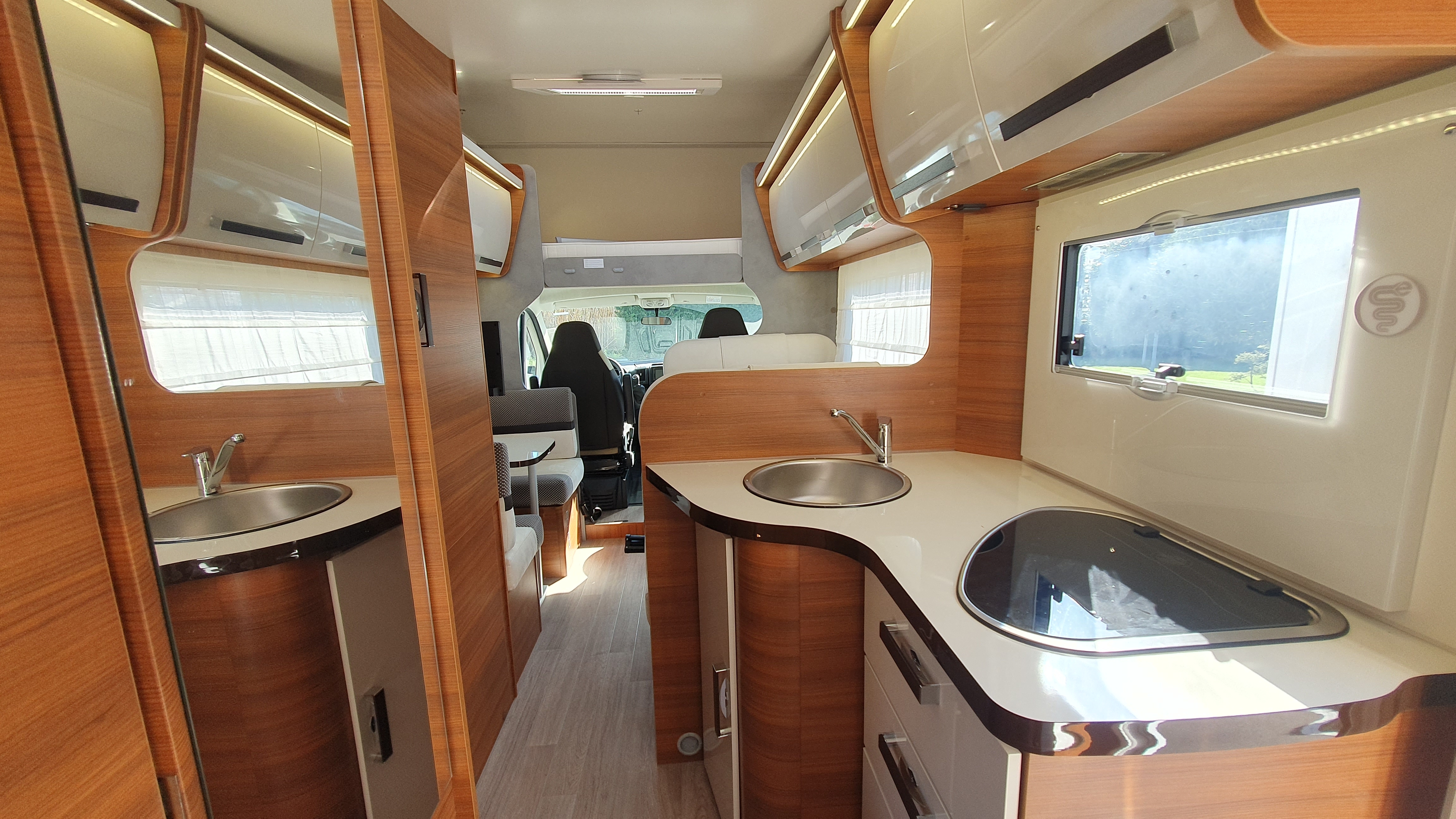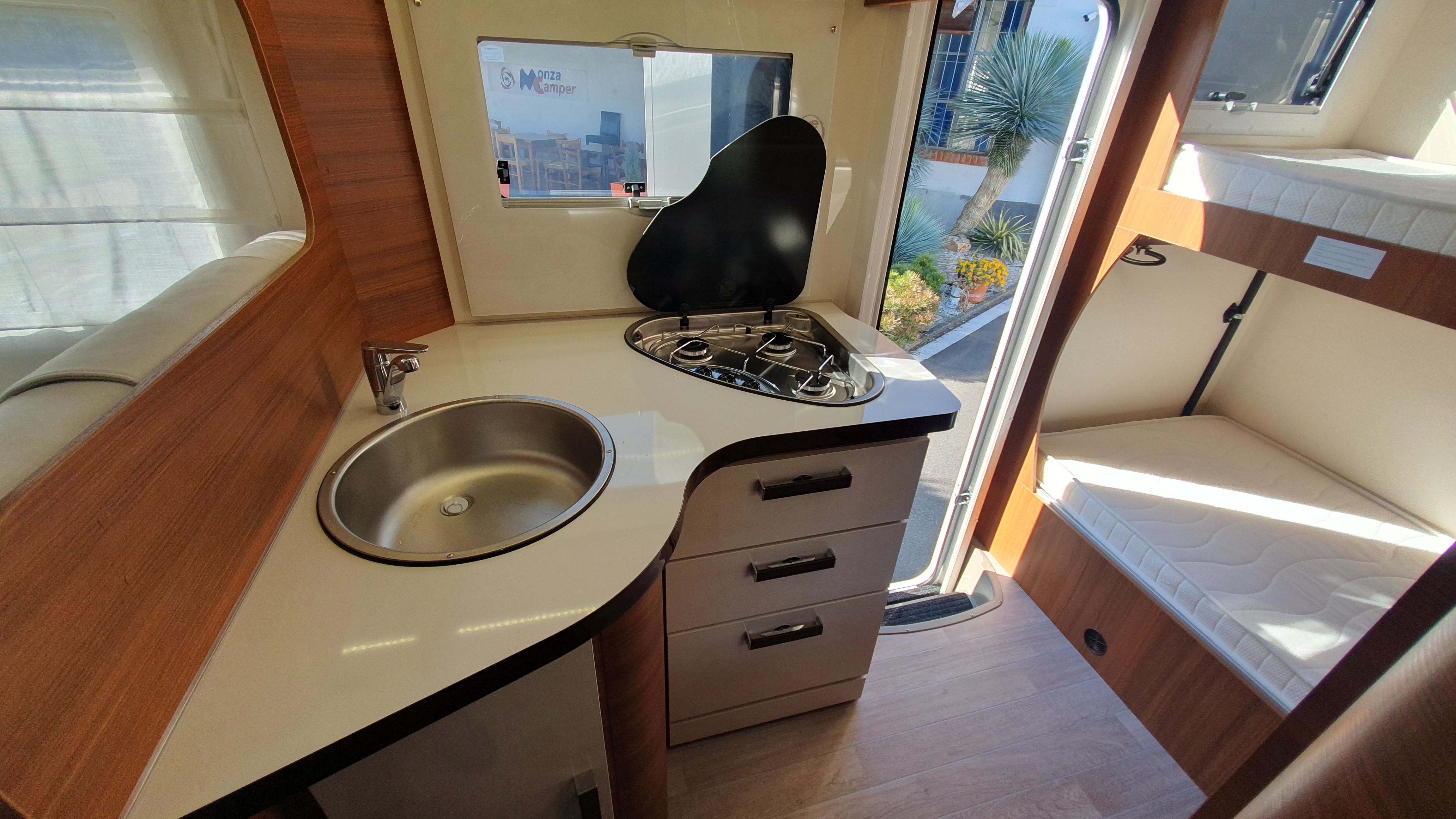 E’ un camper veramente comodo per i viaggi in famiglia, grazie alla cucina spaziosa e al bagno con doccia separata.