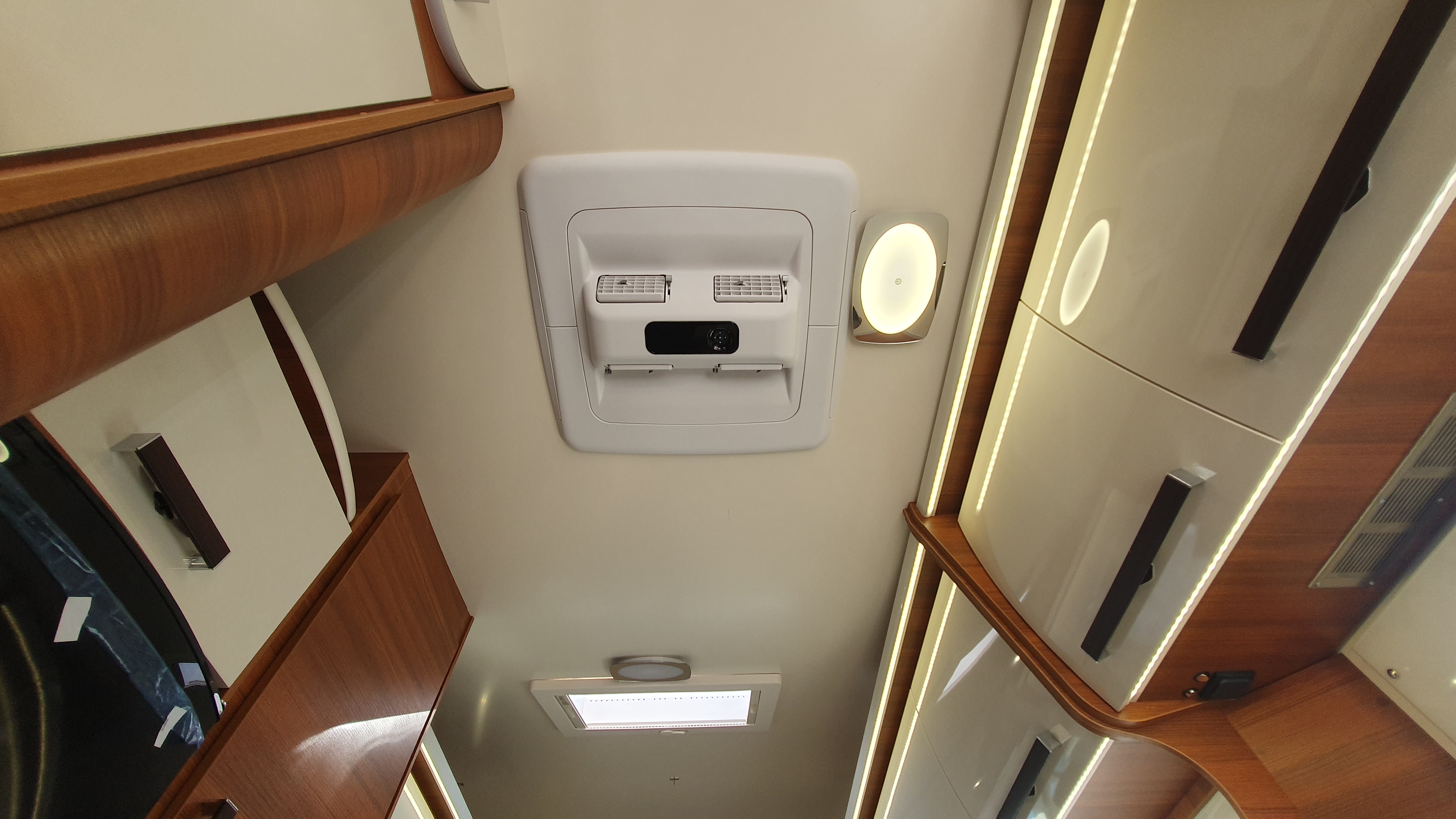 E’ equipaggiato per offrire comfort in tutte le stagioni infatti riscaldamento e acqua calda sono dati dal sistema Truma Combi mentre l’aria condizionata è presente anche in cellula con il condizionatore Mecair da 220V.