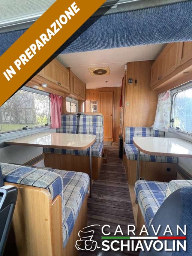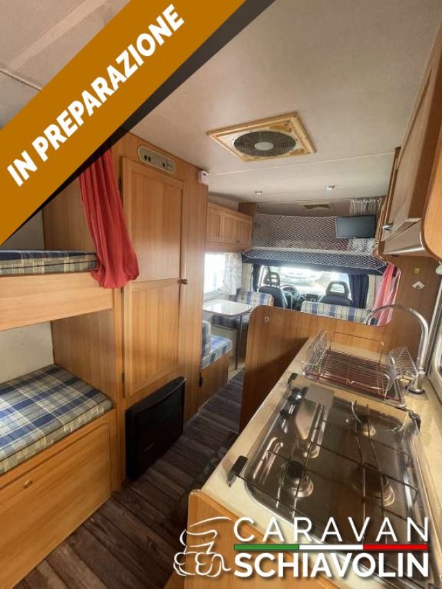 Veranda, Pannello solare, Antenna TV, TV con staffa Sensori retromarcia, Oblò con turbovent, Porta pacchi con scaletta posteriore, Portabici 3 posti, Luce esterna LED, Impianto radio con radio USB+Bluetooth, Braccioli sedili cabina + VARIE. ,CAMPER MANSARDATO IN VETRORESINA, CON LETTI A CASTELLO E AMPIA ZONA GIORNO IDEALE PER FAMIGLIE , 7 POSTI LETTO E VIAGGIO IN MENO DI 7 METRI.