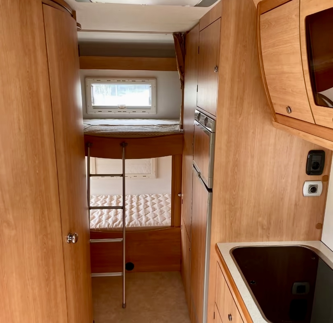 Radio cd, clima cabina, doppio airbag, vetri elettrici, sedili girevoli, ASR, oscuranti e zanzariere su tutte le finestre, clima cellula, riscaldamento truma combi, frigorifero trivalente automatico, cappa aspirante, box doccia separato, zanzariera porta ingresso, luce esterna, tendalino esterno