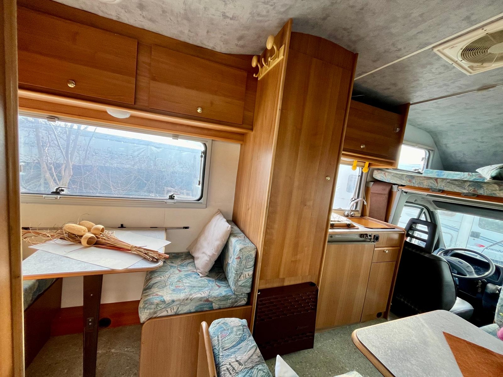 Modello: Mansardato Rimor L’EuropeoAnno di Produzione: 1994Motore: Fiat Ducato 1.9, un motore affidabile e adatto per viaggi su strada, particolarmente apprezzato per la sua efficienza.Lunghezza: 5,54 metri, compatto e maneggevole, ideale per chi cerca un camper facile da guidare e parcheggiare.Accessori Inclusi:Tendalino: Offre uno spazio ombreggiato all'esterno del camper, perfetto per rilassarsi all'aperto o pranzare all'aria aperta.Prezzo: da € 12.500,00 a €11.000,00