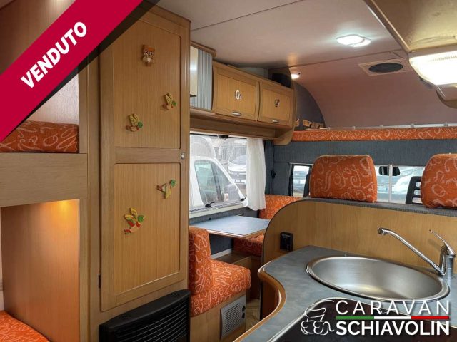 Portamoto con relativo foglio di omologazione a 150 kg, Climatizzatore cellula a tetto, Veranda, Pannello solare, Retrocamera con display a specchietto, Doppio serbatoio acque chiare, Oblò con turbovent, Porta pacchi con scaletta posteriore, Luce esterna, Impianto radio con radio CD+USB, Vetri elettrici, Braccioli sedili cabina + VARIE CAMPER MANSARDATO IN VETRORESINA, IDEALE PER FAMIGLIE CON LETTI A CASTELLO E AMPIA ZONA GIORNO, 7 POSTI LETTO E VIAGGIO.