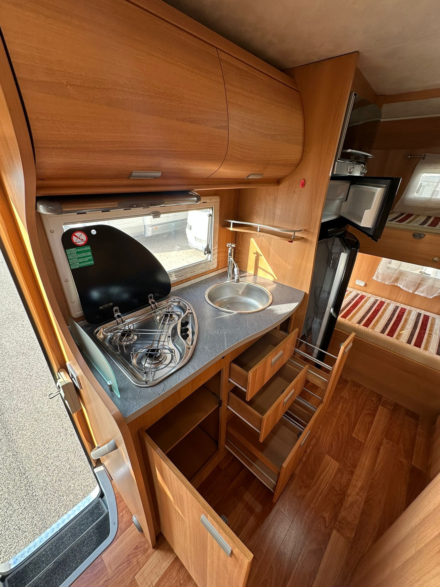 Attacco doccia esterno, attacco gas esterno, capa aspirante, clima motore, forno a gas, pannello solare, presa multifunzione esterna, radio, tendalino, Turbovent, 182.400 km.