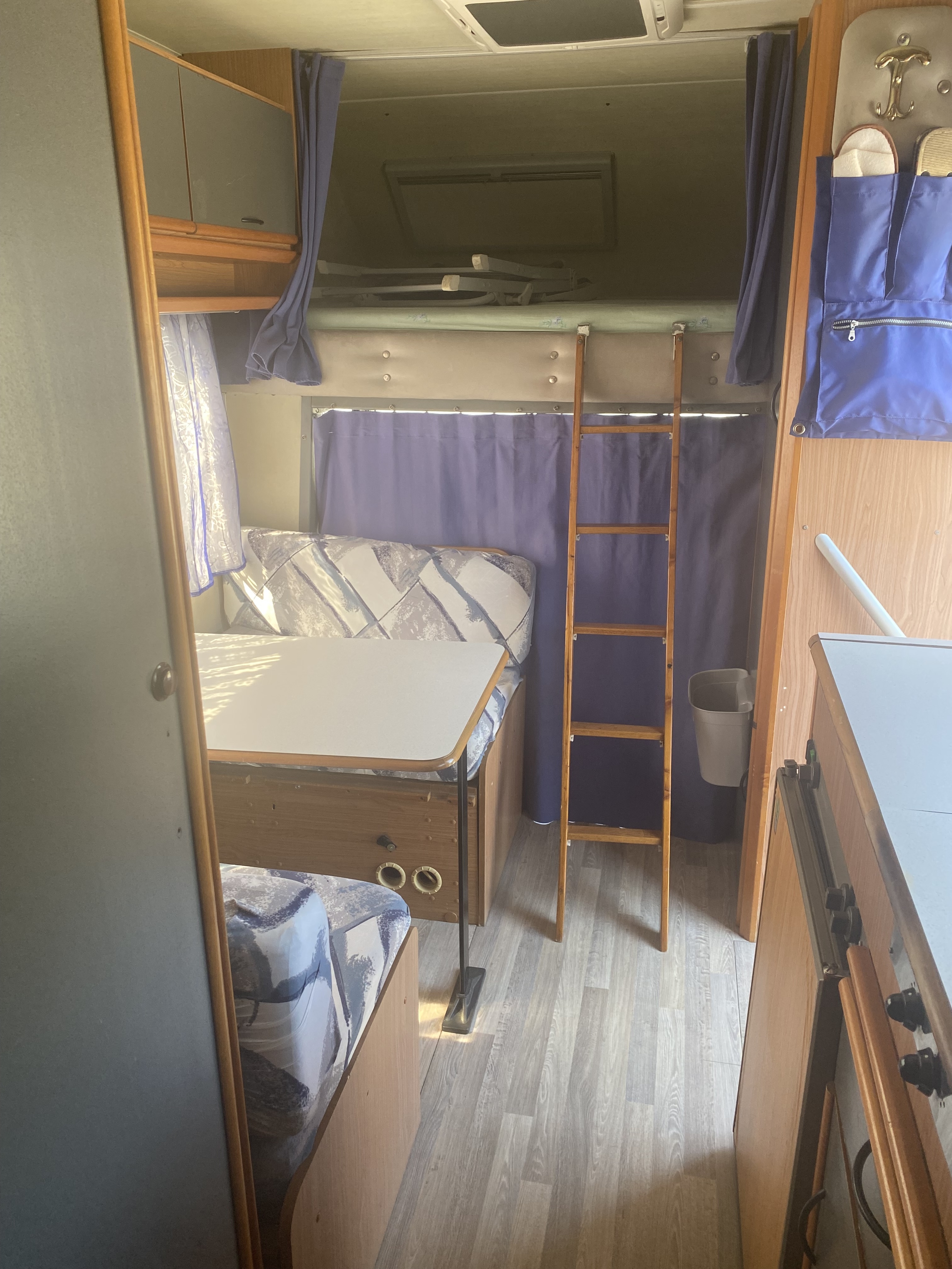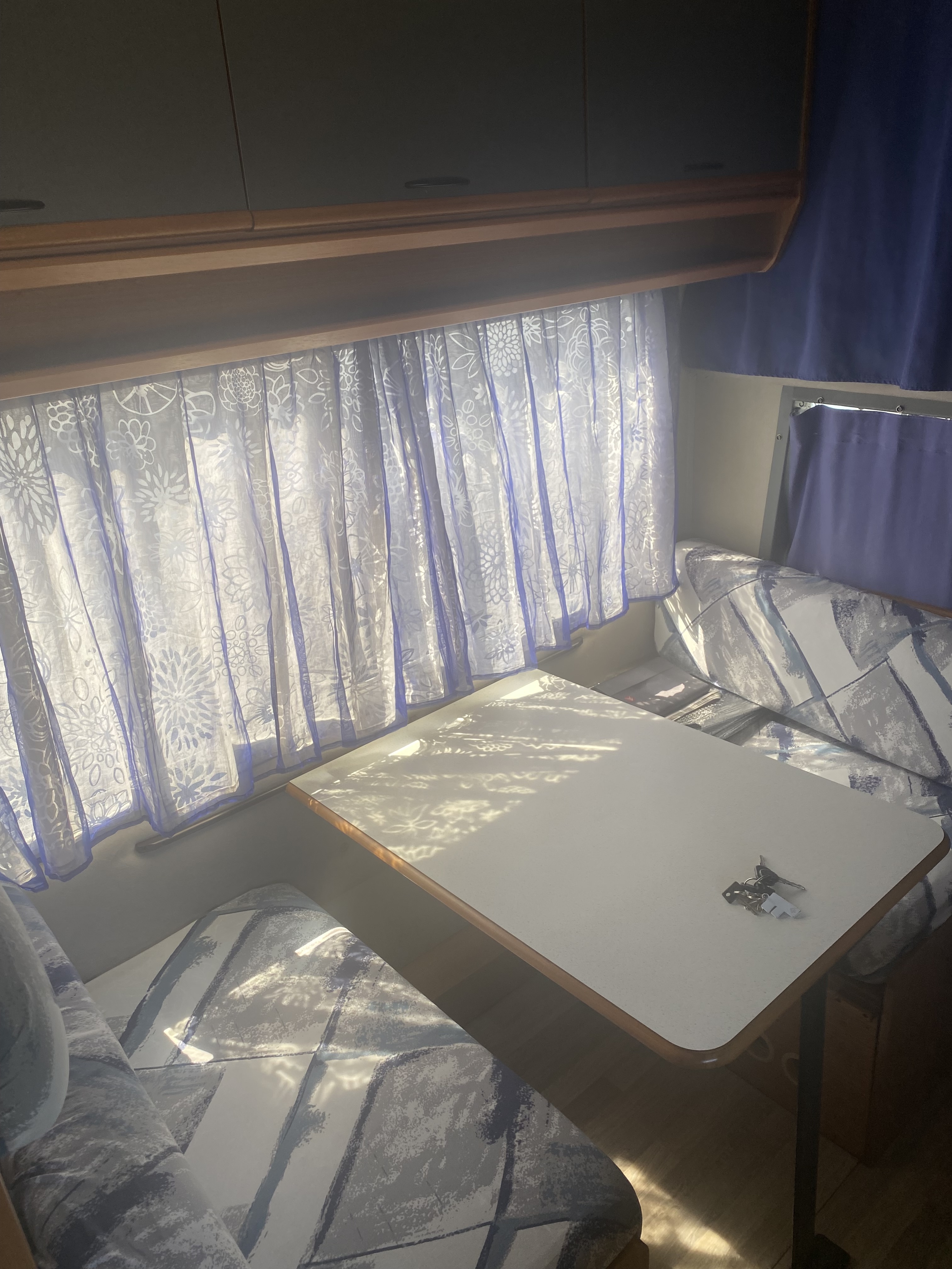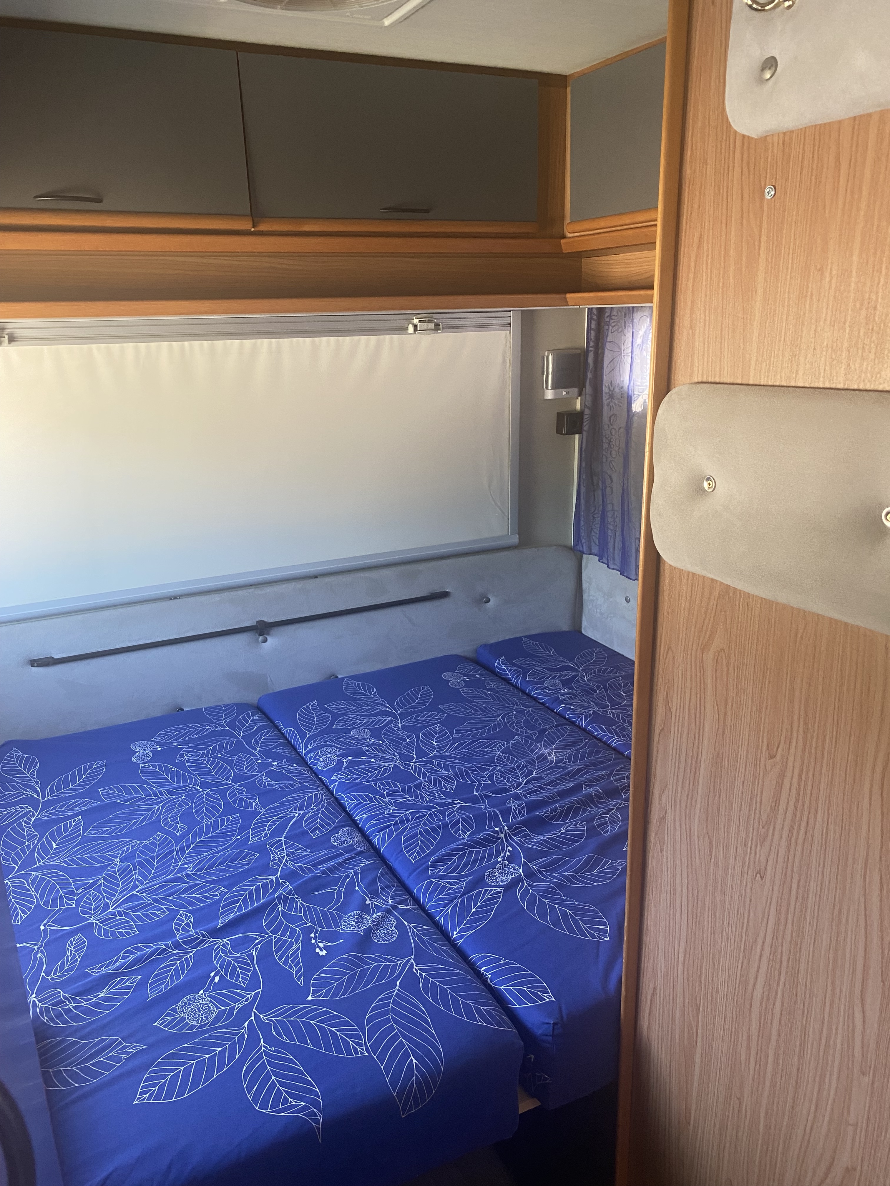 5 posti letto di cui doppia dinette, la dinette in coda trasformabile in letto matrimoniale trasversale permanente con tenda di separazione,