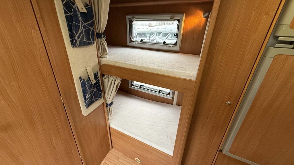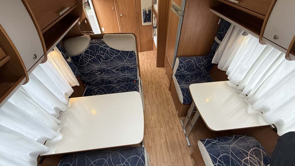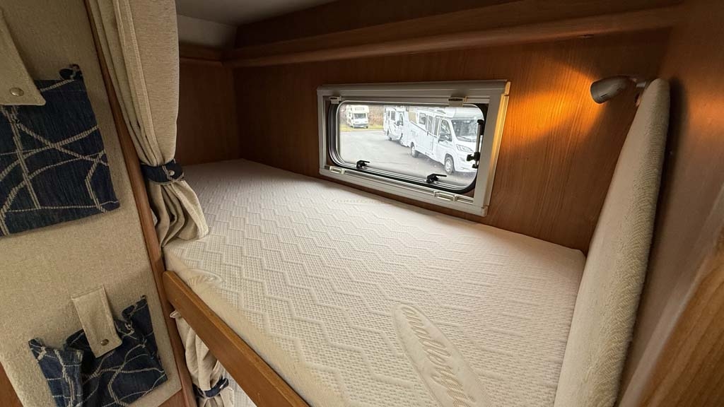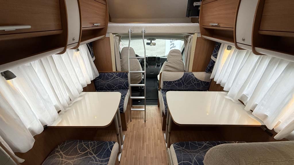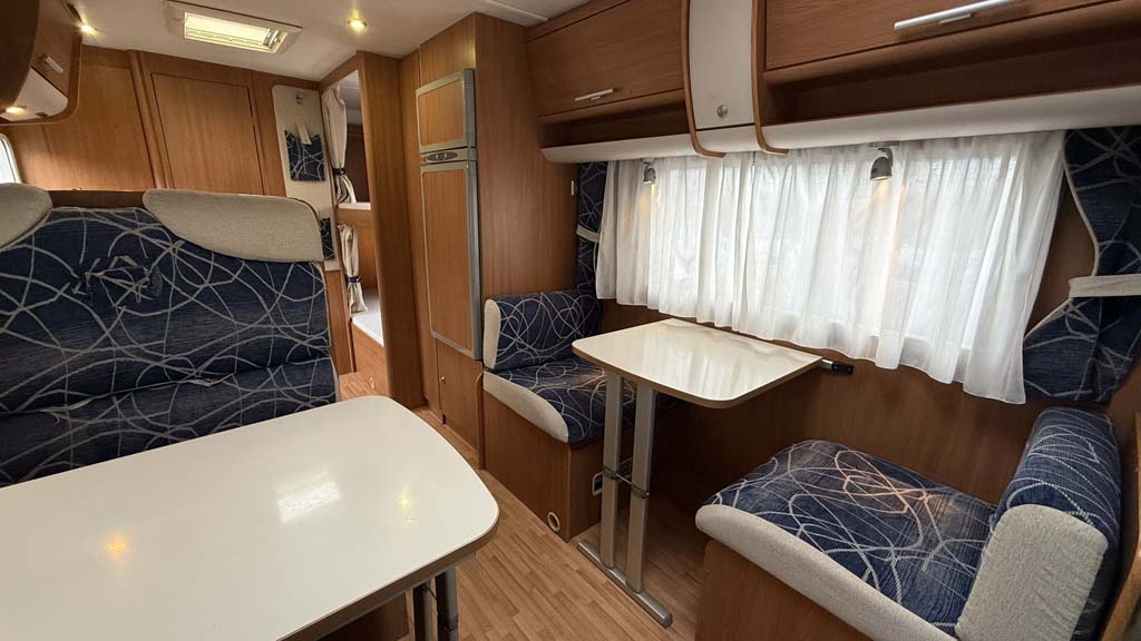 Questo mansardato del 2010, con motore da 130 CV, offre una perfetta combinazione di spazio e praticità. Lungo 7,15 metri, dispone di 6 posti omologati e 7 posti letto, ideali per famiglie o gruppi di amici. La disposizione interna comprende un ampio matrimoniale in mansarda e letti a castello longitudinali, perfetti per garantire comodità a tutti i passeggeri.