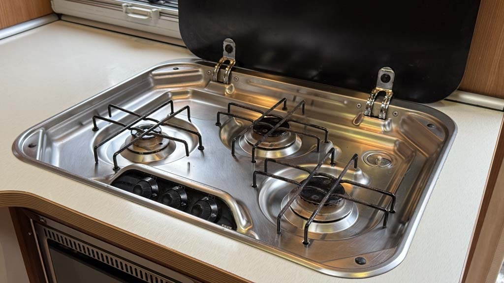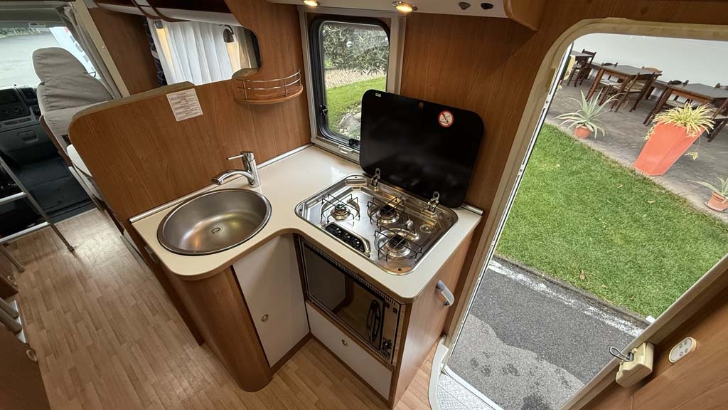La cucina, completa e funzionale, è dotata di 3 fuochi, un bellissimo forno e un frigorifero da 167 litri. Il bagno, spazioso, include una comoda doccia separata per il massimo relax durante i viaggi.