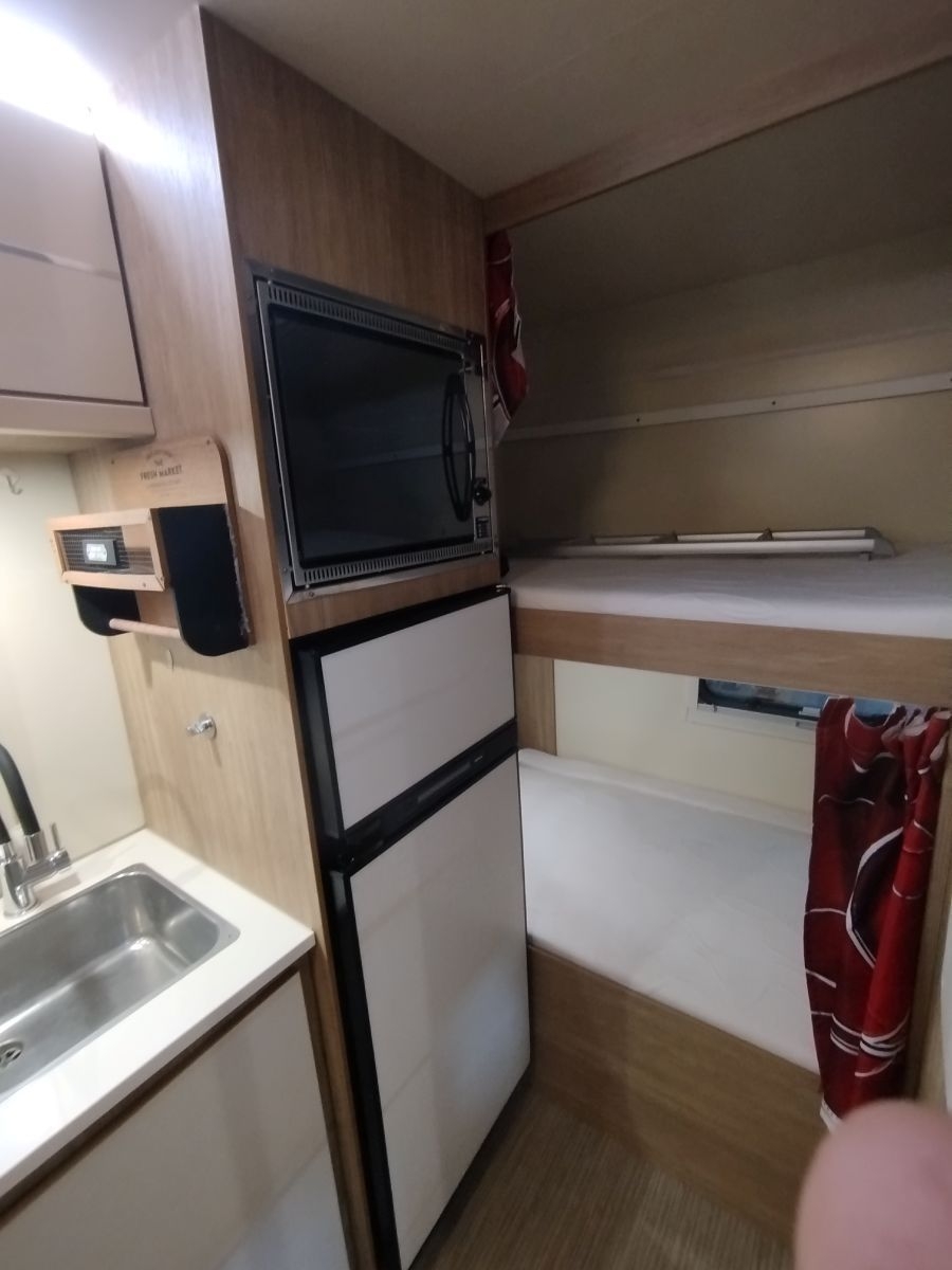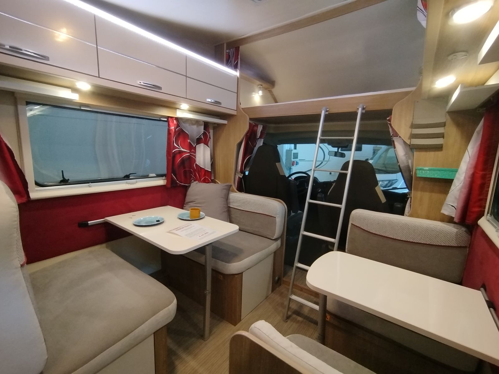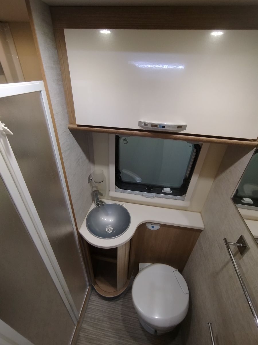 Veicolo ideale per la famiglia, con un’ottima abitabilità interna avendo una doppia dinette, quattro + due posti frontali, trasformabili in letto matrimoniale e lettino singolo, più ampi lettini a castello trasversali in coda e letto matrimoniale in mansarda. Bagno con integrato ampio box doccia, riscaldamento a gas stufa Truma + boiler per acqua calata, cucina a tre fuochi, forno a gas, frigo grande da 156 l.