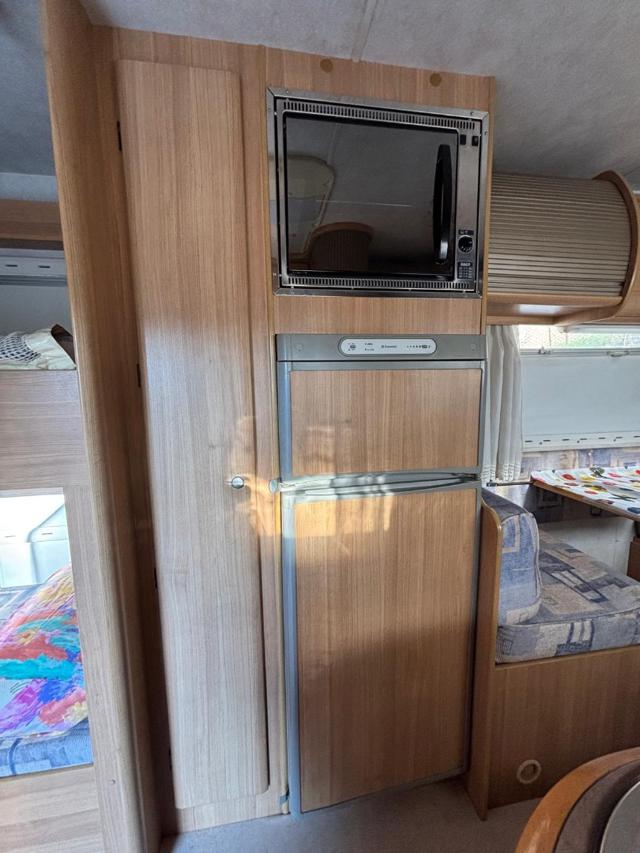 Doppia batteria servizi (installate a maggio 2025), Veranda Fiamma 4,5 m, Portabici 4 posti, Pannello solare, Serbatoio acque chiare 330 L, Serbatoio di recupero 275 L, Gomme nuove montate a luglio 2025, CB, TV, Colonna frigo grande 135 L con forno, Stufa Truma 6000, 2 cassette WC, Aria condizionata in cabina, Inverter