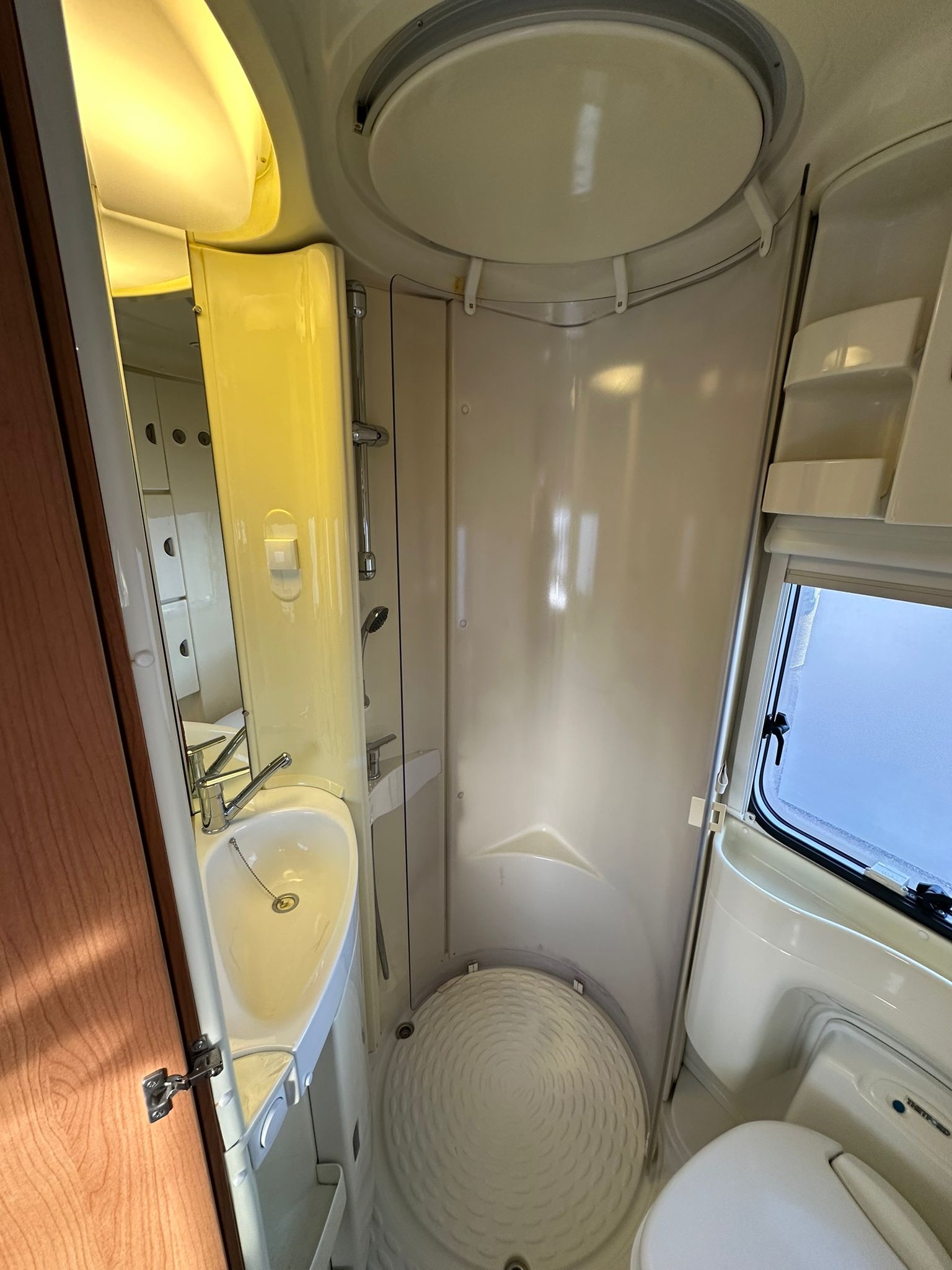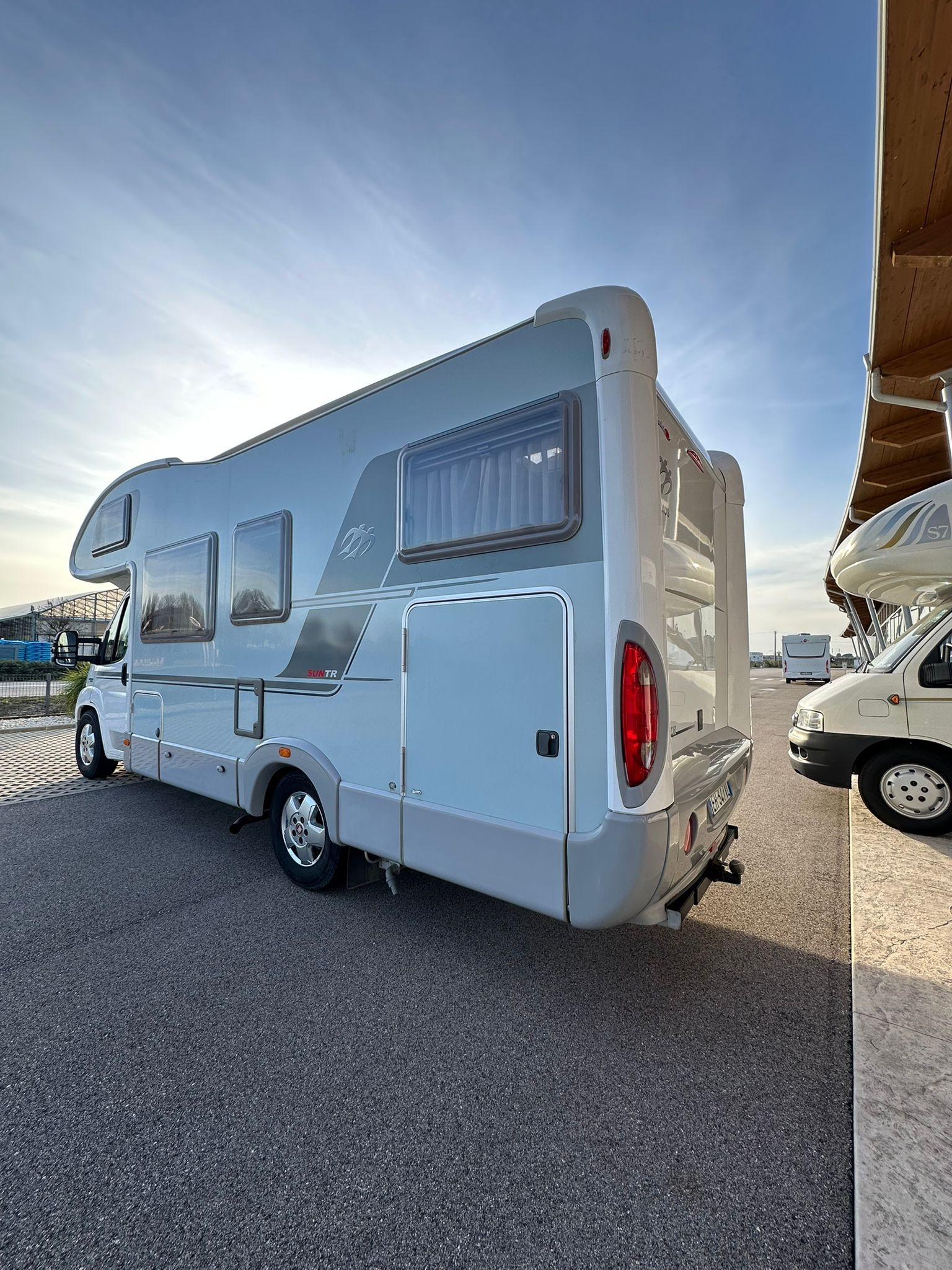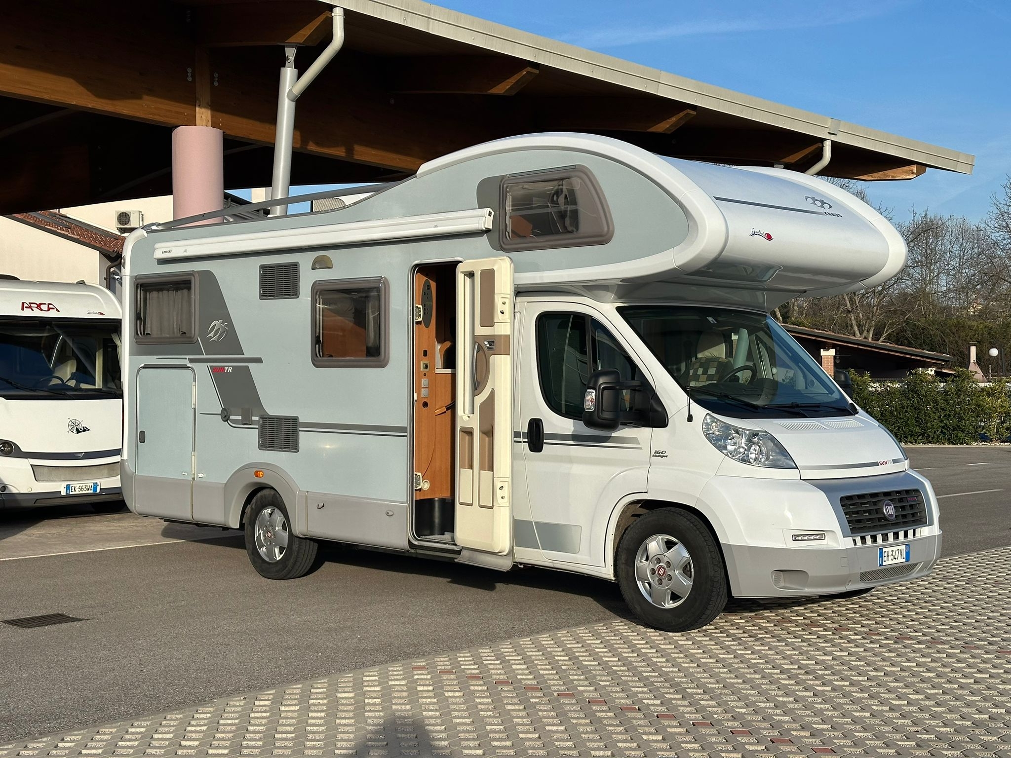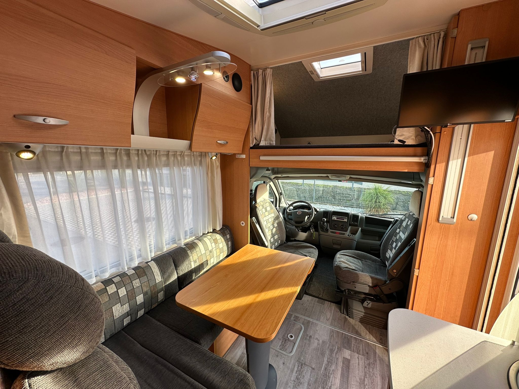Antenna satellitare, cerchi in lega da 16”, clima motore, doppio fondo, gancio traino, oblò panoramico, pannello solare, radio, telaio Al-ko, televisione, tendalino, Webasto, 56.300 km.