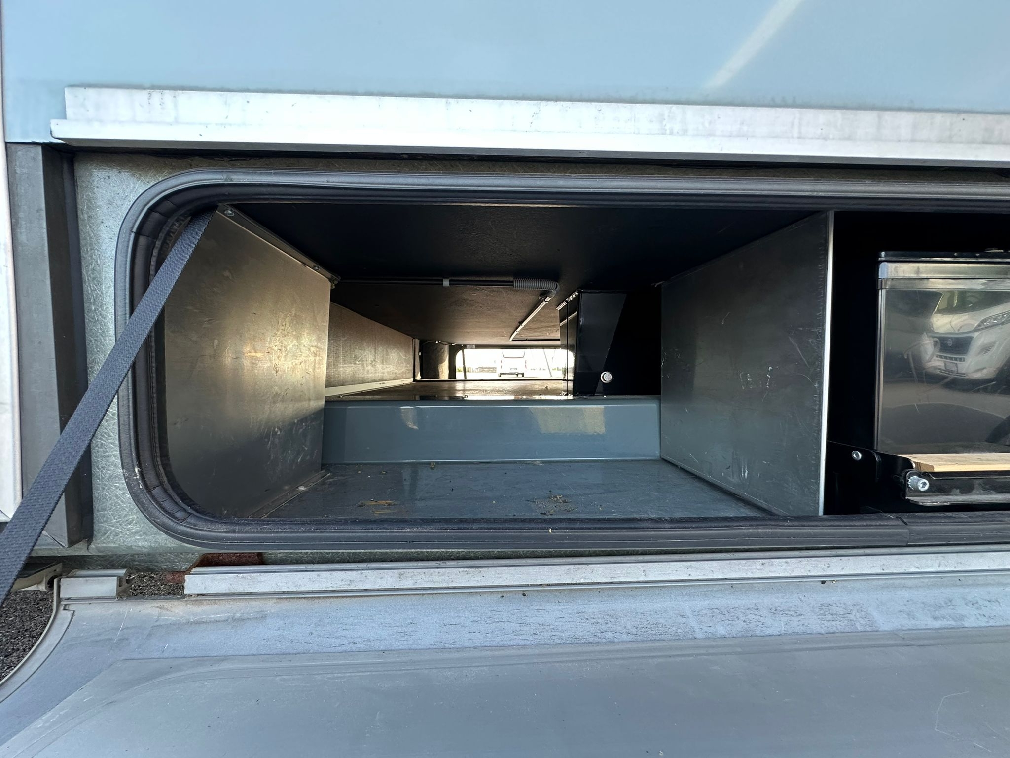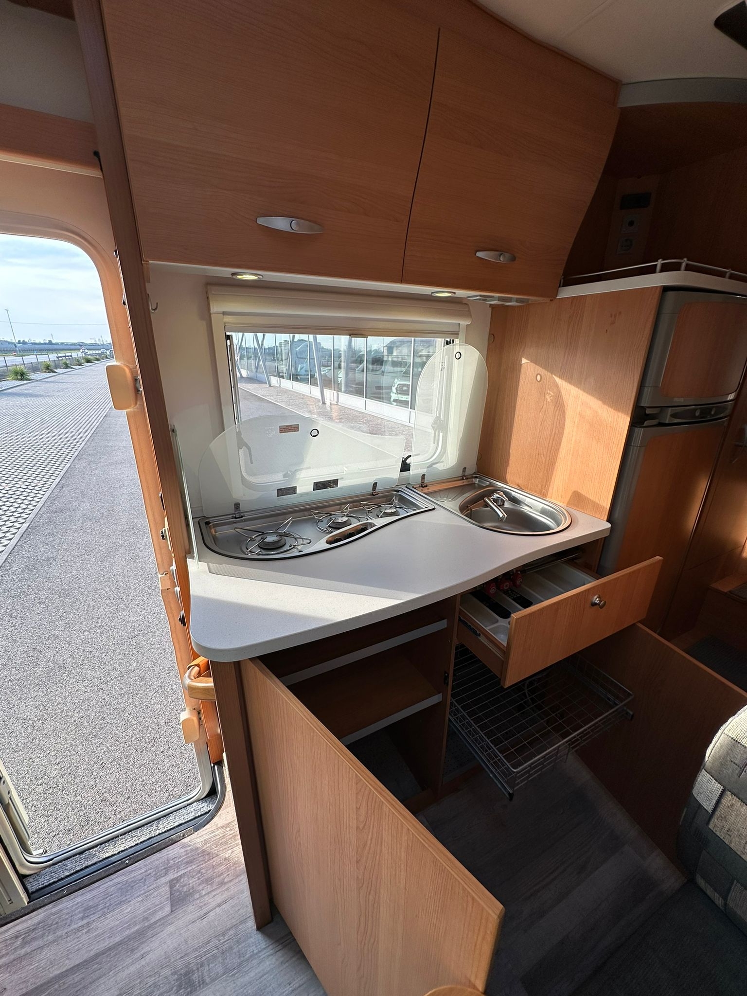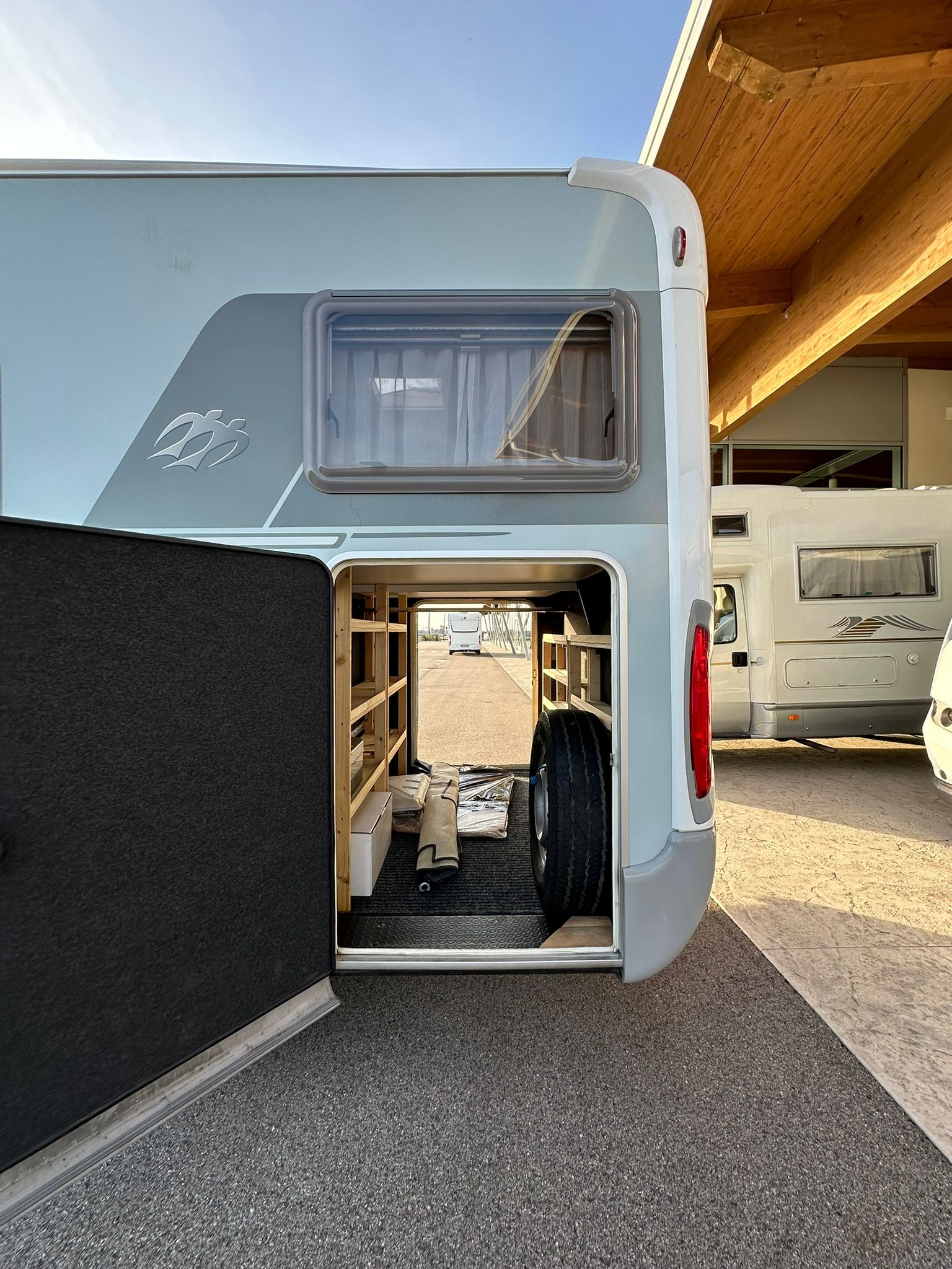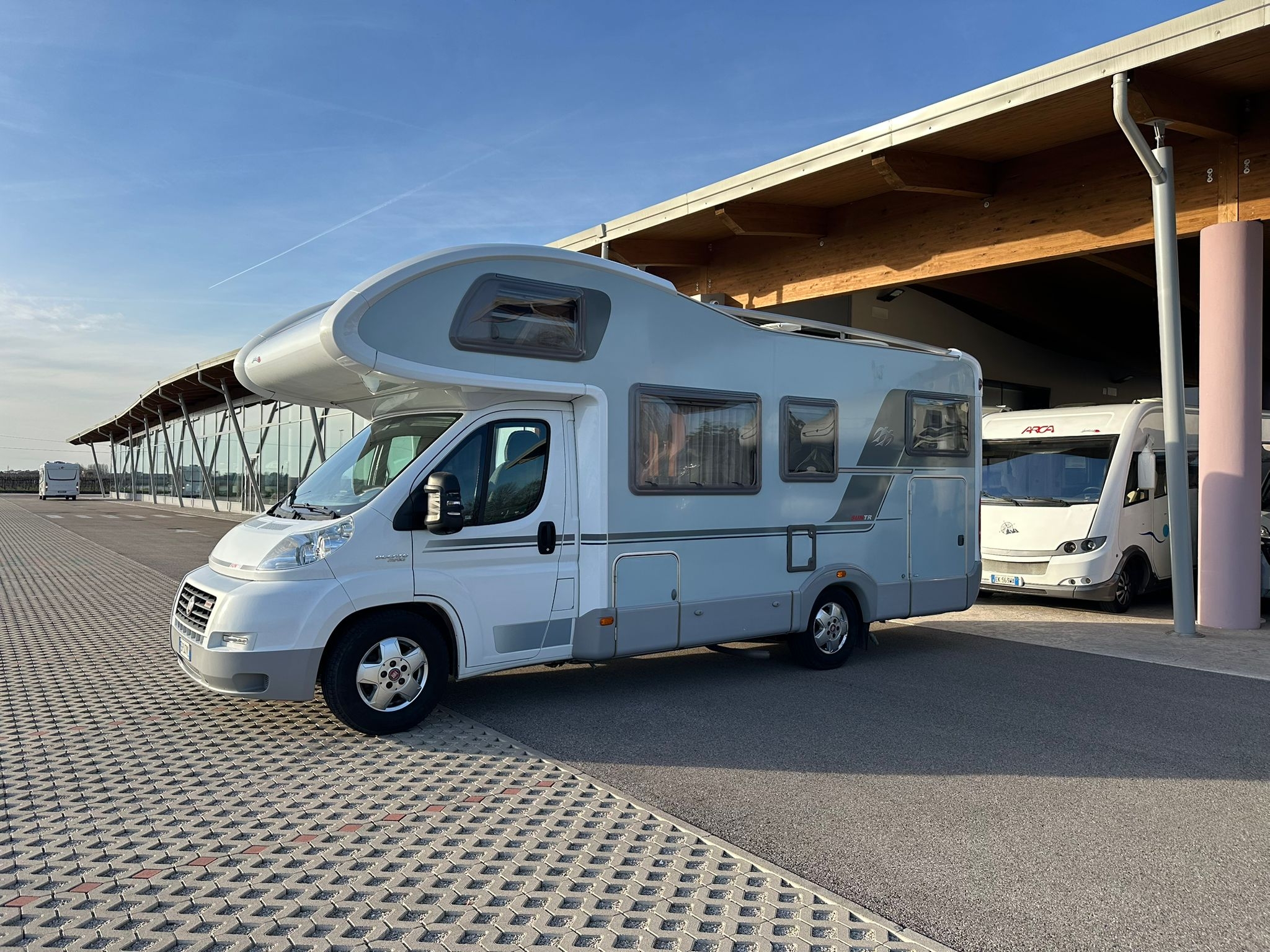 Antenna satellitare, cerchi in lega da 16”, clima motore, doppio fondo, gancio traino, oblò panoramico, pannello solare, radio, telaio Al-ko, televisione, tendalino, Webasto, 56.300 km.