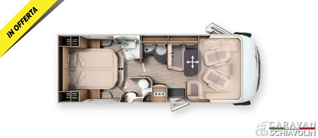 2 ANNI DI GARANZIA convenzionale Meccanica e Cellula by Conformgest Sospensioni ad aria posteriori Goldsmitth con compressone per aumento di portata a 40qli (Patente C), Pannello solare, Climatizzatore automatico in cabina guida, Veranda, Antenna satellitare a puntamento automatico, Meccanica 2300cc 150 cv, Cerchi in acciaio da 16', Tappetini cabina, Moquette cellula, 3 cuscini decorativi e copriletto, Duocontrol con tubi gas securmotion, Tappezzeria stile Lyon, Doppio pavimento, Garage bars con golfari, Antifurto, Presa acqua esterna, Presa gas nel vano bombole, Pac Basic 1 (airbag conducente/passeggero, tempomat Cruise Control, Hill discent, Abs, regolazione dell?inclinazione e dell?altezza delle sedute in cabina, copriruota con emblema Malibu, predisposizione radio),Pac Basic 2 (frigorifero ?slimtower? da 146 Litri, oscuranti Remis in cabina di guida, finestre Seitz S4, porta cellula ?premium one? con finestra e zanzariera, illuminazione diffusa indiretta abitacolo con tecnologia LED, oblò panoramico Midi Heki sopra il gruppo sedute, innovative luci posteriori con lampadine LED, potente pompa dell?acqua a pressione al posto della pompa a immersione di serie),Pac media (Radio CD/DVD doppio DIN con touchscreen e funzione monitor retrocamera, sistema di retrocamera con lente singola, schermo piatto da 22' con supporto a parete), Prezzo con permuta ? 64.900,00 Camper motorhome di casa Carthago con letto nautico, bagno e doccia separati in meno di 7 metri di lunghezza, veicolo pari al nuovo con appena 6616 km effettuati, molti accessori e portata maggiorata a 40qli, quindi patente C.2 ANNI DI GARANZIA convenzionale Meccanica e Cellula by Conformgest ,.