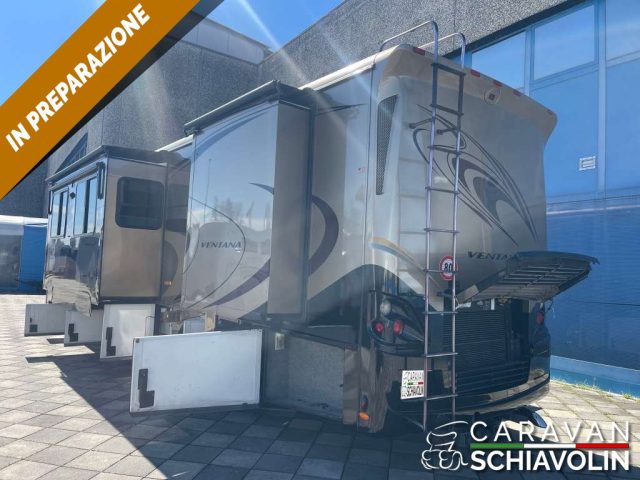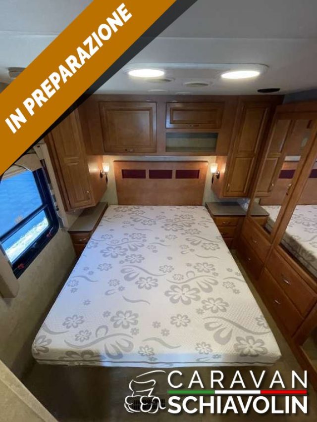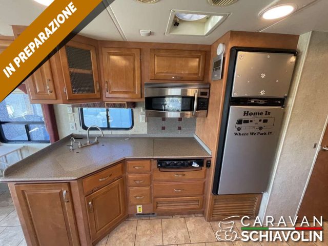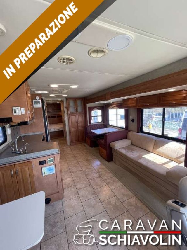 Telaio Pullman con sospensioni ad aria autolivellanti, Freni ad aria e Freno motore, Sterzo Confort Drive e regolabile, Cambio automatico Allison, Piedini idraulici autolivellanti Goldshmitt da 13T, Veranda elettrica, Veranda porta ingresso elettrica, Tende esterne su finestre, Bombolone Gpl omologato, Generatore a gasolio OnanQuiet 5KW, Generatore supplementare a gas Gasperini, Inverter 2000watt, Riscaldamento canalizzato a pavimento con boiler a gas Atwood, Doppio tetto in vetroresina con doppio Condizionatore a tetto canalizzato con pompa di calore, Forno a microonde americano, Frigorifero con cella freezer americano, Doppio serbatoio acque chiare, Cinebasto a gasolio canalizzato, 6 pannelli solari, Telecamere supplementari per angoli anteriori, Retrocamera integrata nella radio 2 din, Antenna satellitare Mecatronic, Antenna digitale terrestre, 3 Tv due interni ed uno esterno, Trombe clacson Hadley, Fari supplementari sul tetto anteriori, Fari xenon, Gradino ad apertura e chiusura elettrica automatica con sistema di livellamento pavimento interno + VARIE N.B.: La lista accessori è in fase di verifica e definizione da parte della nostra officina. N.B. L',immagine della pianta interna è indicativa , ,CAMPER MOTORHOME AMERICANO CON SLIDE LATERALI, MECCANICA CUMMINS ISBXT CON TRASMISSIONE AUTOMATICA ALLISON SU TELAIO PULLMAN DA 12,7QLI, 6700CC DIESEL E 356CV, VEICOLO RARO ED UNICO, SUPER ACCESSORIATO, BEN CONSERVATO. ,MODELLO DEL 2008 IMMATRICOLATO PER LA PRIMA VOLTA IN ITALIA NEL 2010 ,PREZZO , CON IVA ESPOSTA ,.