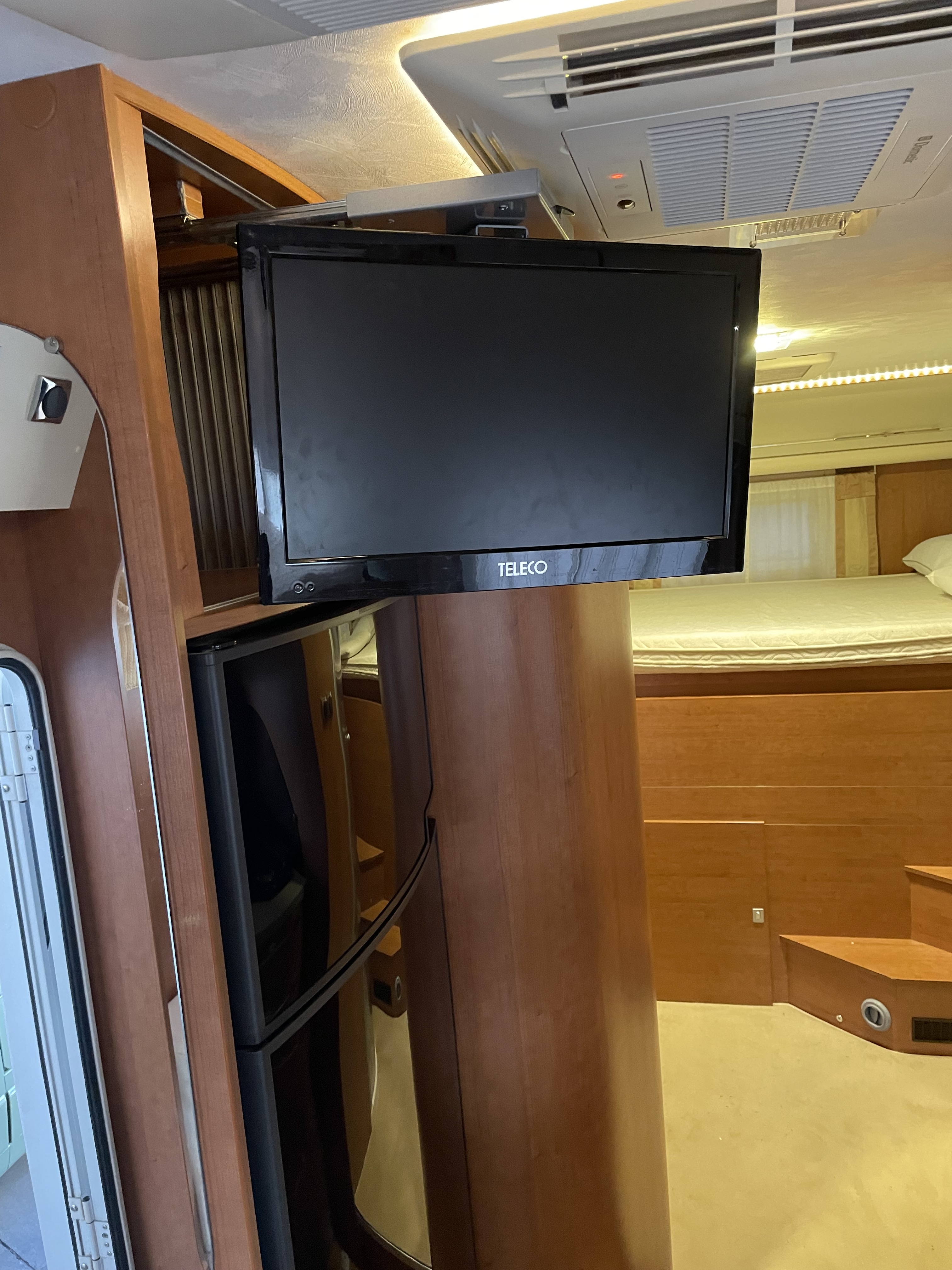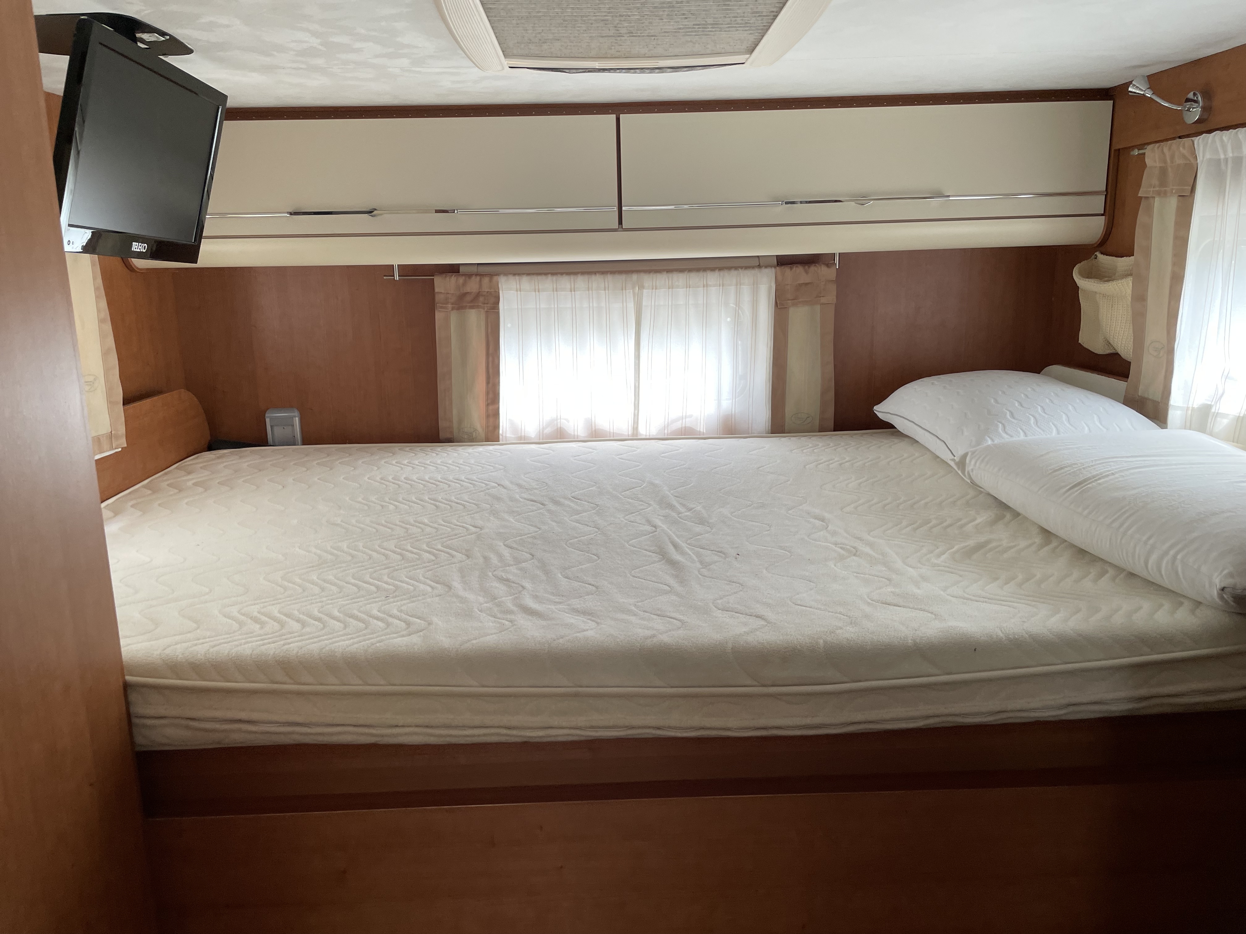 riscaldato, climatizzatore/pompa di calore cellula, doppio riscaldamento a gas Truma 6000 e Webasto a gasolio, nr. 2 TV digitale terrestre e parabola satellitare automatica, allarme antifurto, doppio serbatoio acqua da 200 litri, gancio di traino omologato, garage interno con rampa, centralina motore ottimizzata per consumi e prestazioni