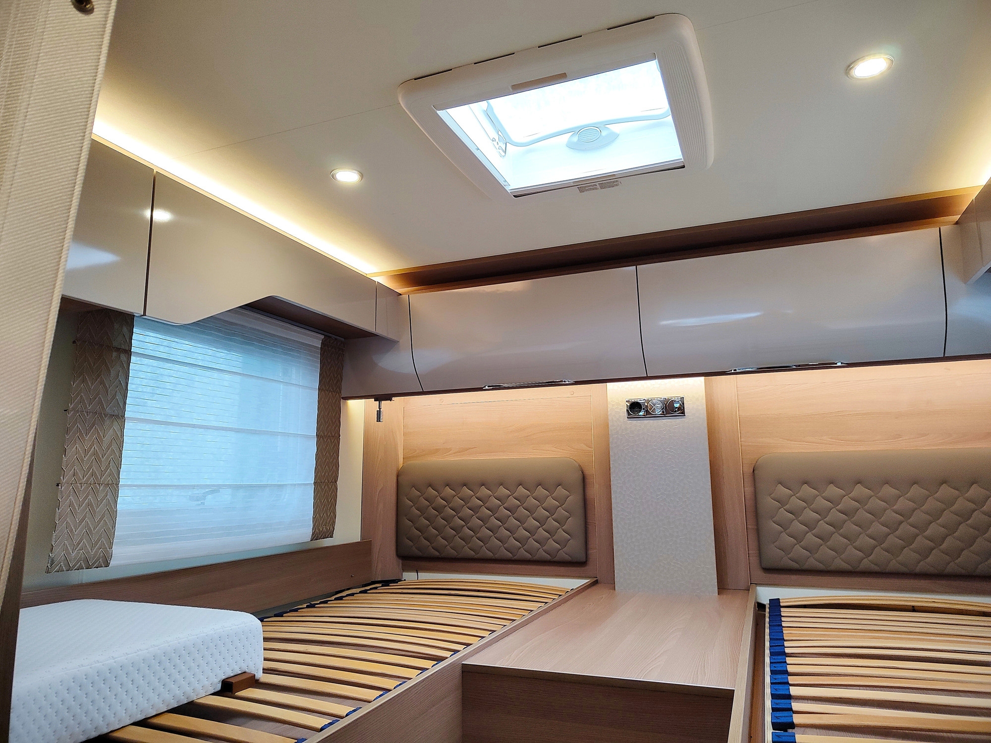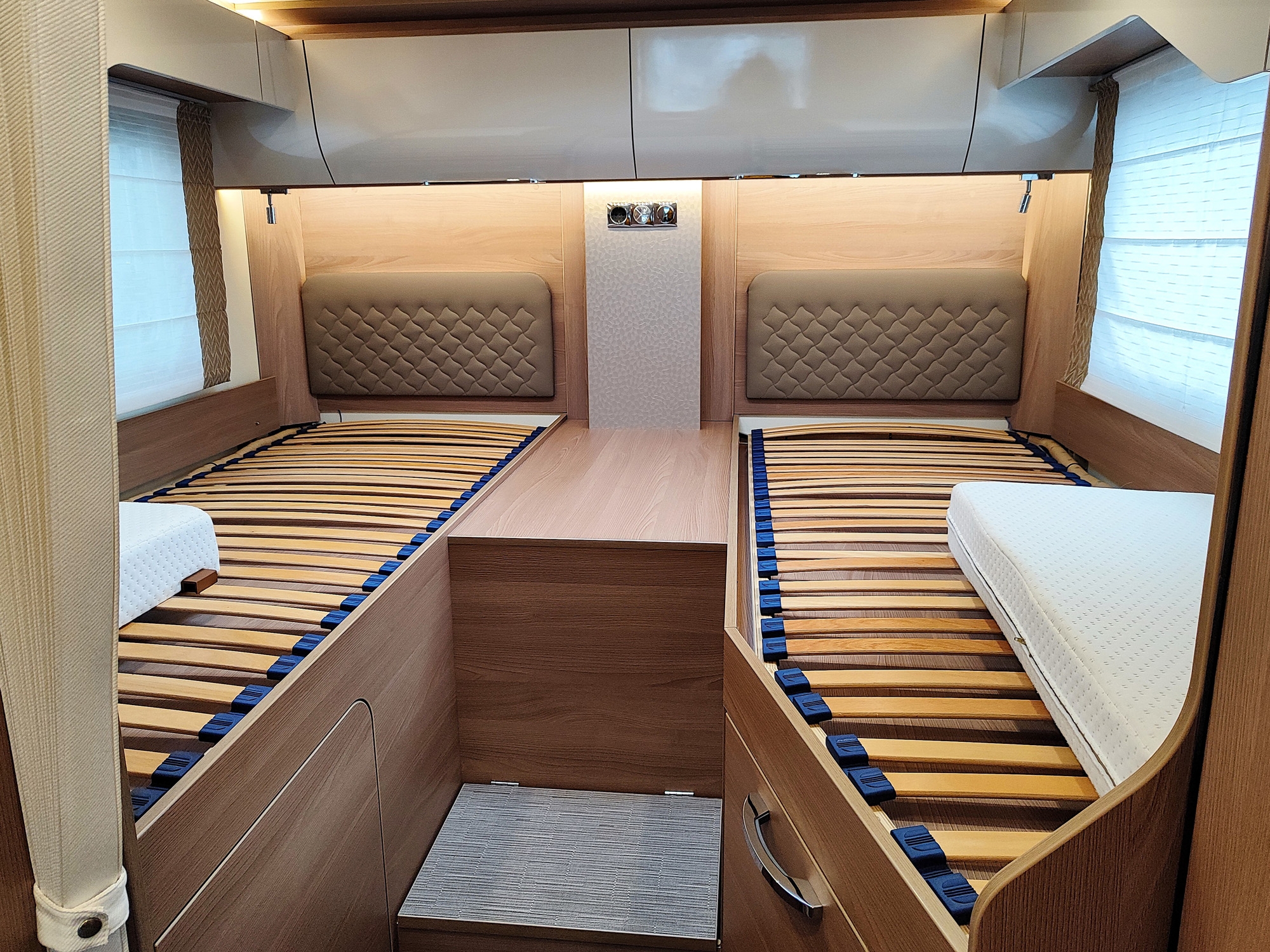 Burstner Ixeo I 690 G: camper motorhome con letti gemelli e letto basculante, 4 posti letto, doppio pavimento e garage.