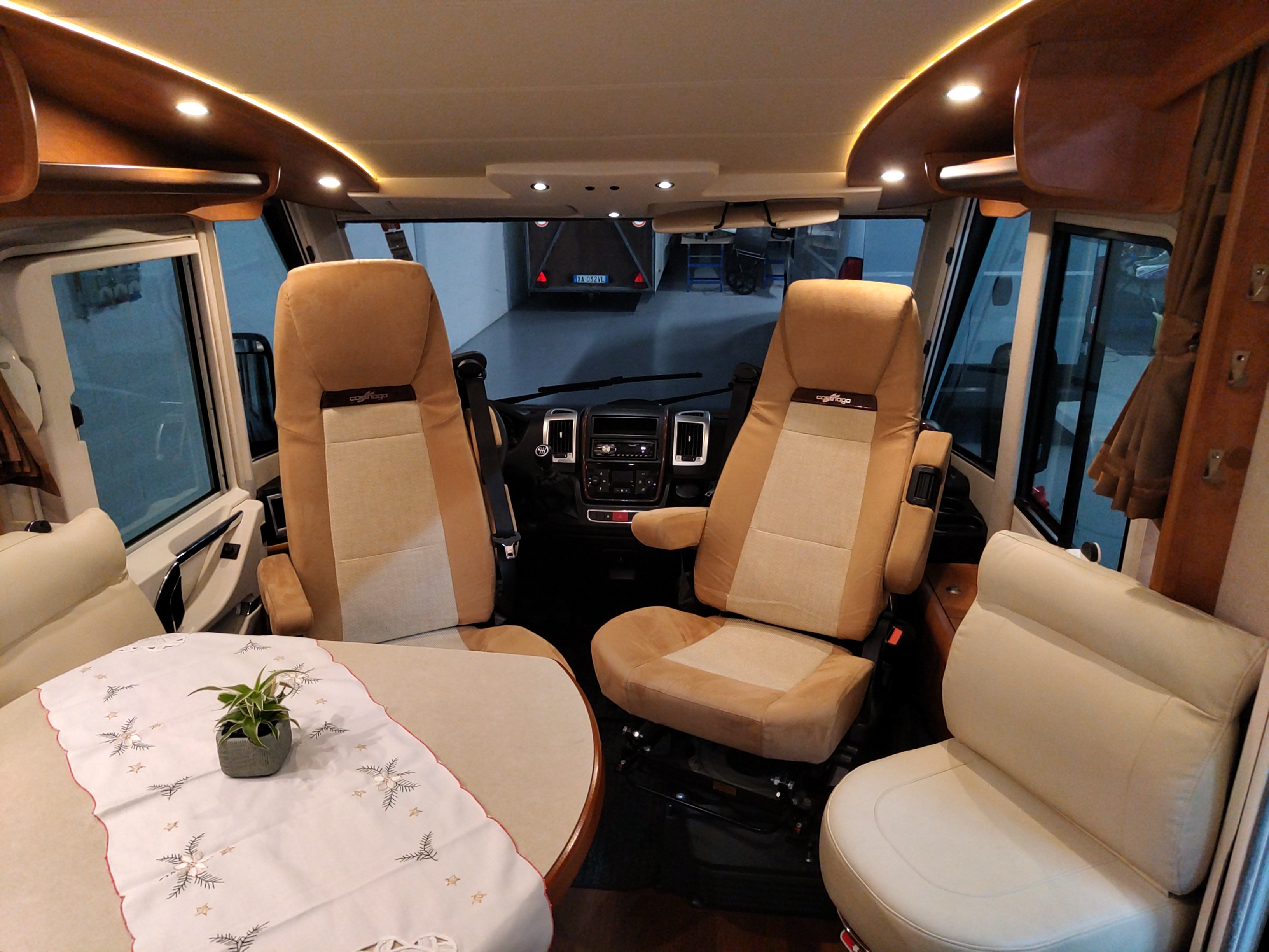 Pacchetto comfort, Pacchetto telaio, Kit sensori posteriori con cicalino, Telecamera posteriore, Seconda batteria servizi, Cerchi da 16’, Secumotion e Duocontrol per poter usare il gas durante la marcia, Due bombole gas ultraleggere in fibra di vetro, Radio con DVD, Schermo TV 19’ Carthago, Antenna TV satellitare, Porta a due chiusure di sicurezza, Antifurto volumetrico perimetrale portelloni e finestre 3T Gemini, Porta grande garage lato conducente, Inverter professionale 220 v, Tappezzeria nuova di ricambio posti anteriori.