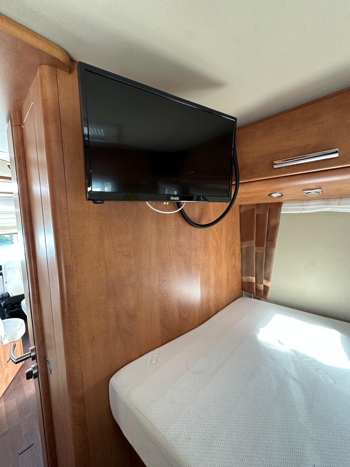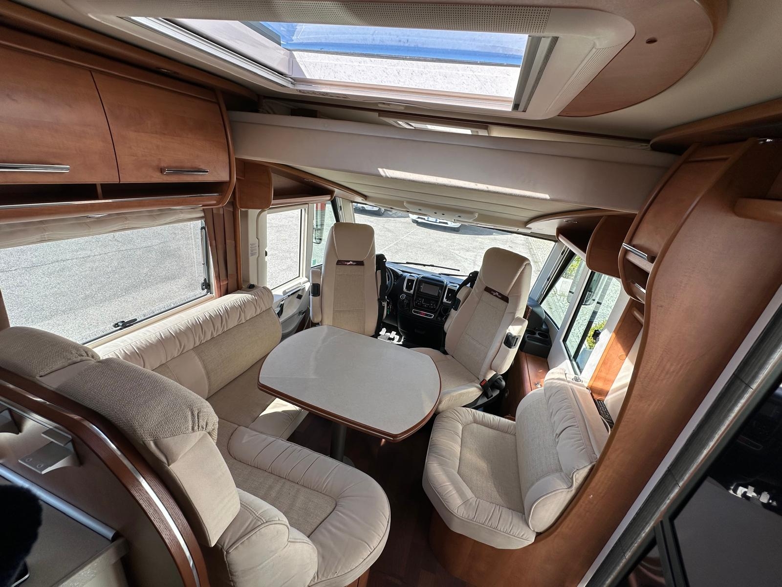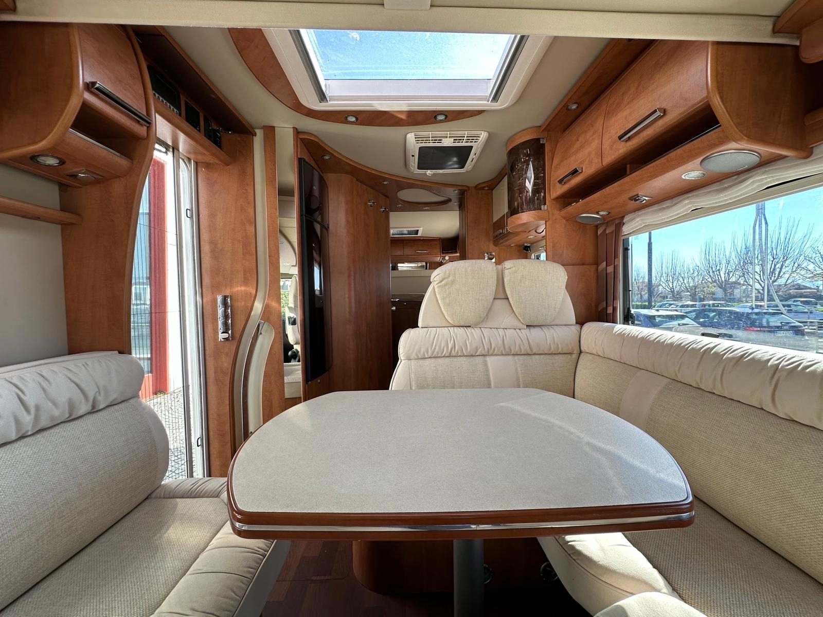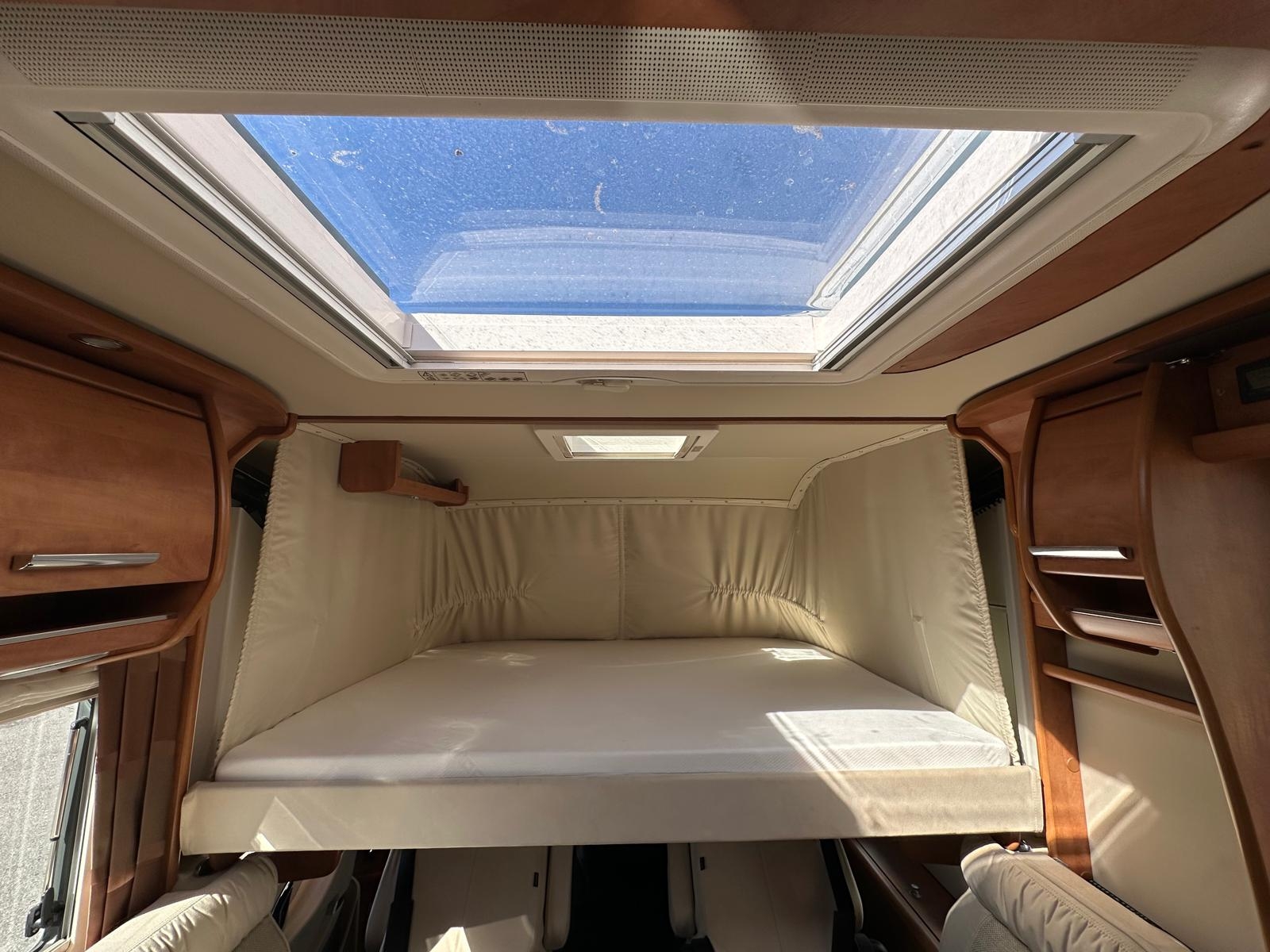 Clima automatico, Cruise control, Traction+, Hill Discend, Radio doppiodin, Retrocamera, Cerchi in lega 16’, Scuri plissè cabina, Veranda, Condizionatore Dometic cellula, Zanzariera porta cellula, gradino elettrico, AntennaTV SAT Auto Teleco + 2 Tv, Luce esterna, Pollicino caricamoto garage + rampa, Ruota di scorta, Frigo 160 litri, Maxi oblò pan,