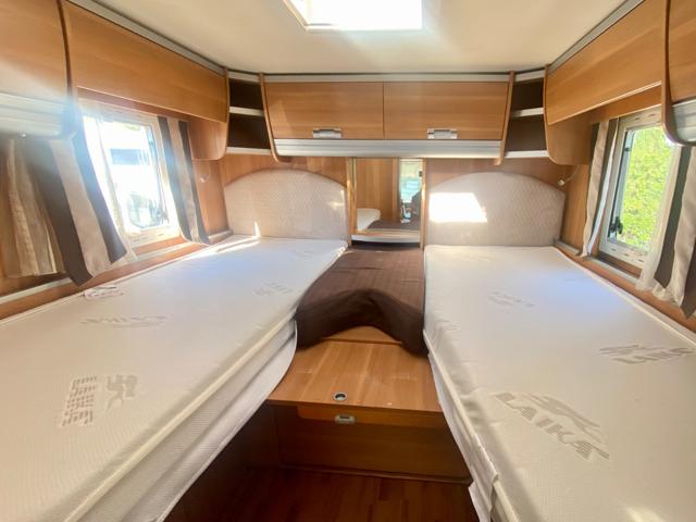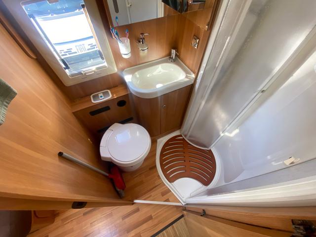 anno 2015 con nemmeno 75.000km, nella sua lunghezza di 7,49 mt ospita una spaziosissima dinette con tavolo ruotabile e sedili girevoli, un comodo letto matrimoniale basculante sopra la cabina e comfort totale anche nella zona notte in coda grazie ai letti gemelli trasformabili in matrimoniale. Bagno e doccia separati in un unico ambiente e cucina super confortevole grazie alla presenza del doppio lavello e piano cottura a tre fuochi.
