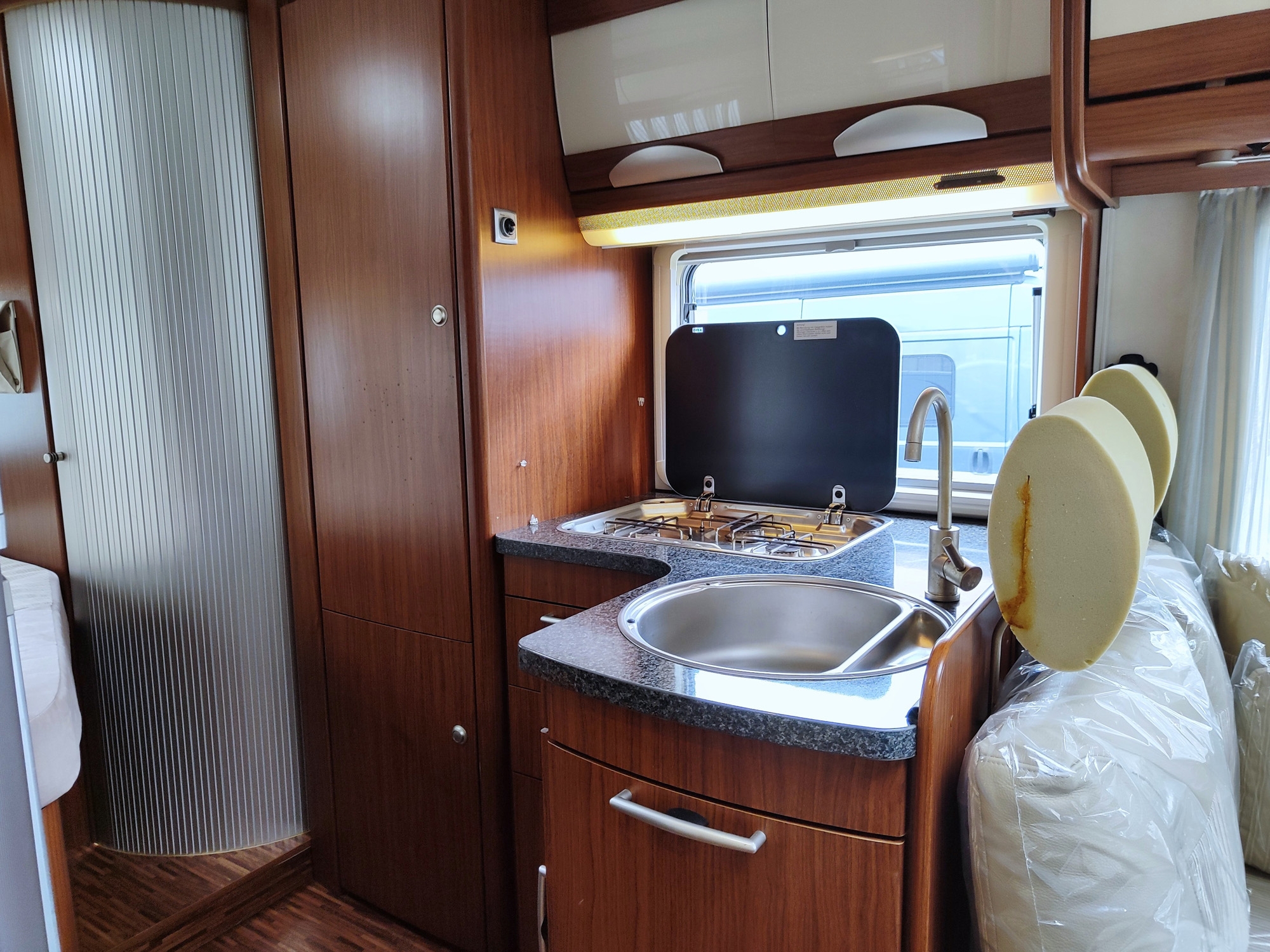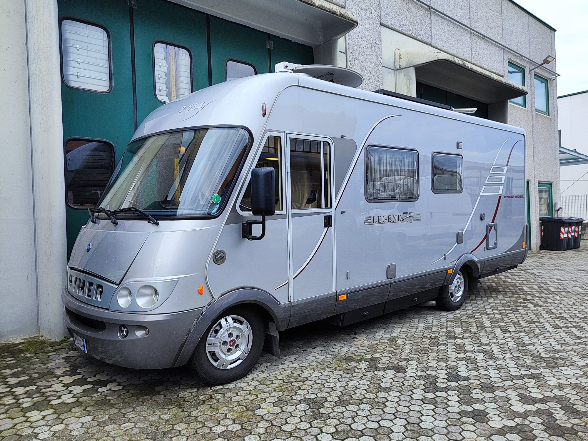 Hymer B 654 Legend: camper usato motorhome con 4 posti letto, dotato di veranda, antenna tv, porta moto, generatore. In vendita da VR Camper a Druento (To)