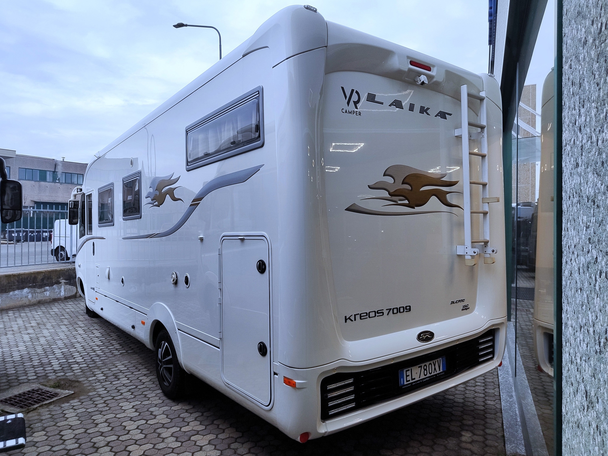 Laika Kreos 7009: camper usato motorhome con letti gemelli, lunghezza 7,49 metri, patente B. Su Fiat Ducato 148 CV. In vendita da VR Camper a Torino.