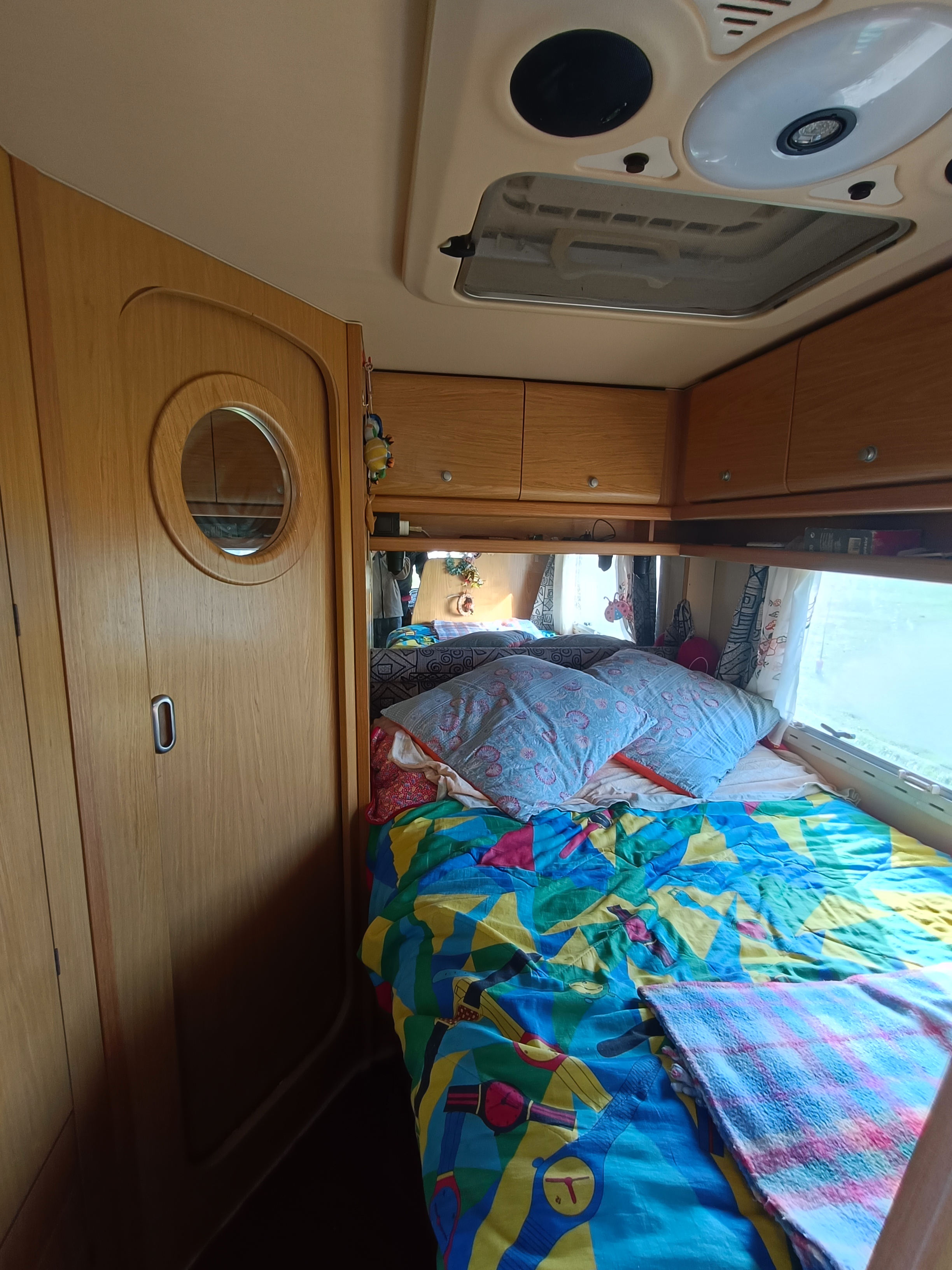 Dinette, cucina laterale, 1 letto matrimoniale alla francese e 1 basculante, bagno con doccia in coda, ampio armadio, gavone, ampio garage, stufa truma, 100 litri recupero acqua grigia