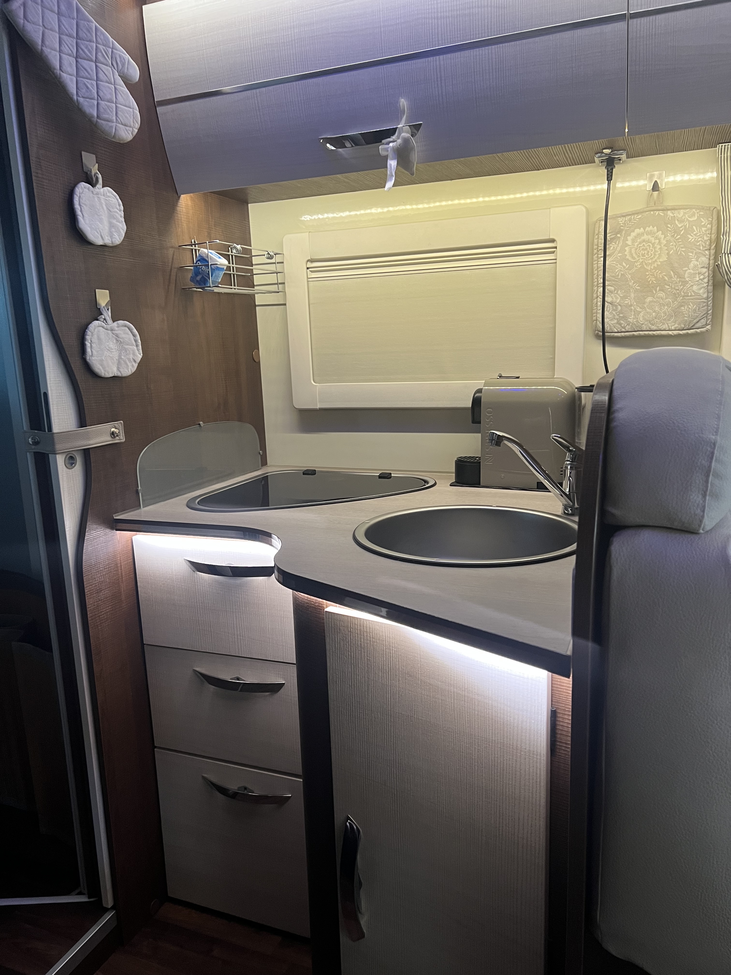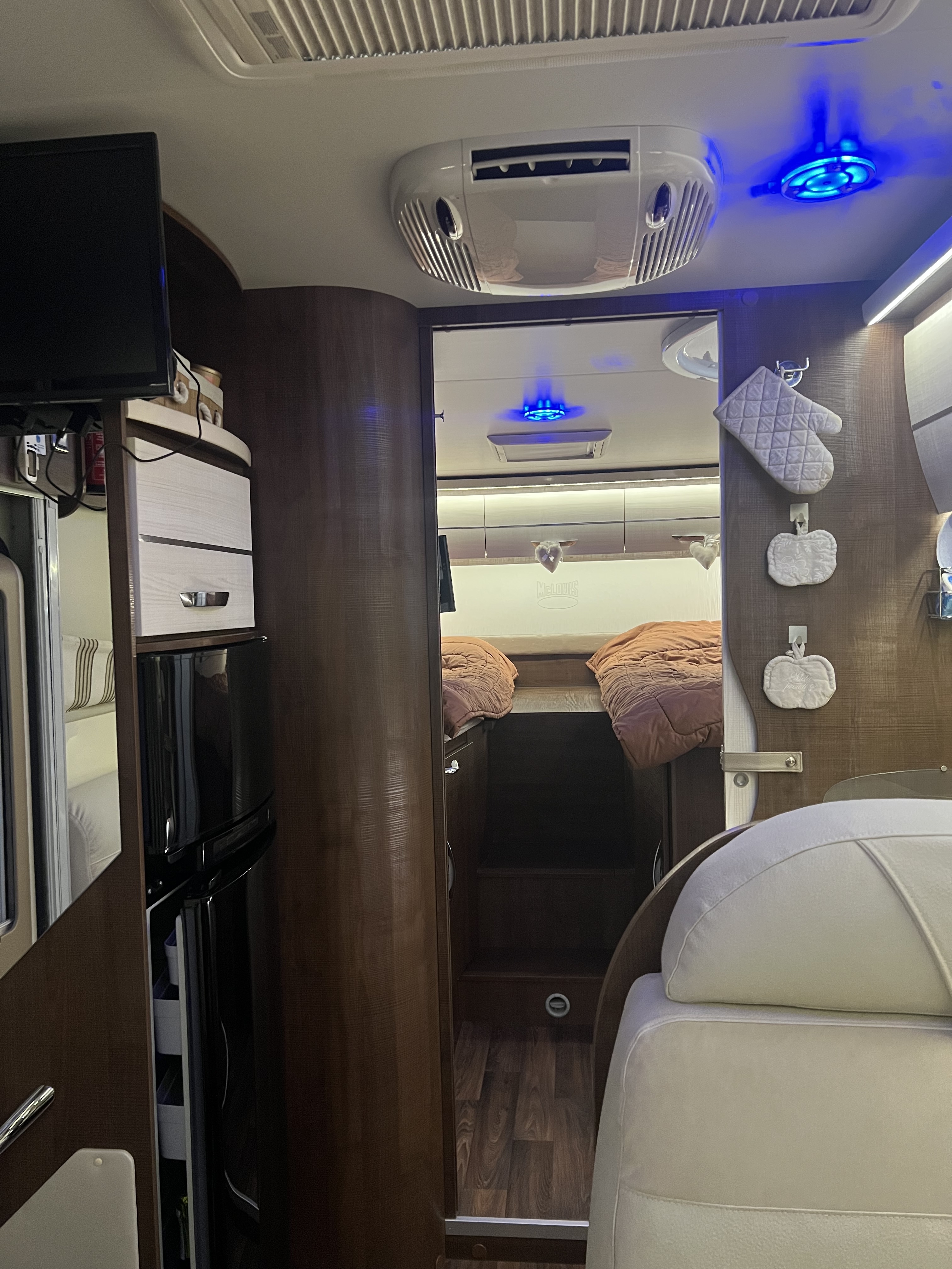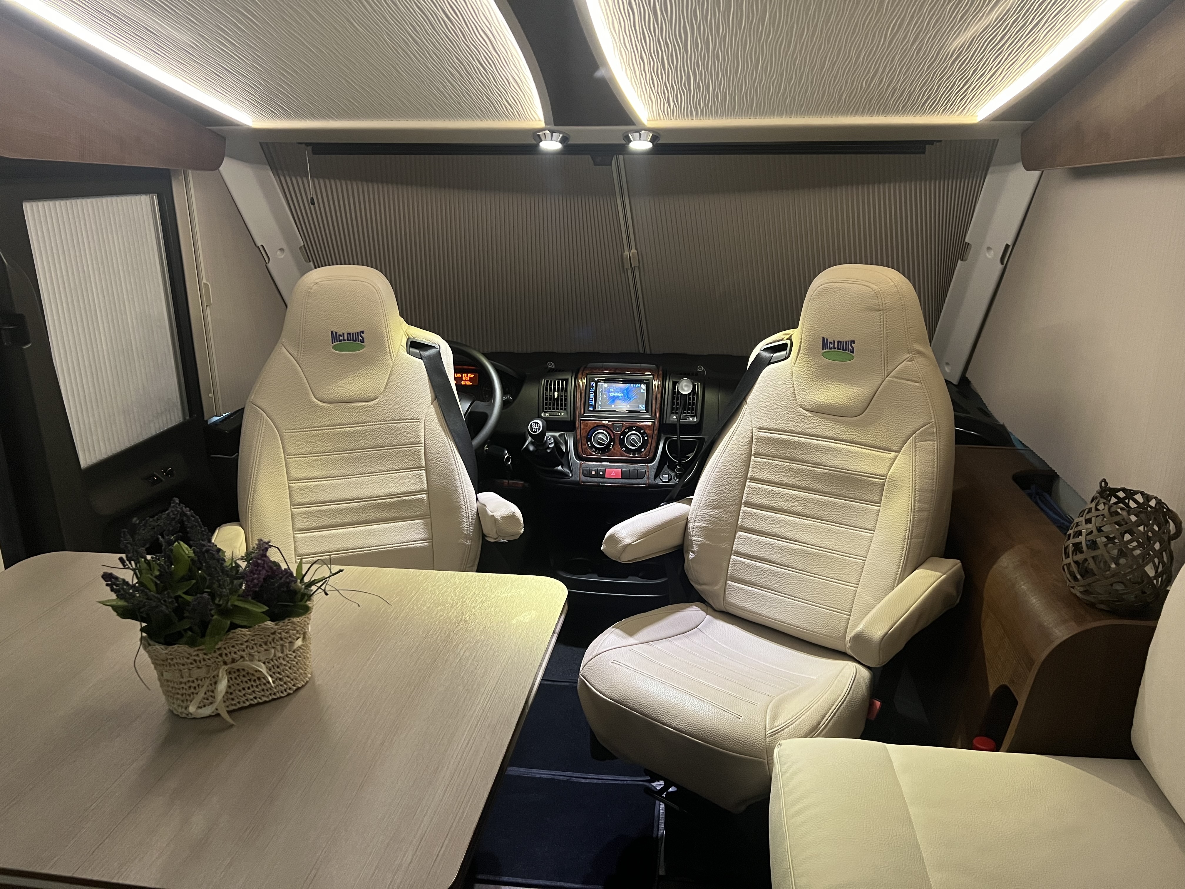 letti posteriori gemelli tenuto al coperto in maniera maniacale cerchi in lega sedili in pelle e tessuto distribuzione con tagliando completo e revisione fatta nel 2025 gomme sostituite nel 2025 aria condizionata in cabina e cellula Frigorifero grande con cella separata Tutte le luci interne a led Inverter Waeco 2000 w per poter usufruire del condizionatore in corsa Batteria motore anno 2025 Pannello solare Antenna satellitare 2 TV Retrocamera Portabici Gavone sotto il letto per poter alloggiare uno scooter Tendalino Doccino esterno con attacco presa gas Rivelatore fugge gas “trio gas” Controllo scocca contro infiltrazioni fatta da un officina specializzata giugno 2025 con tanto di documentazione attestante