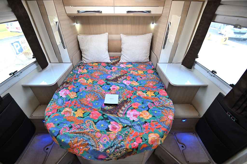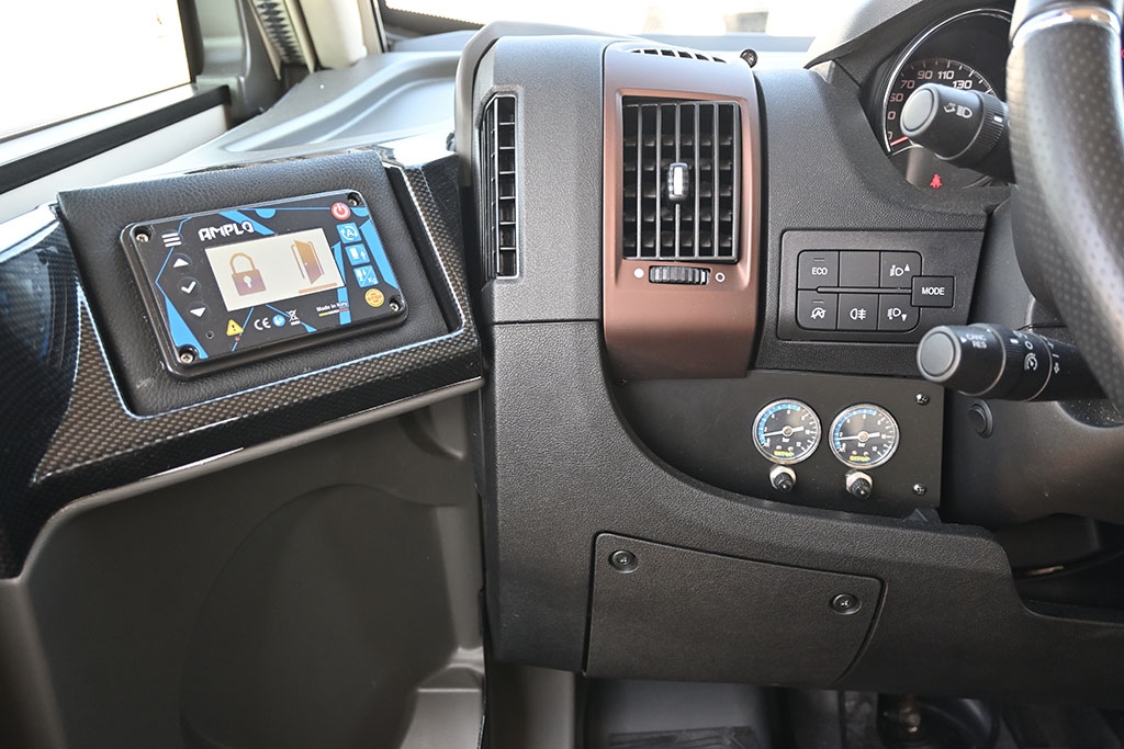 ESP, Traction+, Hill Holder, Hill Descent Contriol, Climatizzatore cabina, Cruise Control, Airbag passeggero, Specchietti retrovisori regolabili elettricamente e riscaldabili, Luci diurne a LED, Volante e pomello del cambio rivestiti in pelle, Condizionatore cellula, Piedini stabilizzatori idraulici Amplo, N°2 pannelli solari, N°2 batterie al litio, Inverter da 2.000 W, Tendalino, Sospensioni ad aria, Antenna satellitare, Antenna TV terrestre, Autoradio 2DIN con comandi al volante, Telecamera retromarcia, Doccetta esterna, Presa multimediale esterna, Serbatoio di recupero riscaldabile, Letto posteriore variabile elettricamente in altezza, Porta cellula con finestra, zanzariera e chiusura centralizzata, Luce esterna