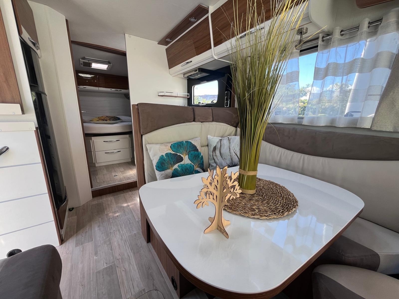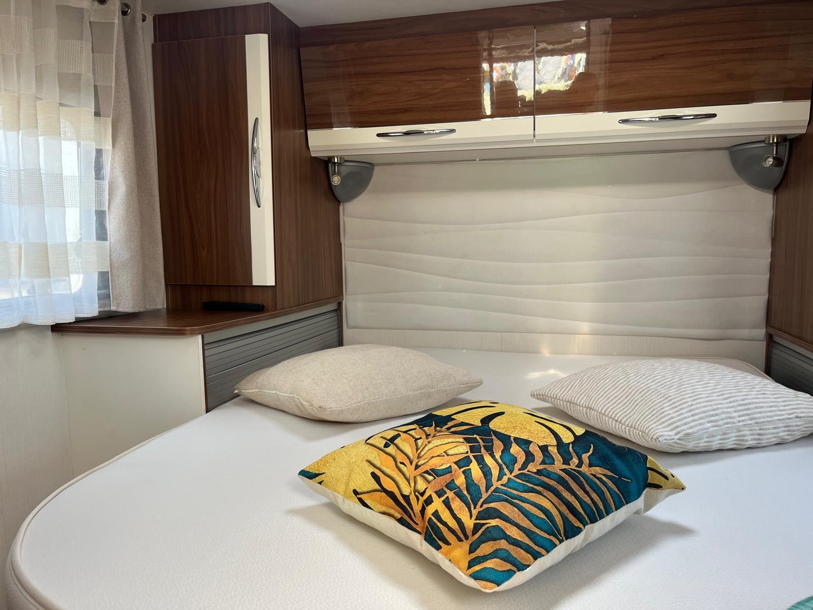 Anno: 2018Motore: Fiat Ducato 2.3 Omologazione: 3Lunghezza: 7,49Km: 86000Accessori: tendalino, portabici, doppio serbatoio, pannello solare, autoradio, inverter, antenna dt, parabola, cappa aspirante, zanzariera porta, oscurante plissettato, tavolo abbassabile, luce garage, presa 220 garage, microonde, antifurto