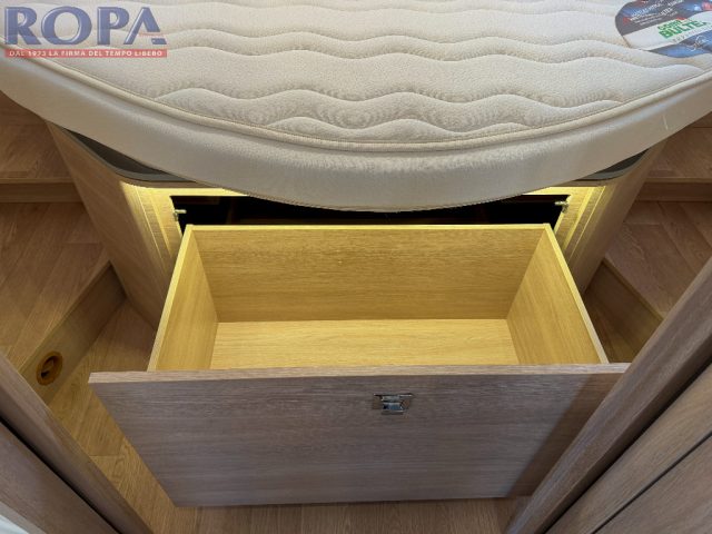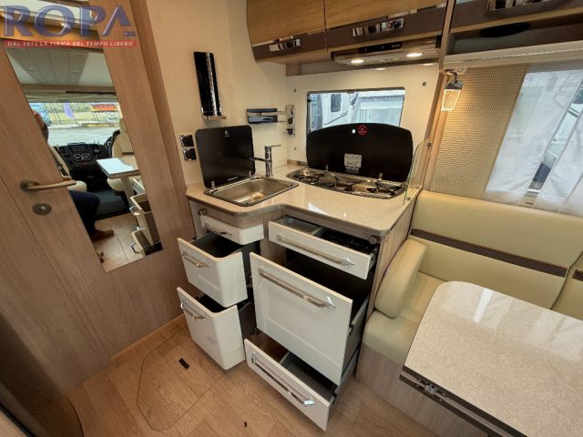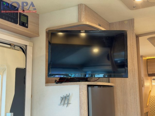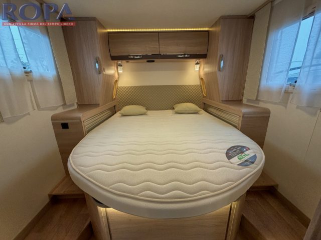 Tendalino, Antenna TV Satellitare Automatica, 2 Turbovent, Sospensioni ad Aria, Batteria Servizi al Litio da 200Ah, Pannello Solare, Allarme, Radio Doppio Din con Retrocamera, Inverer, Impianto CB, Letto Nautico Posteriore Regolabile in Altezza Elettricamente, Telaio Al-Ko con Doppio Pavimento Passante.