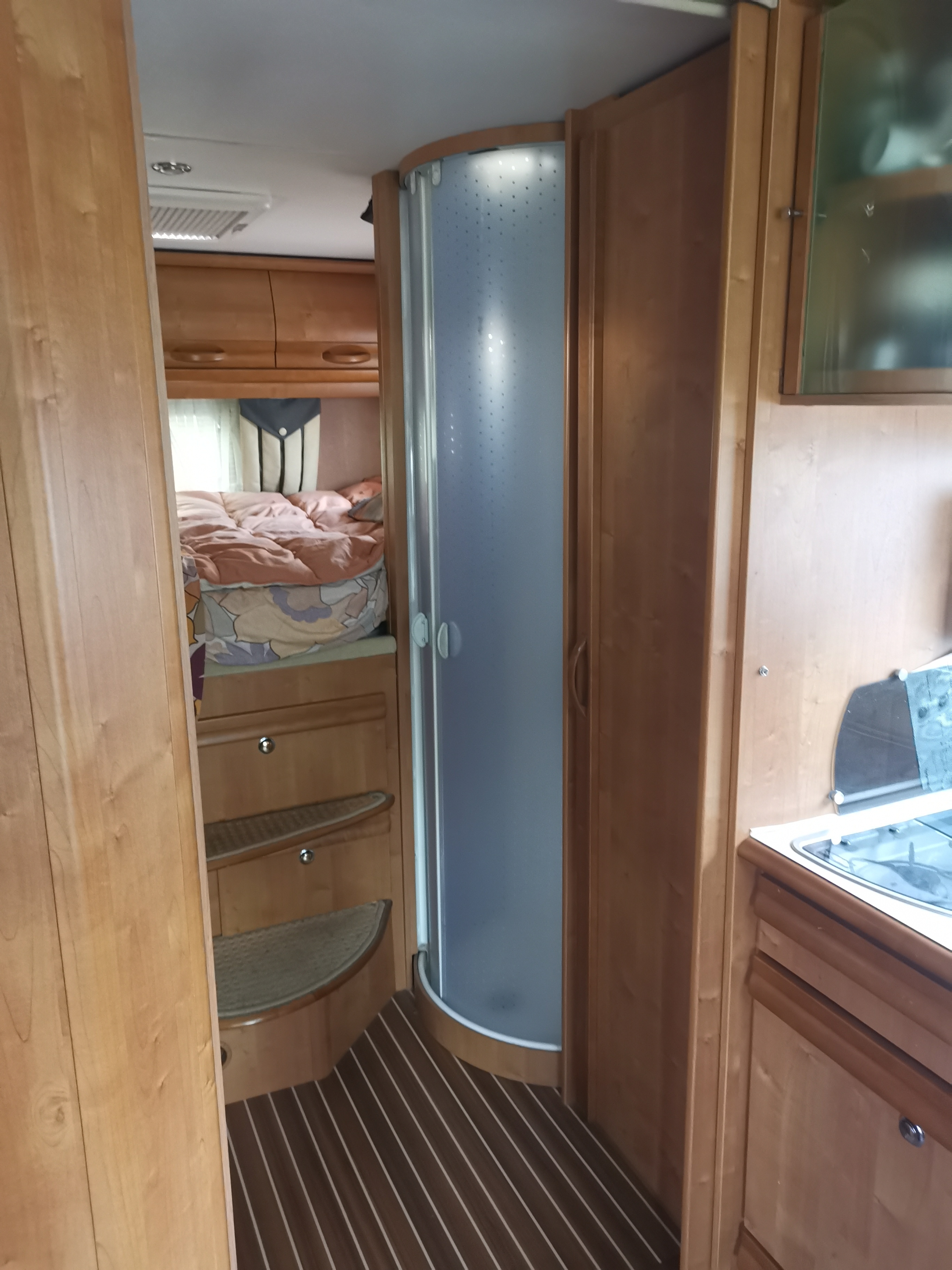 Telaio Alko - Doppio pavimento accesso interno e esterno- clima motore - Truma combi 6 EH gas/elettrico - Secumotion x riscaldamento in viaggio - Garage ampio riscaldato e illuminato -Attacco doccia esterno - Piano cottura 3 fuochi e 2 coperchi - Doppio lavello cucina -illuminazione guardaroba - Frigo con cella freezer 150lt - Porta divisoria scorrevole a scomparsa in legno zona giorno/notte - finestre e oblò con zanzariere e oscuranti - cruise control