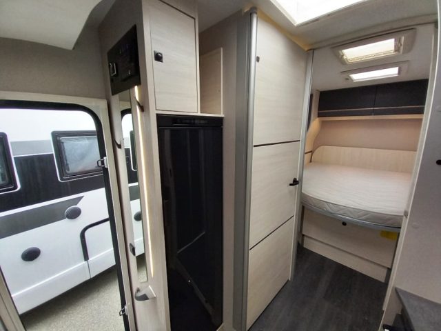 bellissimo semintegrale con letto nautico e letto basculante, cambio automatico, riscaldamento a gasolio, veranda, pannello fotovoltaico, antenna satellitare automatica, porta ingresso centralizzata con porte cabina, zanzariera porta ingresso, oscuranti plissettati cabina, prese esterne gas e acqua, ottime condizioni