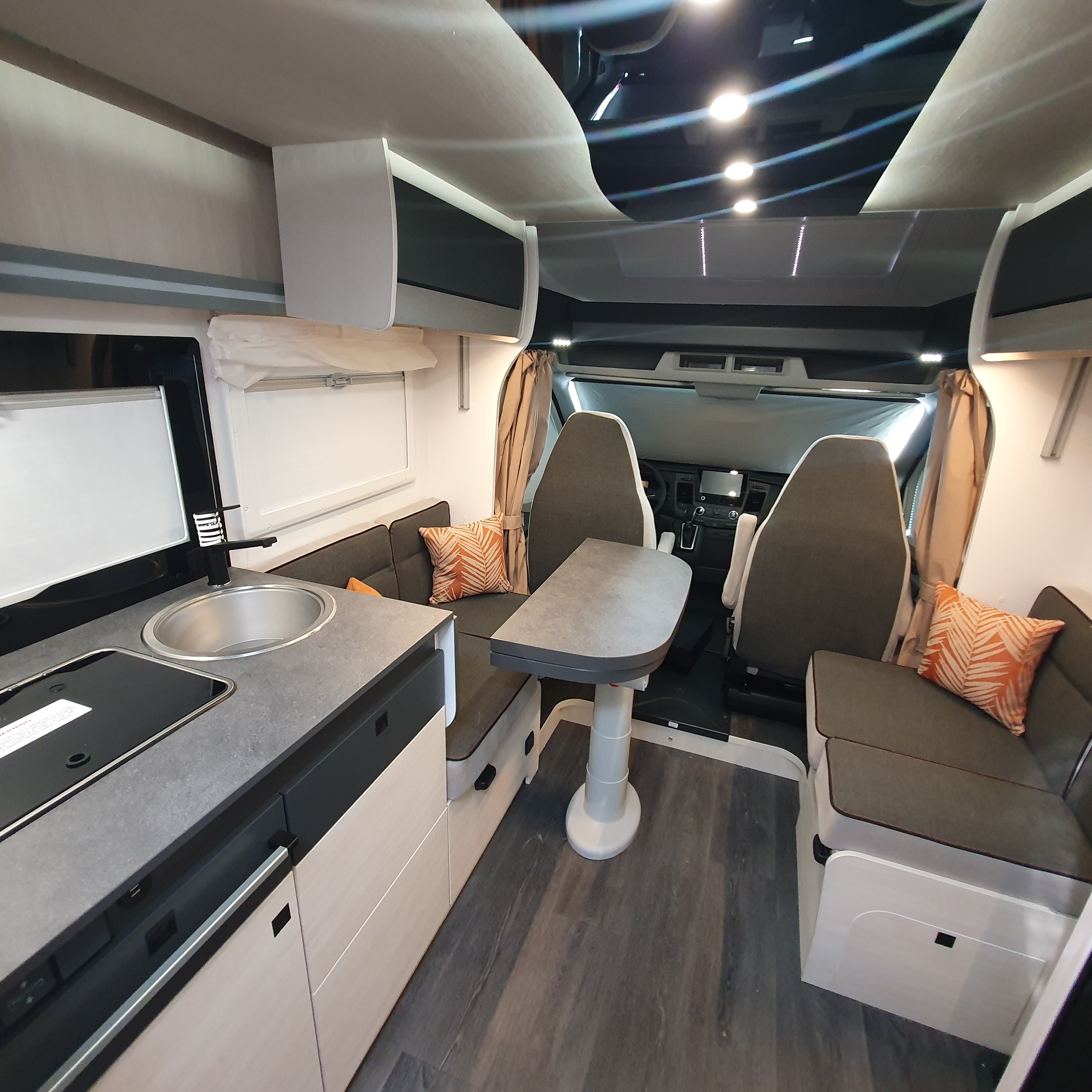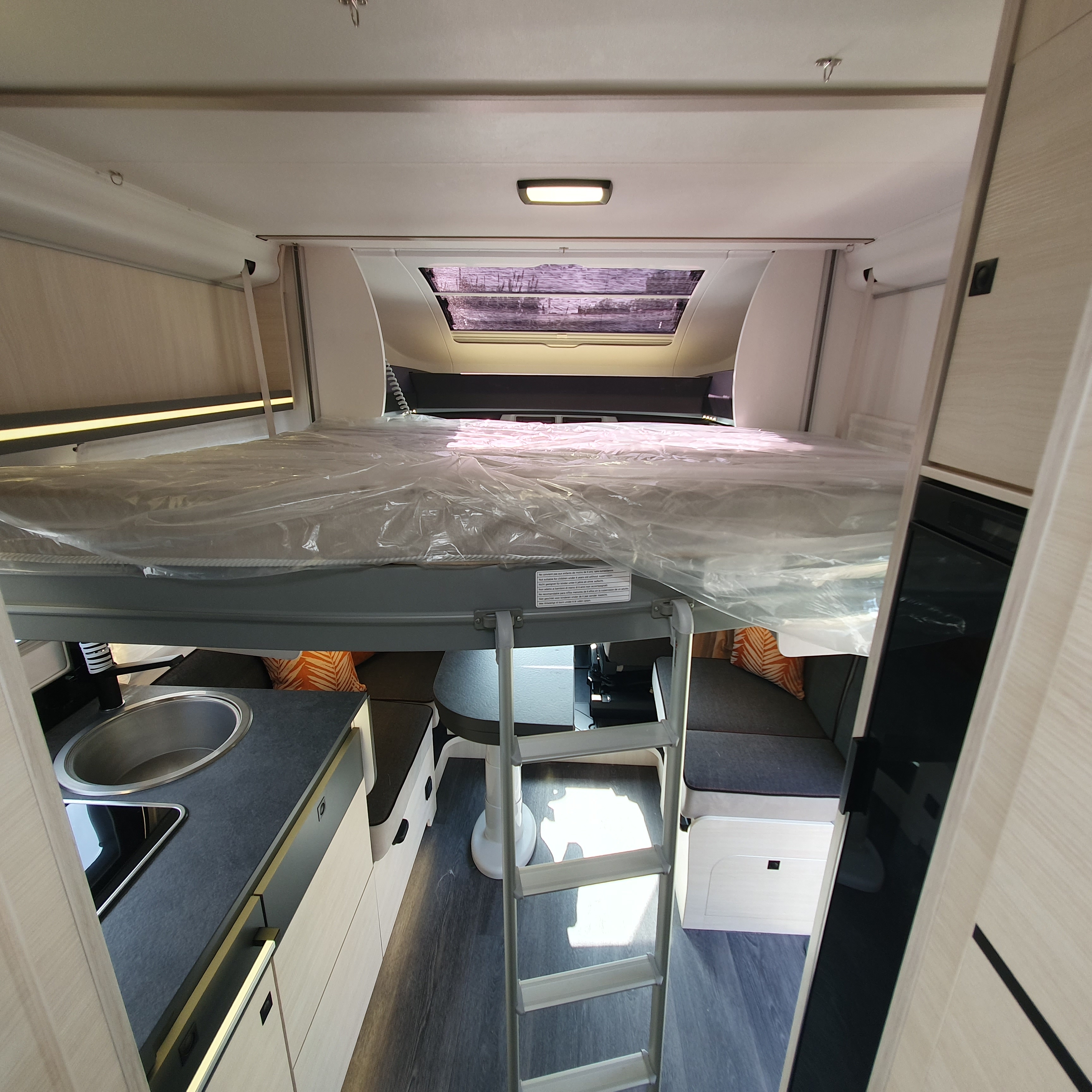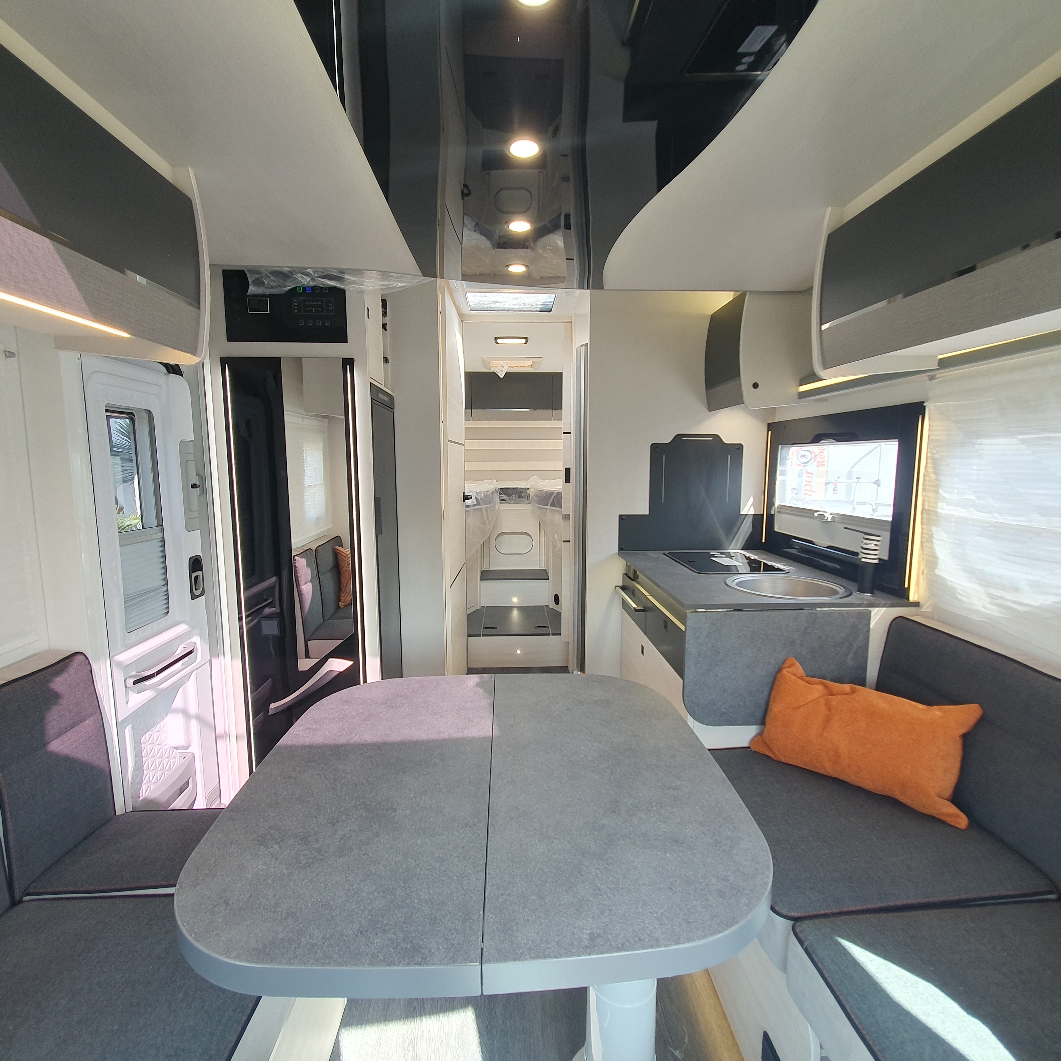 In dinette possiamo ricavare facilmente una ulteriore zona notte grazie al letto basculante elettrico.