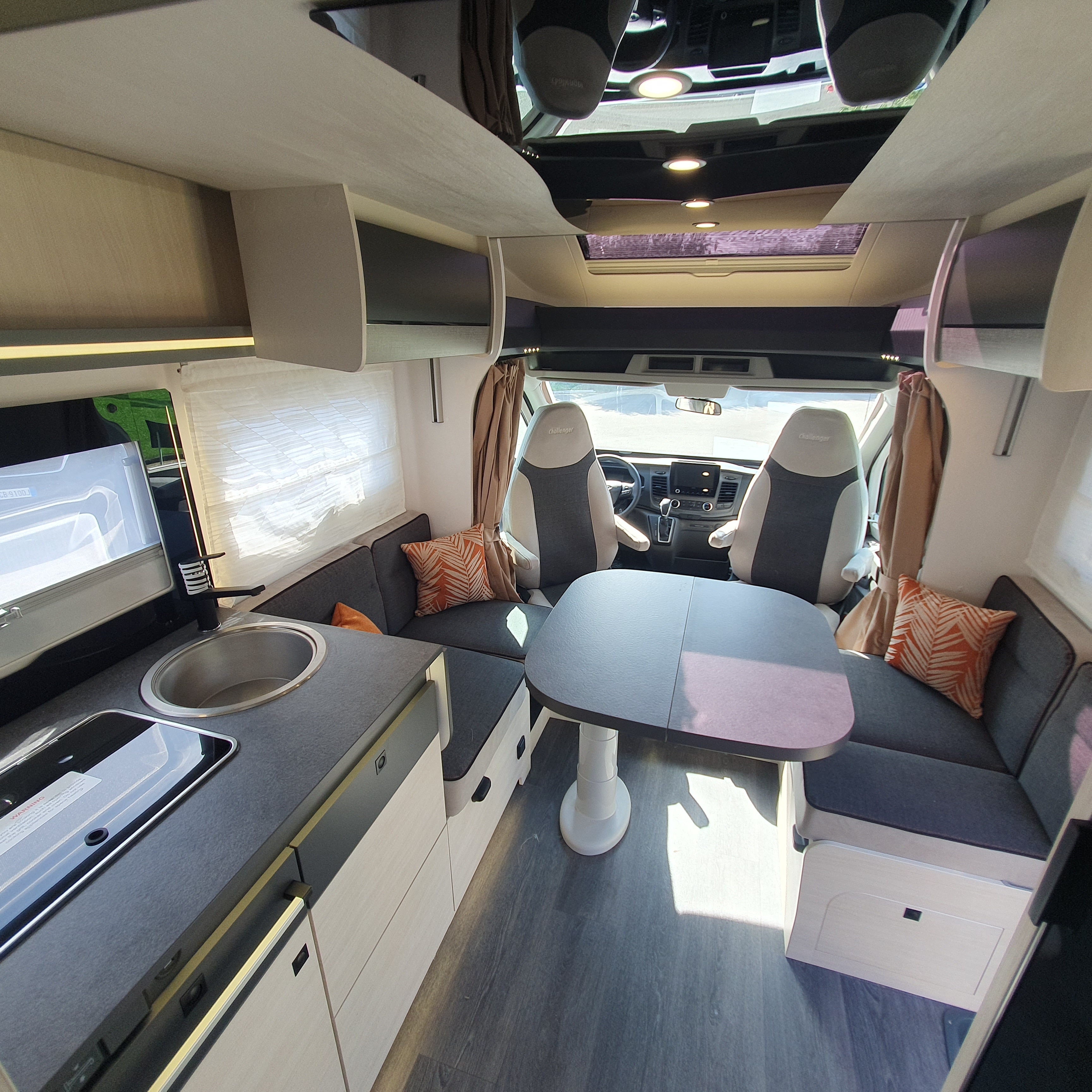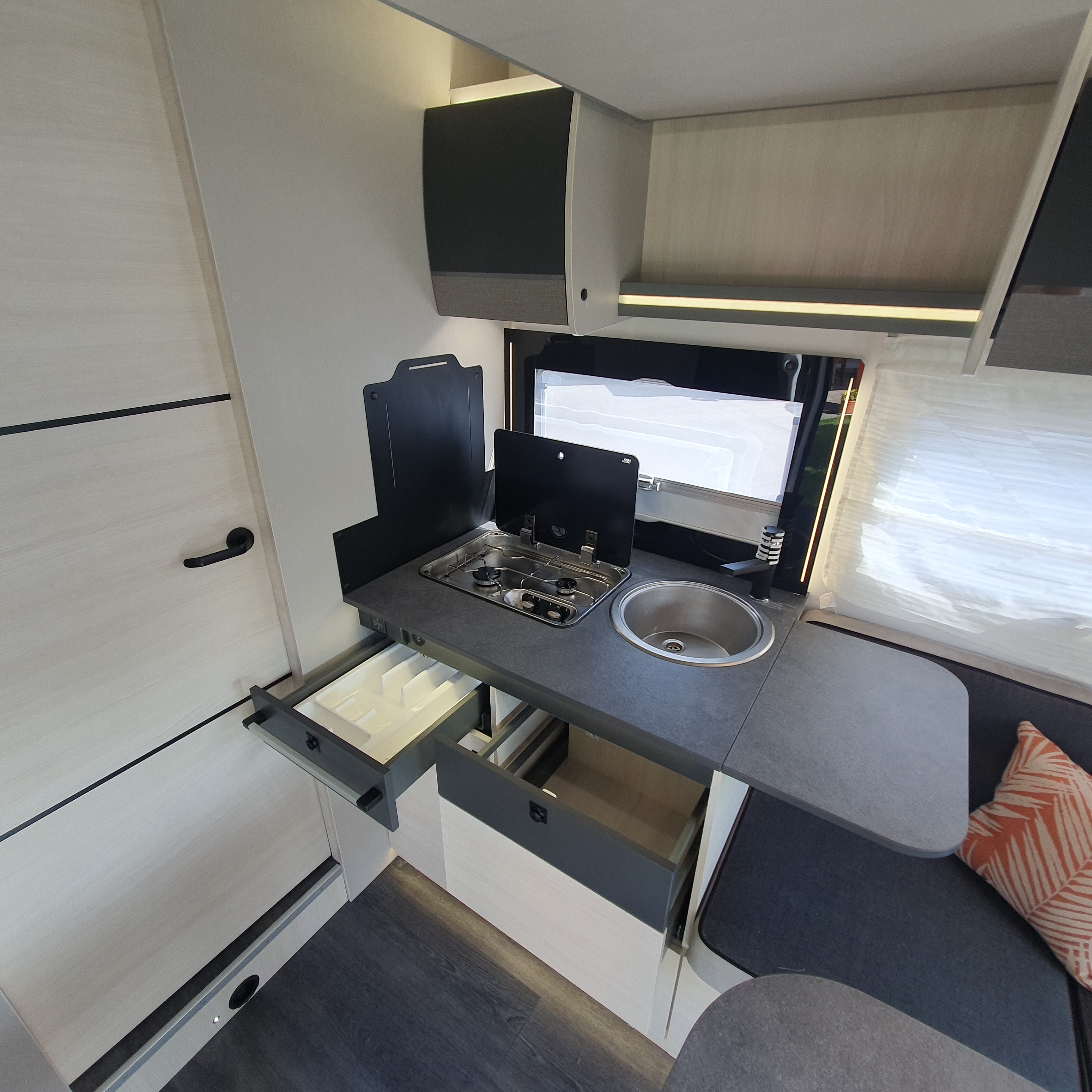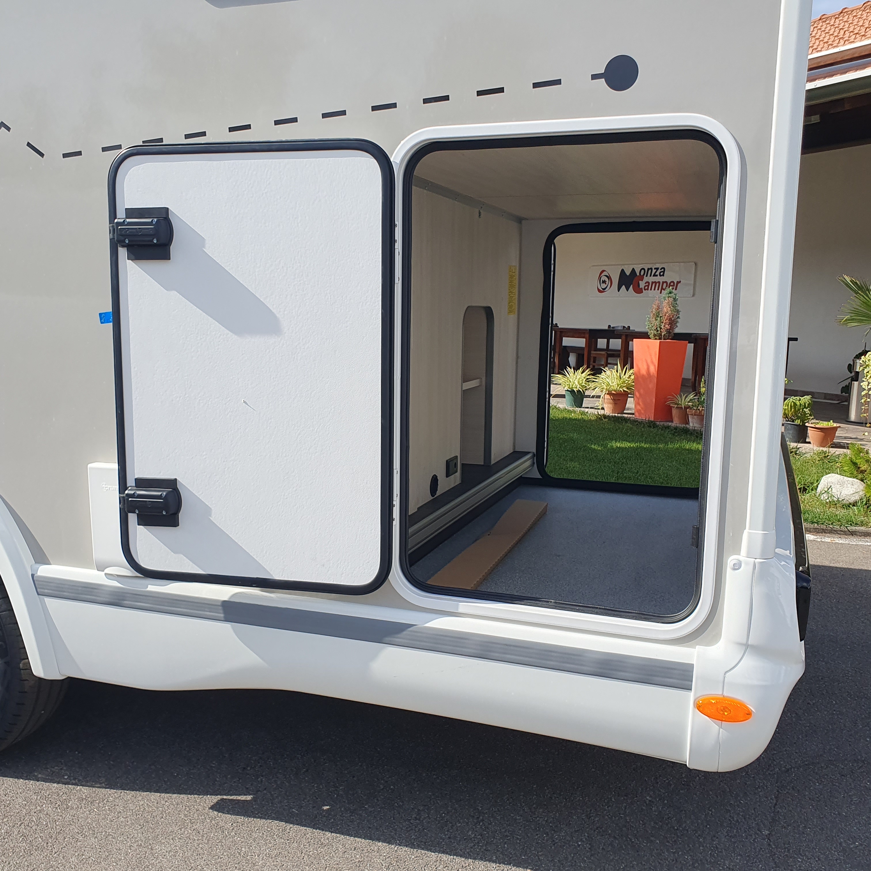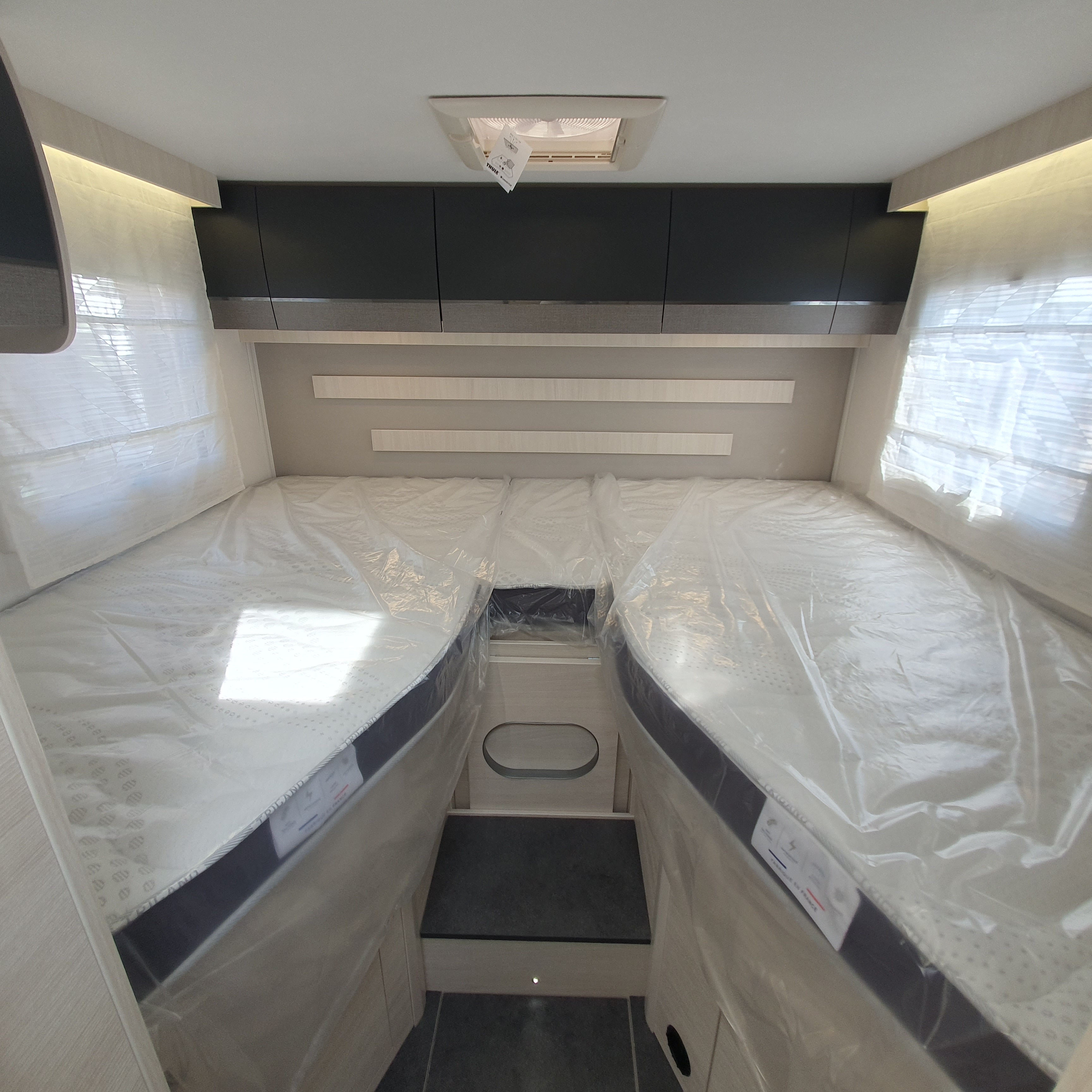 In dinette possiamo ricavare facilmente una ulteriore zona notte grazie al letto basculante elettrico.