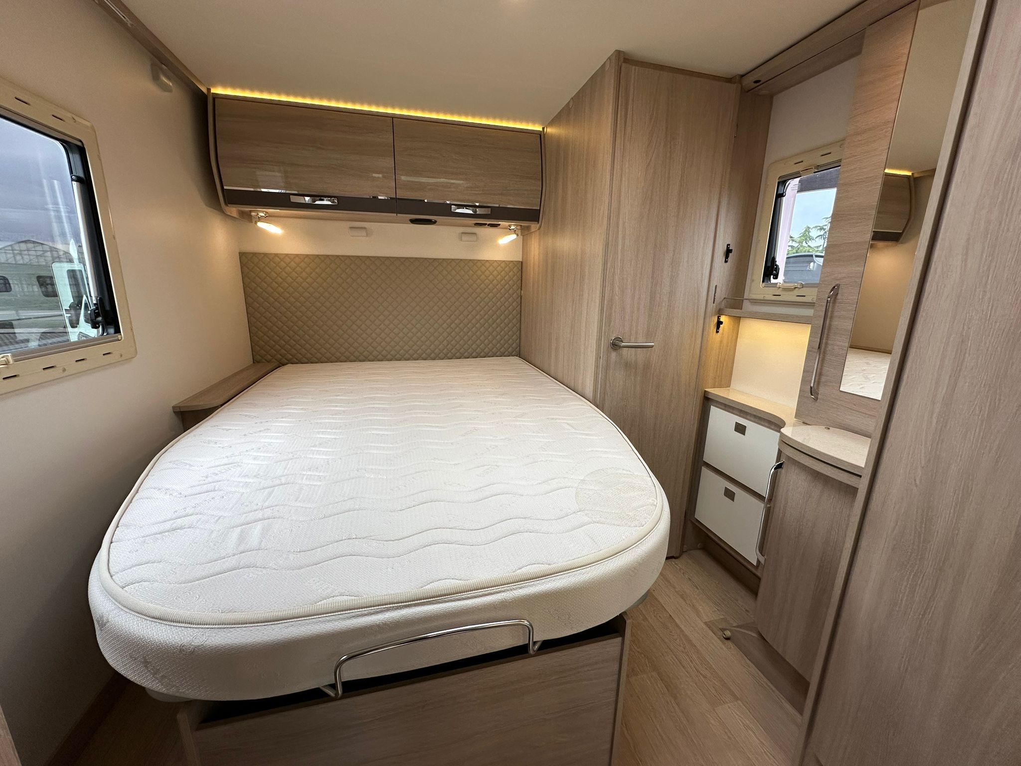 Basculante, clima cellula, clima motore, oblò panoramico, oscuranti Remis cabina, pannello solare, portabici, radio con retrocamera, tendalino, 36.300 km.