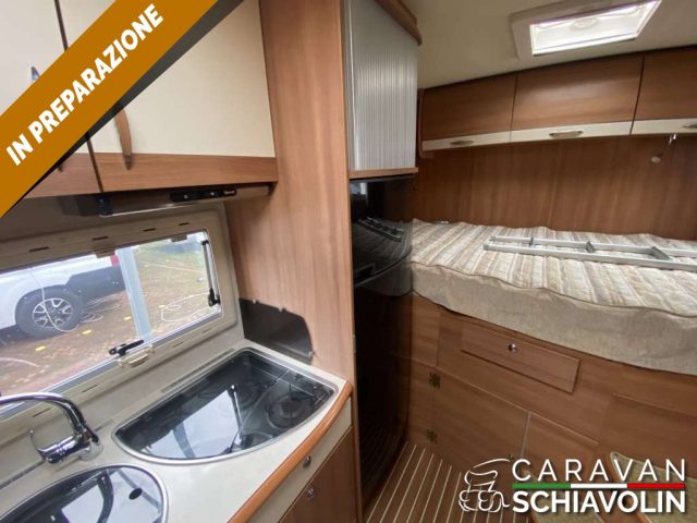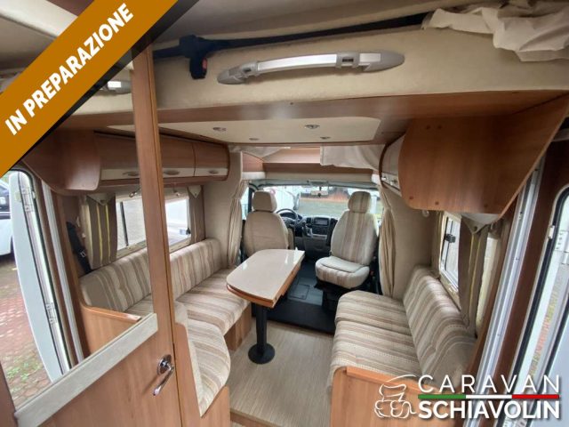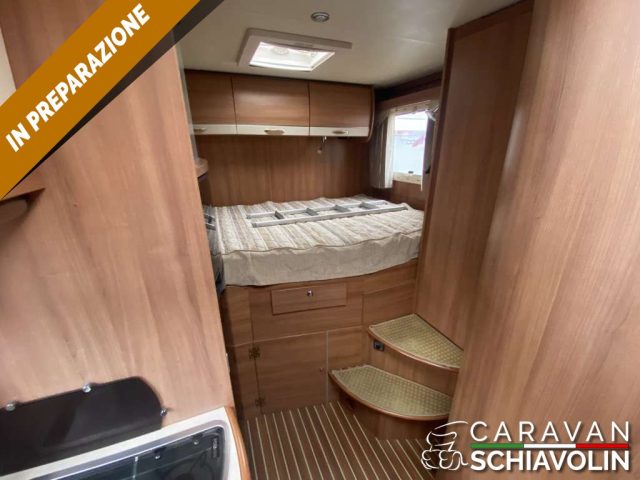 CAMPER SEMINTEGRALE DI ALTA GAMMA FRANCESE CON LETTO TRASVERSALE IN CODA E GARAGE, INTERAMENTE IN VETRORESINA, LETTO BASCULANTE ANTERIORE, POCHI KM EFFETTUATI E BEN ACCESSORIATO.