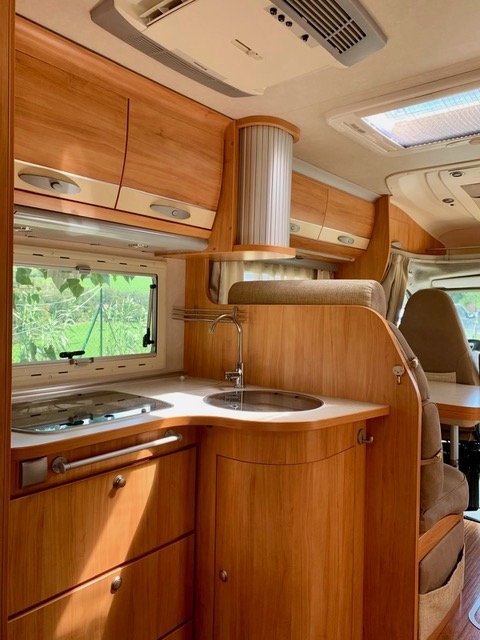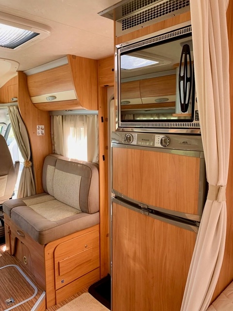 CARATTERISTICHE: Cucina completa di fornello 3 fuochi, cappa aspirante, forno a gas, frigo 140 lt e freezer trivalente (220V, 12V, GAS) automatico DOMETIC; Ampio bagno trasversale, in coda; Spaziosa dinette (trasformabile in letto) con tavolo allungabile e sedili girevoli; Tappezzeria in alcantara come nuova, facile da pulire; Zanzariere e oscuranti su tutte le finestre e sugli oblò; Cabina con oscuranti plissettati e protezioni termiche; Molti scomparti spaziosi per organizzare il carico in modo ordinato ed efficiente; Due gavoni, uno sotto al letto e uno verticale in coda, con scolatoio, illuminato e riscaldato per sci e materiali bagnati; Camper molto confortevole, perfetto per una coppia che vuole stare comoda, con bagno e doccia molto spaziosi, letto basso e grande abitabilità.