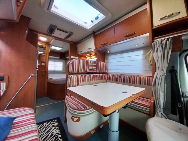 · bellissimo veicolo di fascia alta dotato di telaio alko e doppio pavimento con vano di carico passante, adatto a tutte le condizioni climatiche, pareti da 43mm in steerofoam, condizionatore cabina, abs, ASR, cerchi in lega, doppio treno di gomme, autoradio doppio din con retrocamera, porta ingresso Seitz a due punti di chiusura, frigo grande, cucina 4 fuochi con grill e forno, veranda, luce esterna, antenna satellitare, antenna terrestre, maxi oblò, doppio serbatoio acqua, wc con kit speedy, prese esterne gas + acqua + multifunzione, portabici, riscaldamento truma combi 6000 + webasto a gasolio. Ottime condizioni.