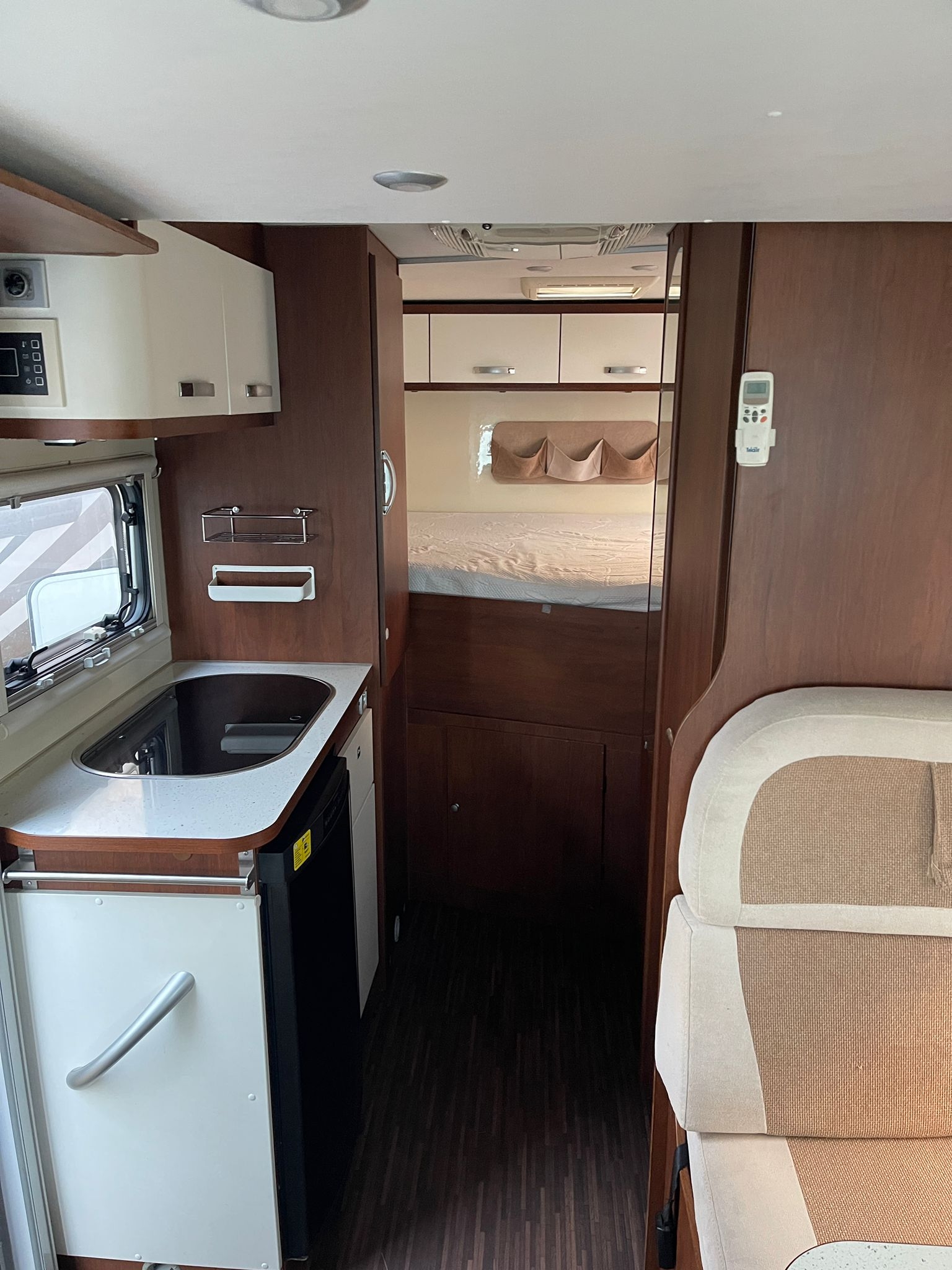 Veranda, porta moto 120kg, Pannello solare, telecamera posteriore, clima in cabina, clima cellula, antifurto, antenna TV, sospensioni aria, scambiatore automatico bombole, autoradio, inverter