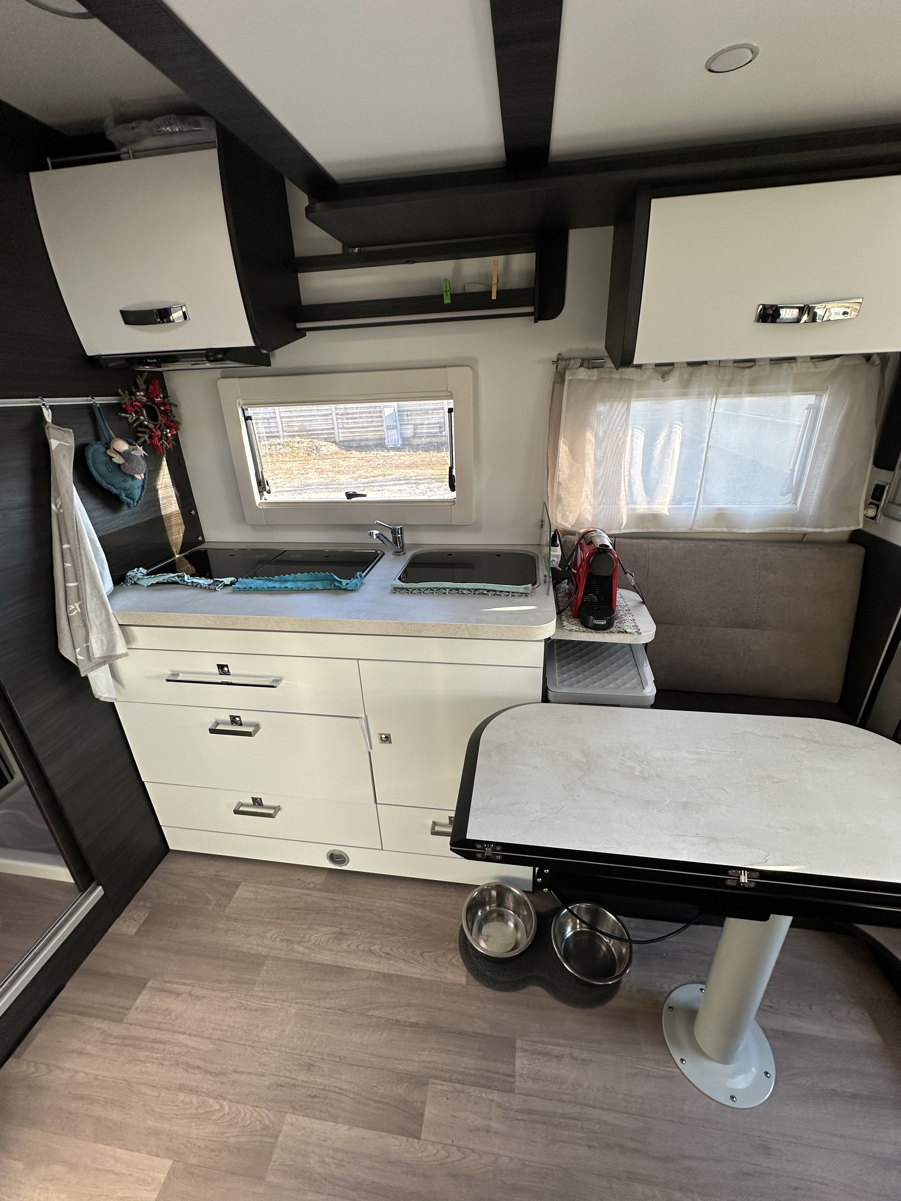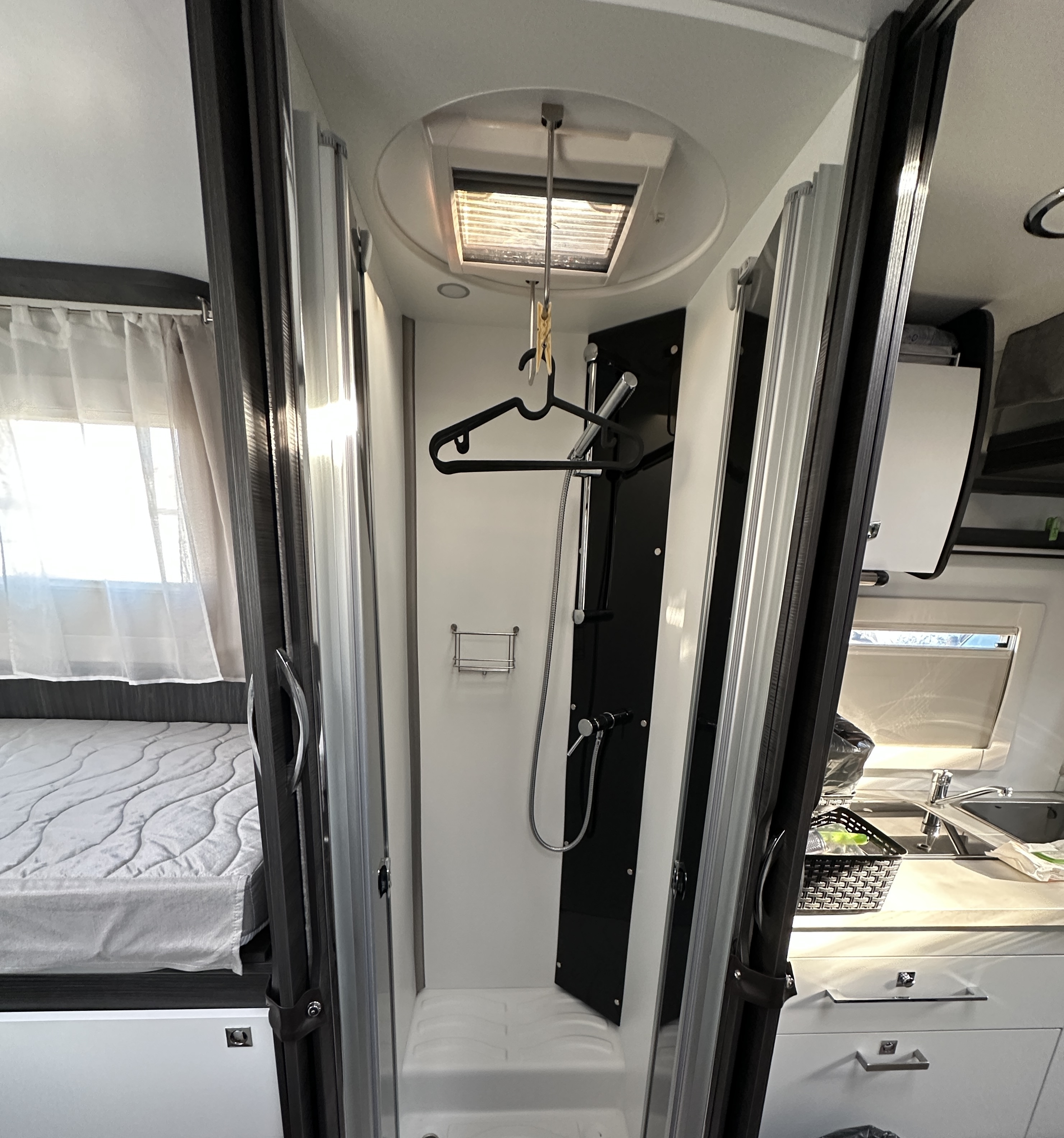 Telecamera posteriore-Alzacristalli elettrici-Chiusura cabina/cellula centralizzata con comando a distanza-ABS + ESP-Traction Plus-Regolatore di velocità-Aria condizionata manuale in cabina-Airbag conducente/passeggero-Comandi dello stereo al volante-Sedili conducente e passeggero girevoli-Finestre con doppi vetri Dometic DLux-Presa 230V / 12V in garage-Sensori di parcheggio- Illuminazione ambientale con luce LED-Tavolo con supporto telescopico centrale multiposizione-doppia porta separazione ambienti camera / zona giorno-Letto basculante elettrico matrimoniale- Letti gemelli trasformabili in letto matrimoniale-Supporto porta TV-Lavandino e piano cottura a 3 fuochi incassati-Cappa aspirante-frigorifero 150 l trivalente-Spazio per bombole gas: 2-WC e doccia separati-Truma Combi per riscaldamento e boiler a gas. Capacità Acqua chiara (l) : 1-105- Acque di recupero (l): 105.