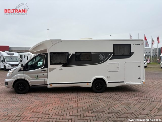 Camper semintegrale Benimar Tessoro 468 Northautokapp 2022, un vero gioiello per famiglie e appassionati di viaggio. Dotato di cambio automatico Ford 2.0 da 170 CV La planimetria spaziosa include letti gemelli posteriori (larghezza 140 cm ciascuno), letto basculante elettrico sopra la dinette (fino a 4 posti letto totali) e una dinette face-to-face per 5 comodi posti viaggio. Interni luxury con cucina completa, bagno con doccia separata e garage capiente per scooter o attrezzature. Lunghezza 7,43 m, perfetto per coppia o famiglia.