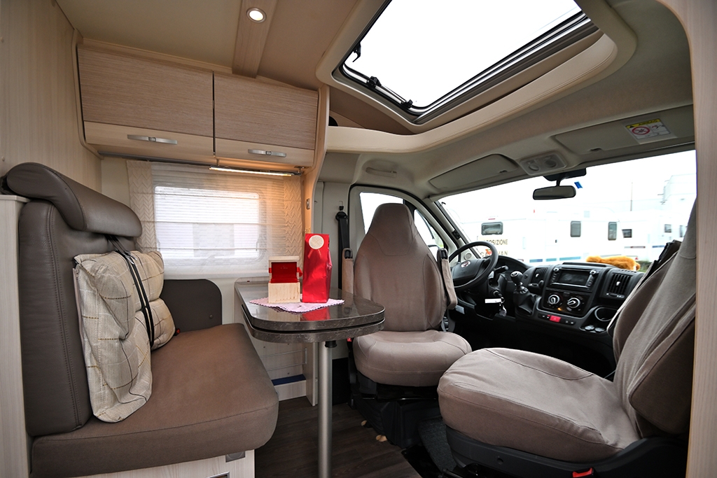 ESP, Traction+, Hill Holder, Hill Descent Control, Climatizzatore in cabina, Cruise Control, Airbag passeggero, Specchietti retrovisori regolabili elettricamente e riscaldabili, Tendalino, Antenna satellitare, Autoradio 2DIN, Telecamera retromarcia, Inverter 1.000 W, Antifurto, Oscuranti plissettati in cabina, Zanzariera e gradino estraibile per portellone di coda, Porta cellula con finestra, zanzariera e chiusura centralizzata, Luce esterna