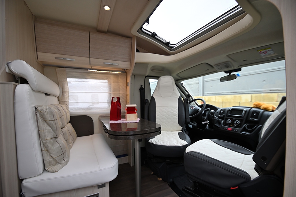 ESP, Traction+, Hill Holder, Hill Descent Control, Climatizzatore in cabina, Cruise Control, Airbag passeggero, Specchietti retrovisori regolabili elettricamente e riscaldabili, Tendalino, Antenna satellitare, Autoradio 2DIN, Telecamera retromarcia, Oscuranti plissettati in cabina, Zanzariera e gradino estraibile per portellone di coda, Porta cellula con finestra, zanzariera e chiusura centralizzata, Sky-Roof anteriore, Luce esterna