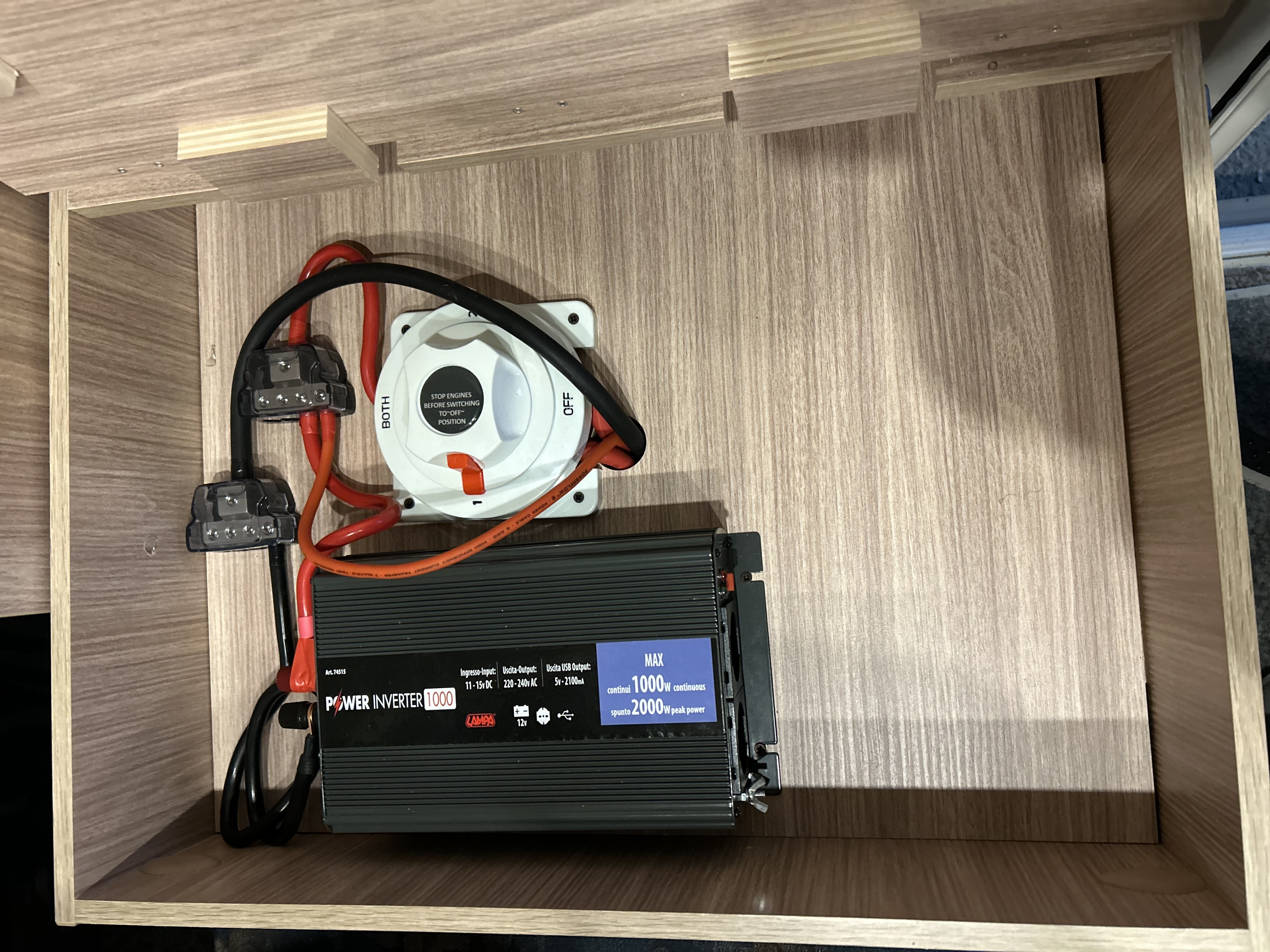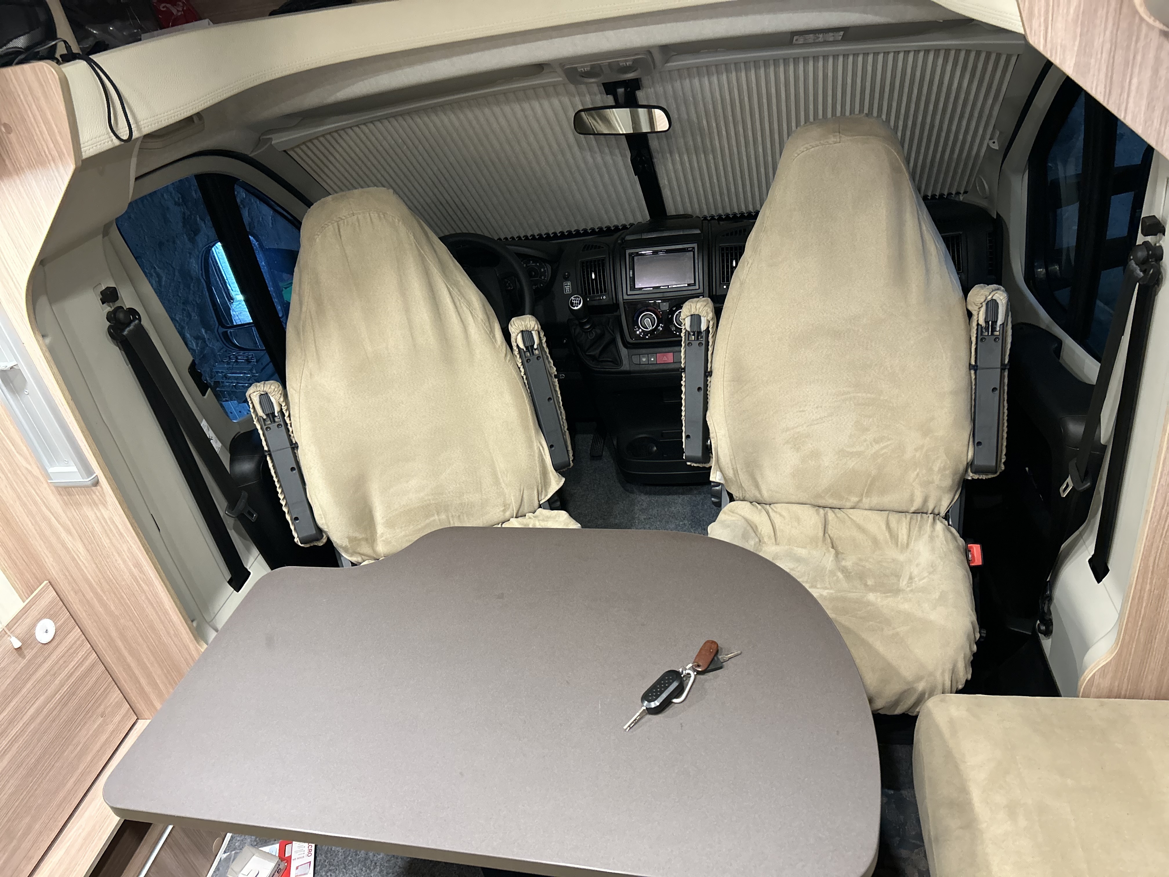 Gancio Traino, Sospensioni Aria, Moquettes su misura, Oscurante termico esterno, impianto audio esteso alla cellula, 2 batterie con swicth, inverter.