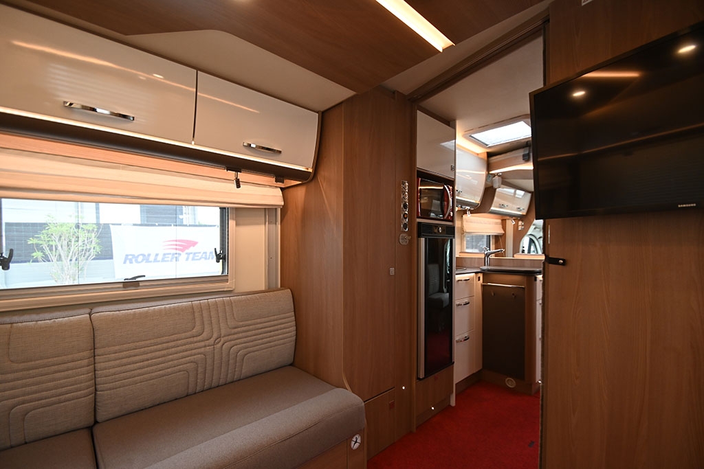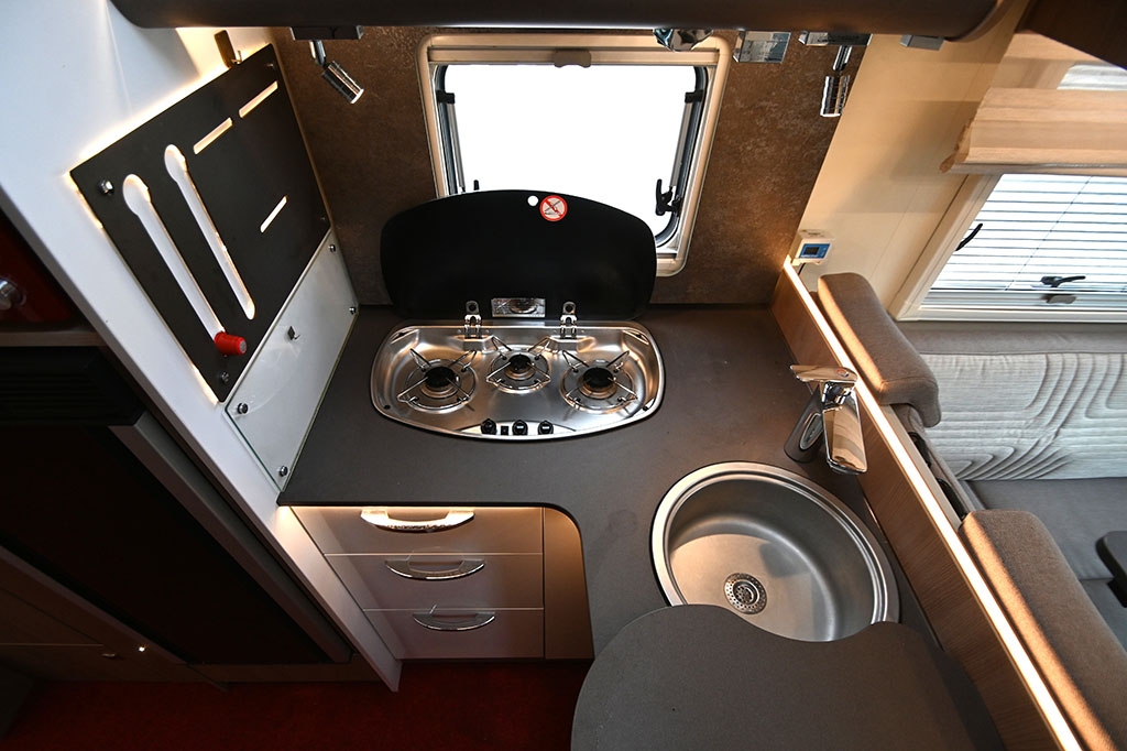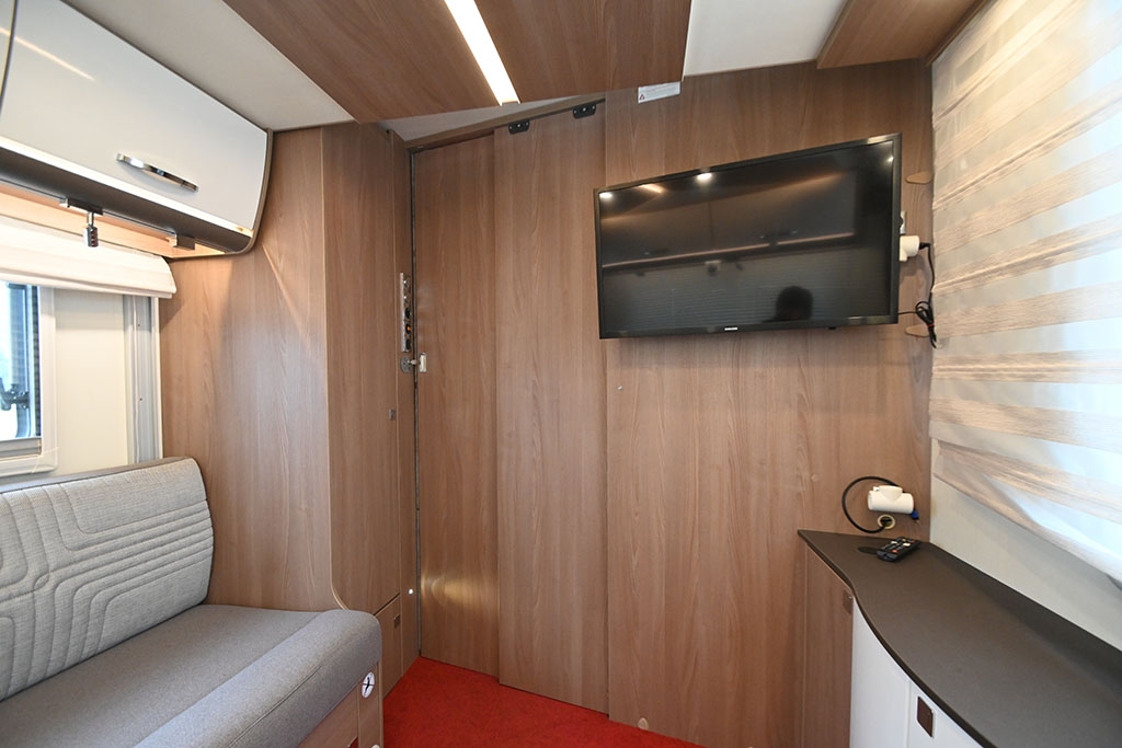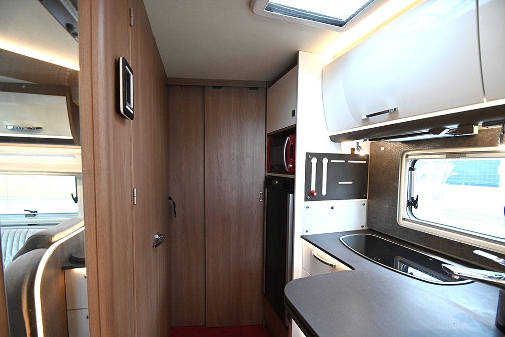 Ruota di scorta, Forno a microonde, Sistema di riscaldamento Truma Combi 6E, Sistema di riscaldamento secondario Cinebasto da 5 kW a gasolio, Porta cellula XL con finestra, zanzariera e chiusura centralizzata