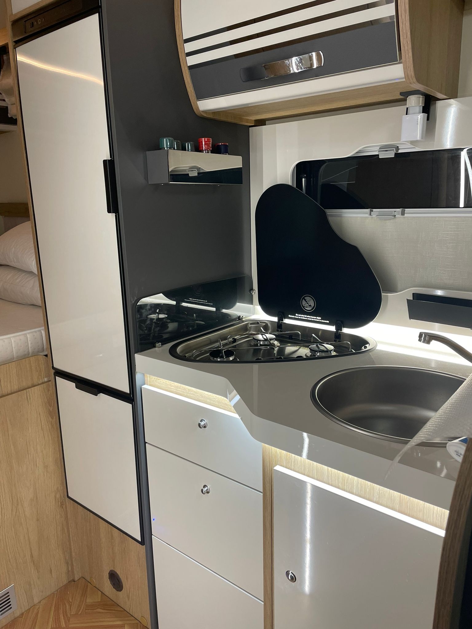 Pannello solare retro camera con monitor oscuranti plisse cabina porta ingresso XL con chiusura centralizzata clima cabina antenna radio DAB cambio e volante rivestito in pelle specchietti retrovisori con sbrinatori sedili cabina girevoli doghe in legno letto presa 220v garage usb zona notte e giorno