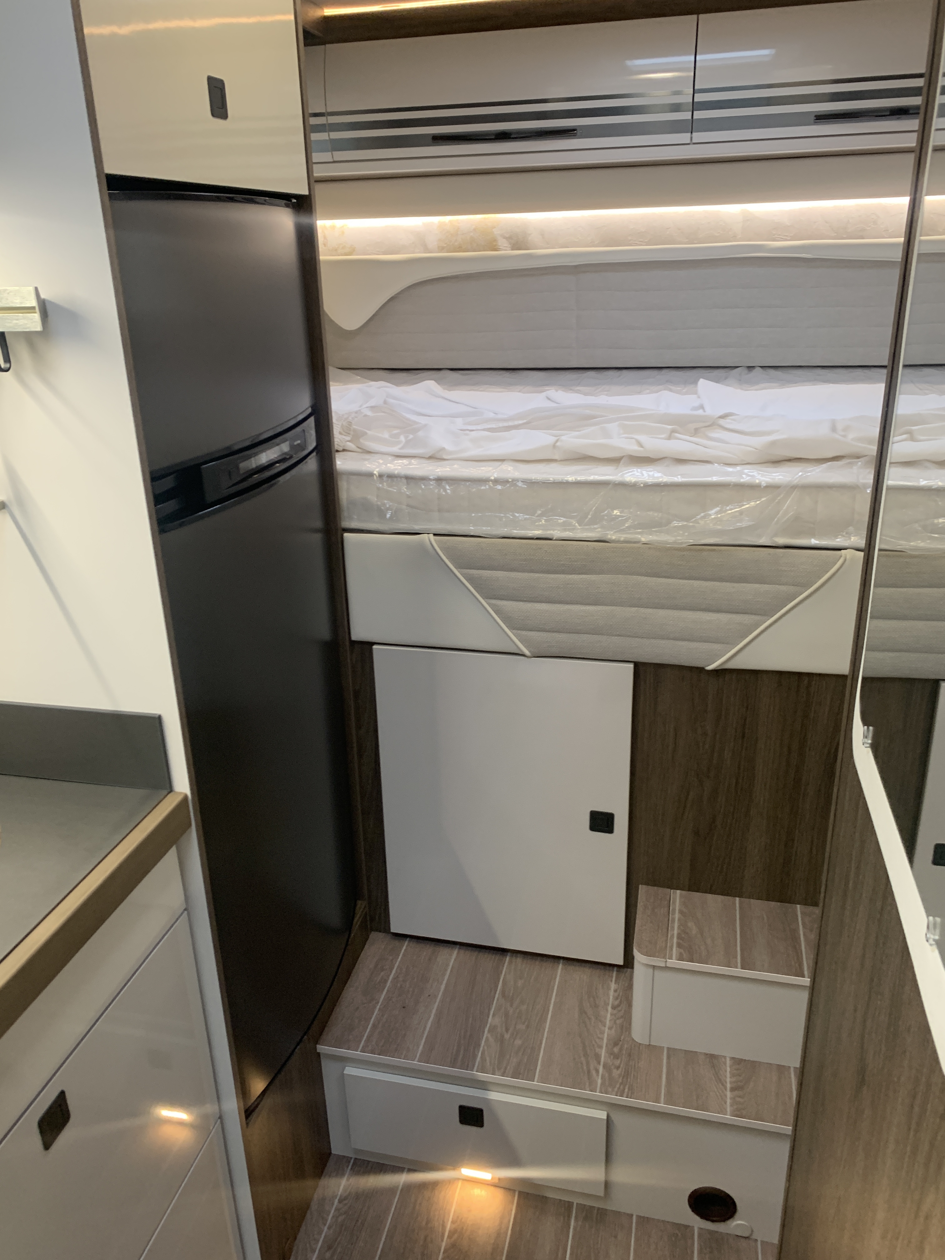 - Letto matrimoniale trasversale posteriore + letto basculante elettrico