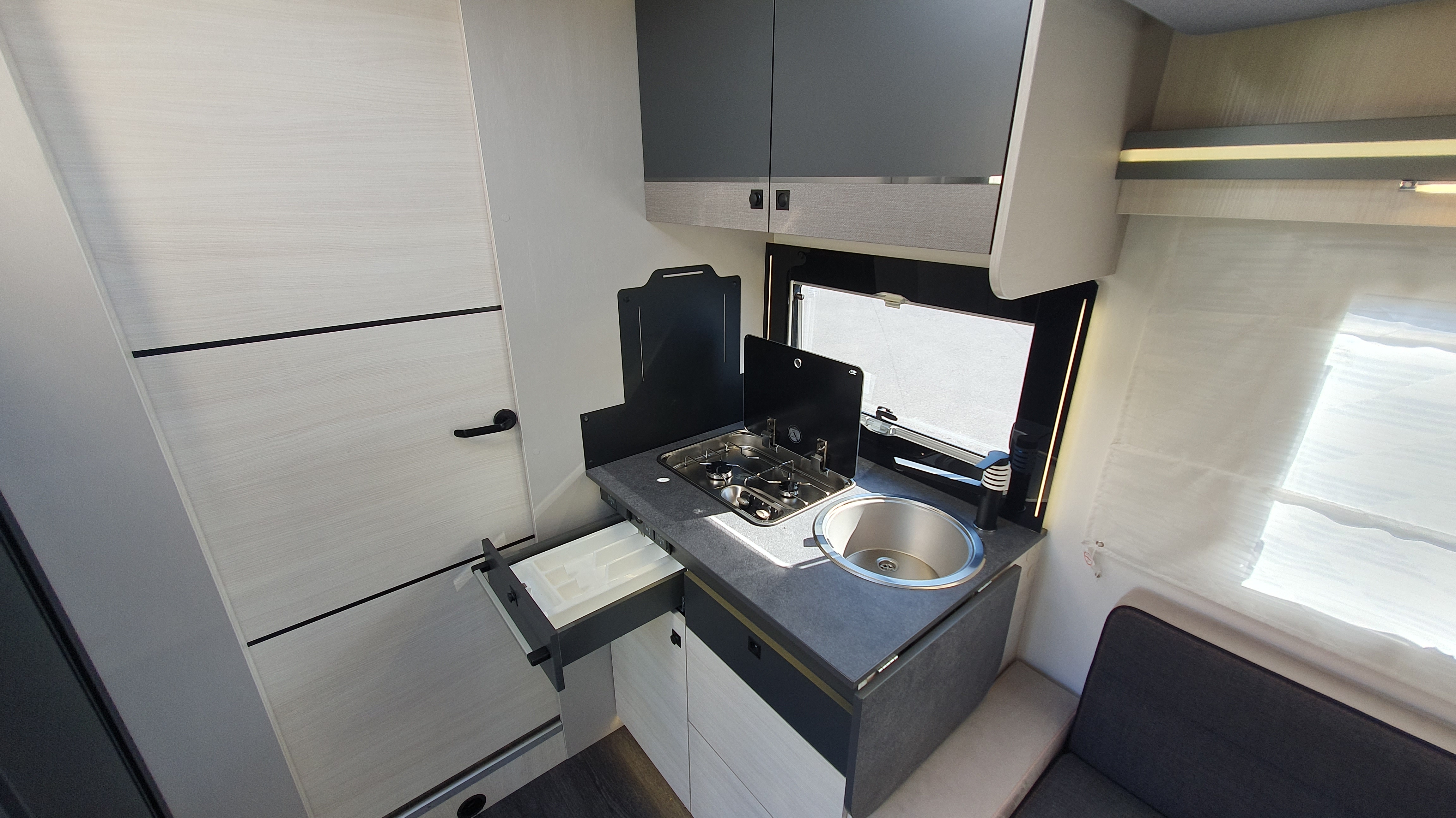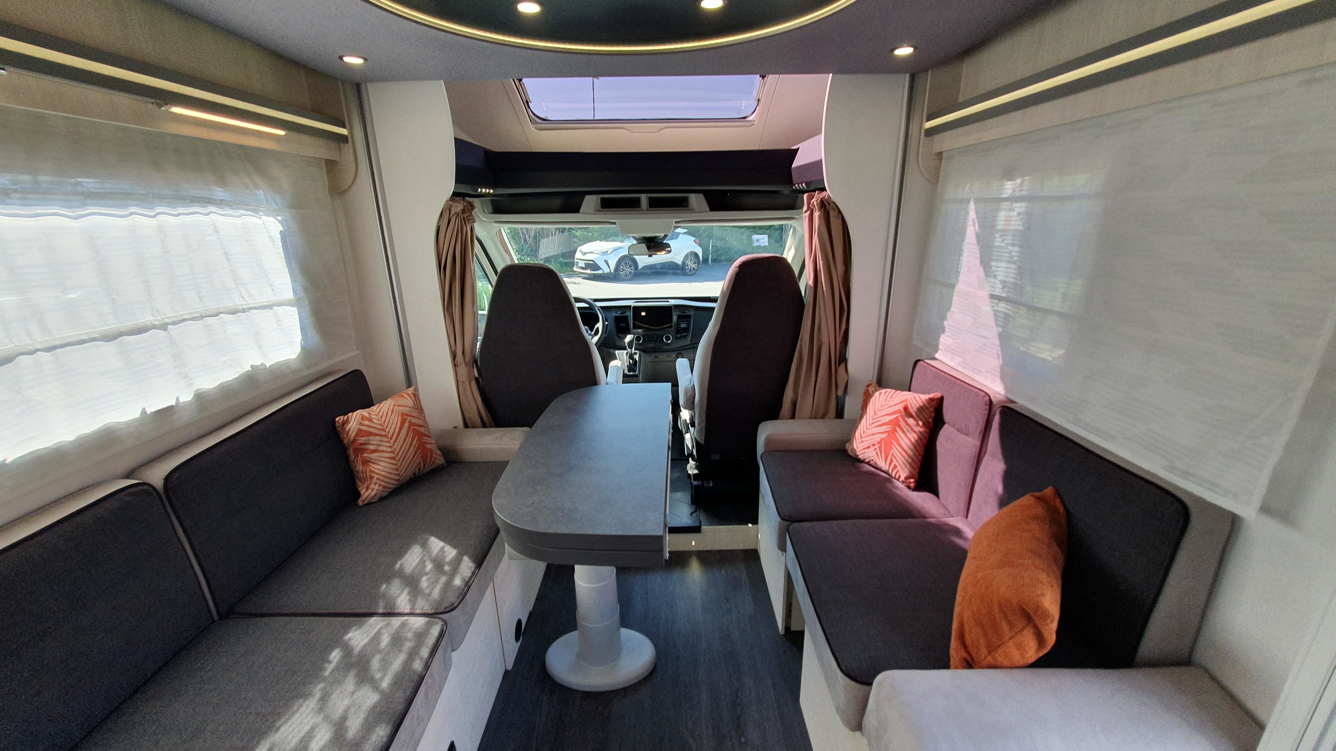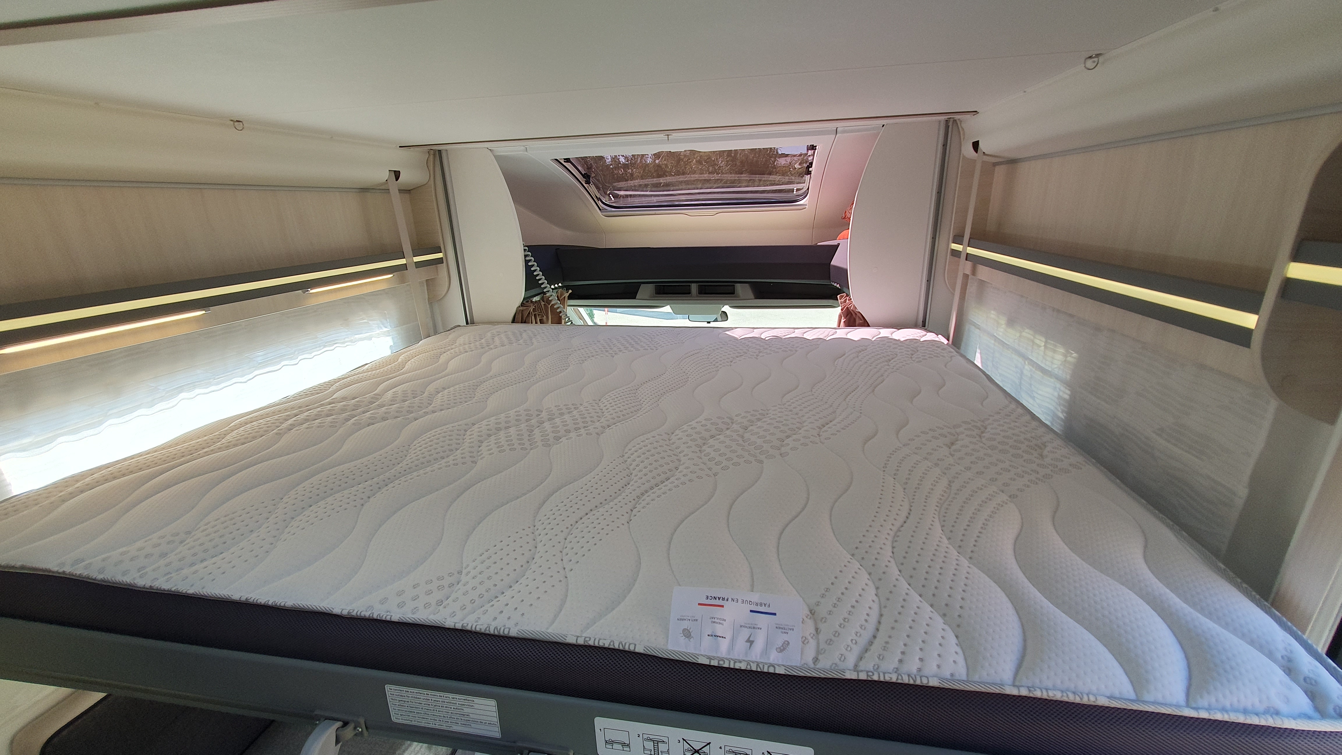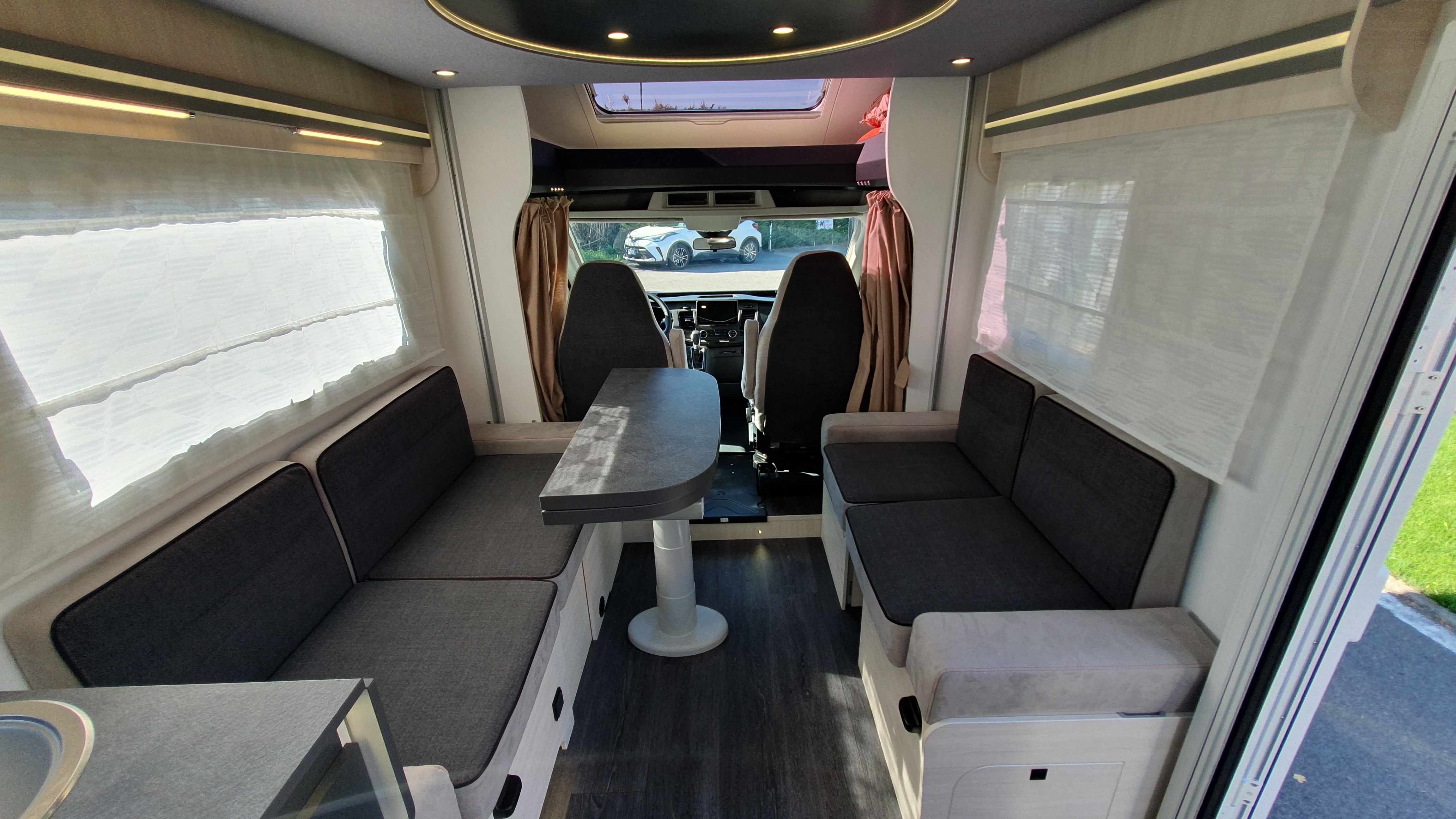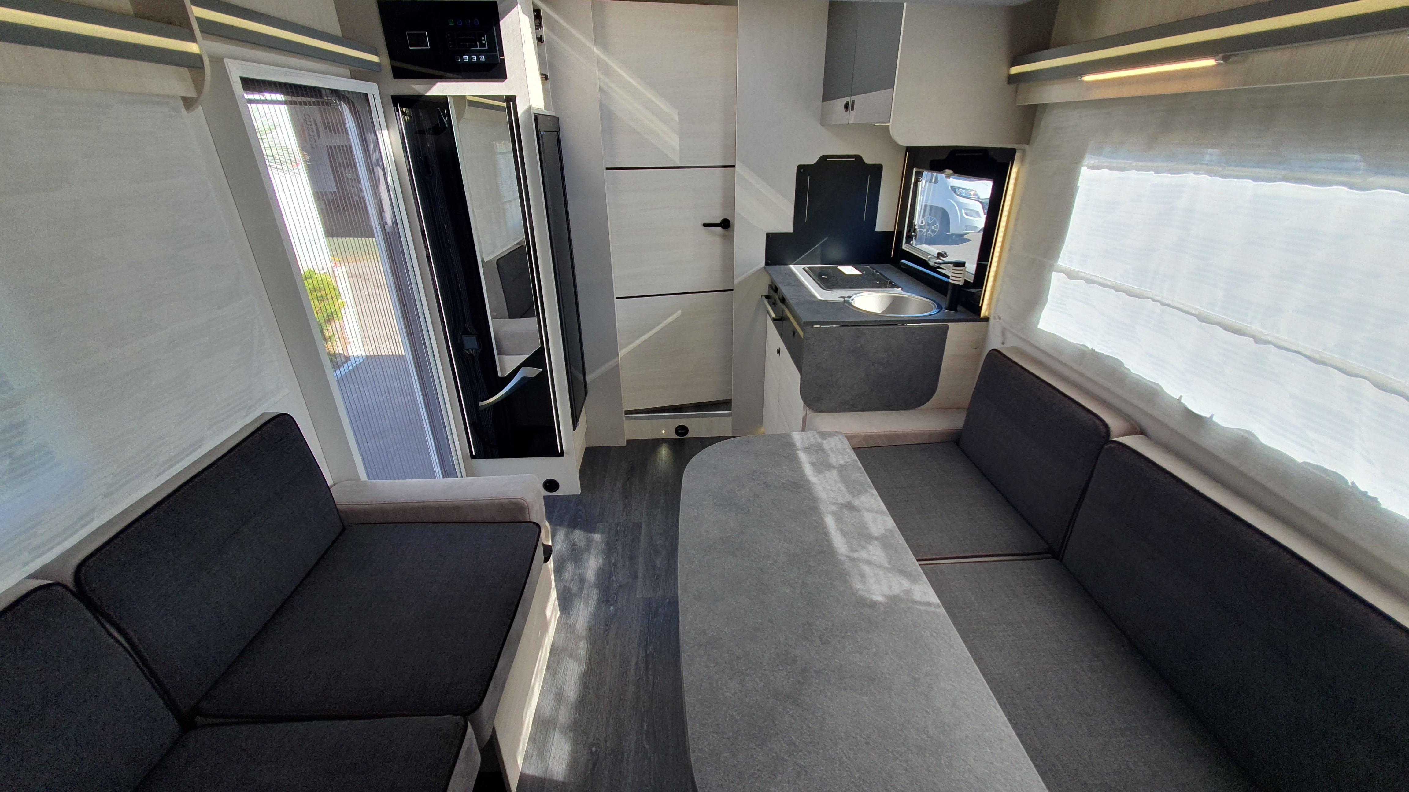 La disposizione interna è pensata per offrire spazio e funzionalità: il letto basculante sopra la dinette face to face e i letti a castello posteriori garantiscono comodi posti per dormire, mentre la dinette face to face crea una zona giorno ampia e accogliente.